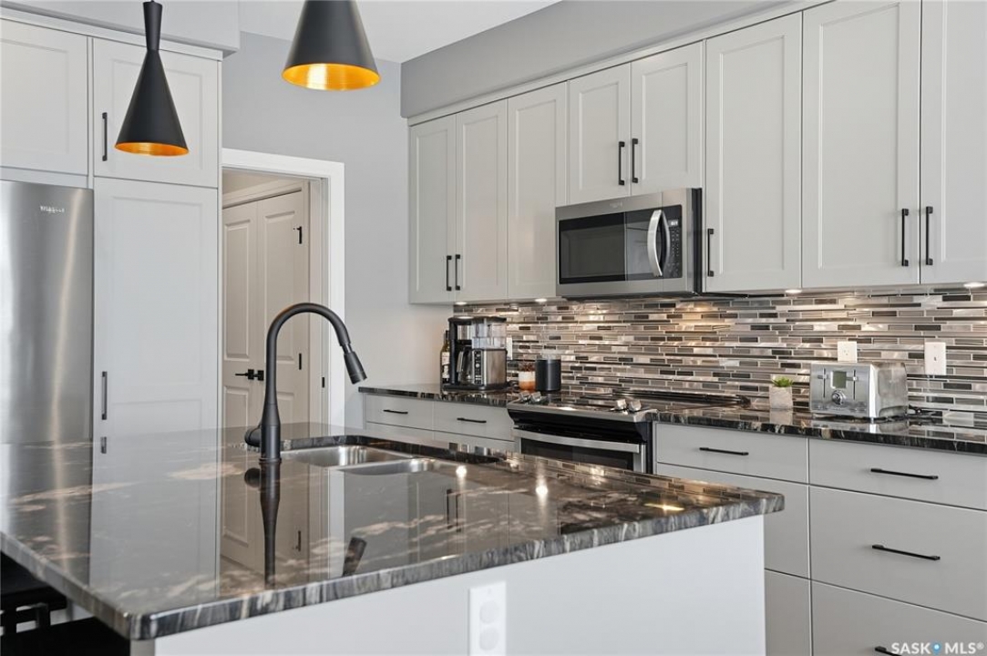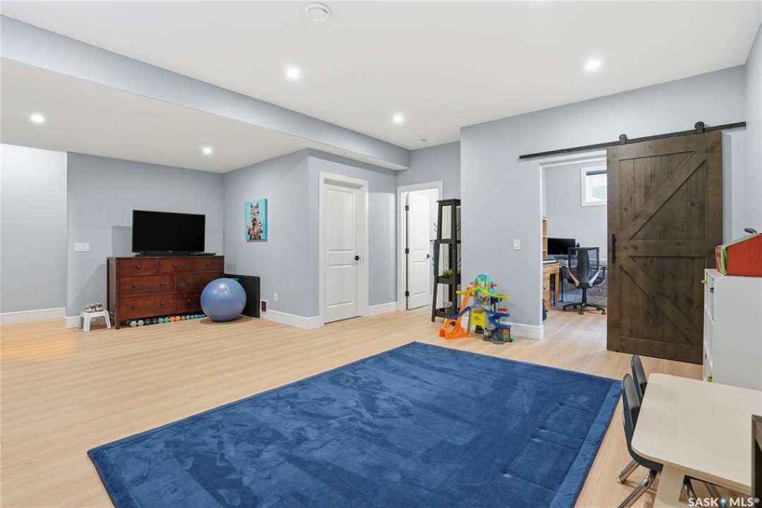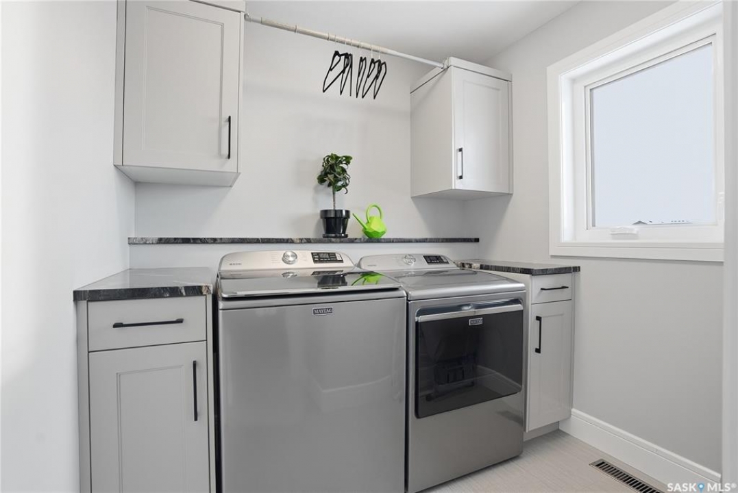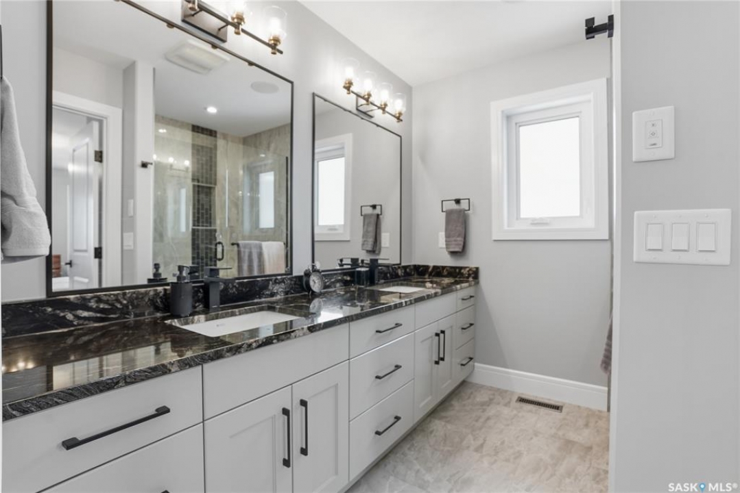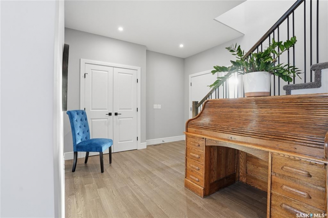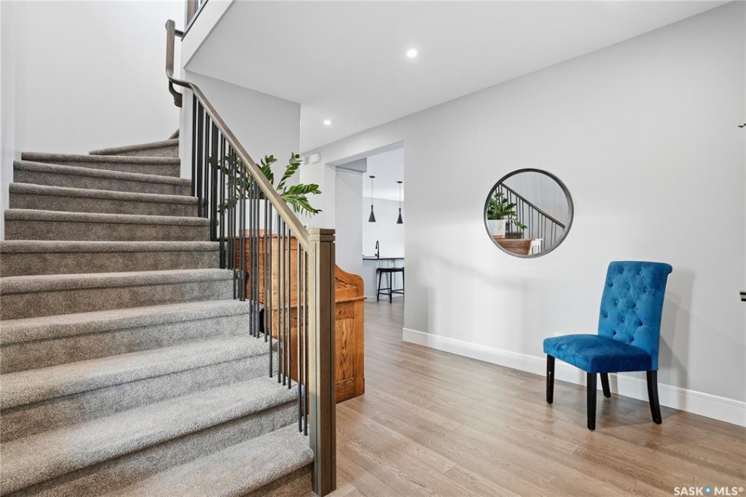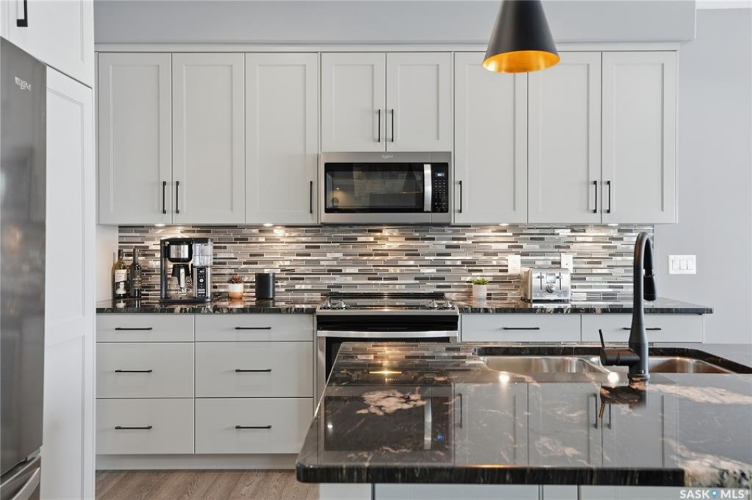 Welcome to a truly exceptional property in one of Saskatoon's most sought-after communities. This quality built 4-bedroom, 4-bath home in Evergreen combines luxury, thoughtful design, and breathtaking natural views—backing onto the Northeast Swale, one of the city's most treasured protected areas. Inside, you'll find high-end finishes throughout, enhanced by ample intentional storage. Nearly every space features custom built-ins—from the living room cabinetry to the upstairs laundry and mudroom—creating a cohesive, clutter-free environment. The chef's kitchen offers generous cabinet space, quality appliances, and elegant finishes, opening into a bright living area and expansive views. The primary suite is a retreat of its own with a walk-in closet and a tranquil view overlooking the Northeast Swale— no rear neighbours, just open sky and nature. The ensuite continues the spa-like feel with premium finishes and smart layout. Each additional bedroom is well-sized, and the upstairs laundry is outfitted with cabinetry and workspace, making daily living easy. The exterior is just as impressive. The low-maintenance front yard blends modern curb appeal with convenience. The private backyard features underground sprinklers on timers, along with a thoughtfully designed rear deck that offers an incredible vantage point of the protected prairie ecosystem. Approximately $50,000 has been invested in landscaping upgrades. A rare find, the home also includes a tandem drive-through garage, perfect for extra vehicles, hobbies, or recreational gear. If you're looking for luxury, privacy, natural beauty, and smart functionality—all in a walkable, family-friendly neighbourhood—this Evergreen home is the complete package.