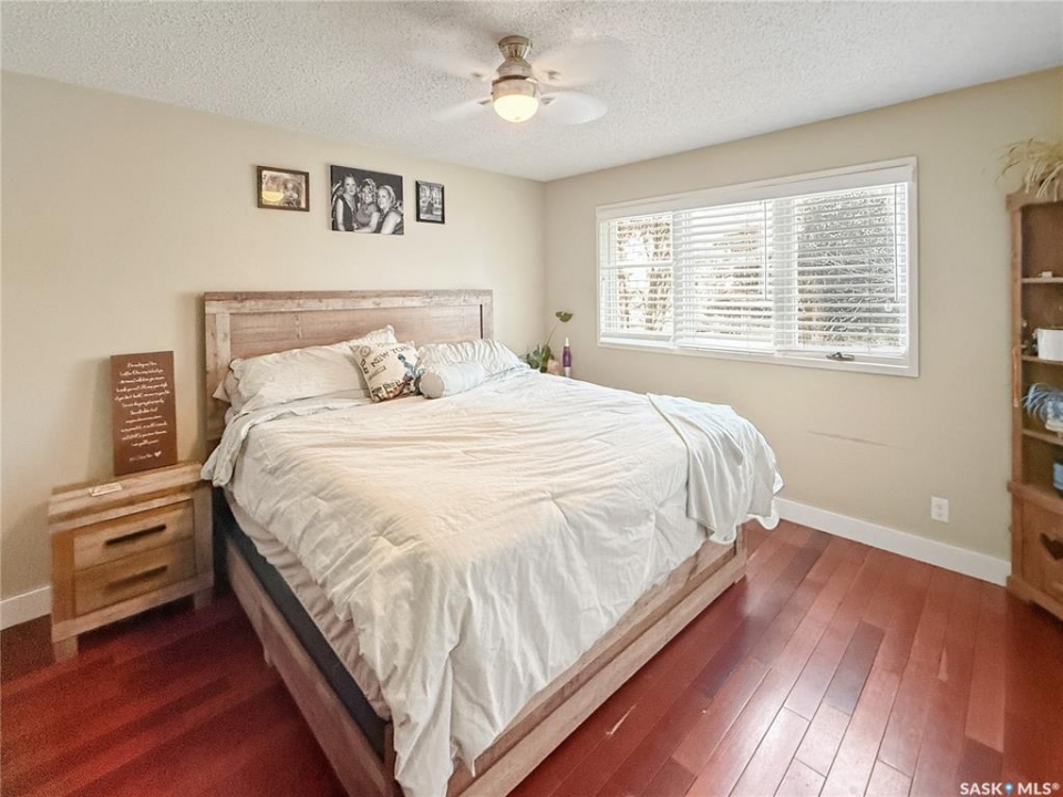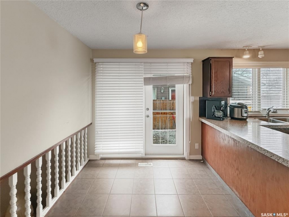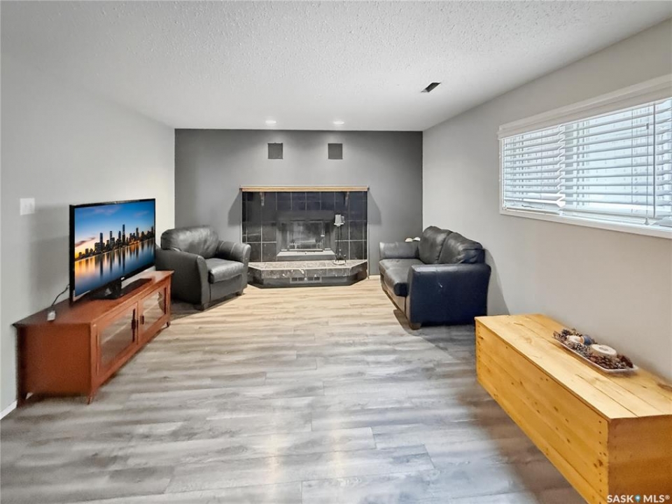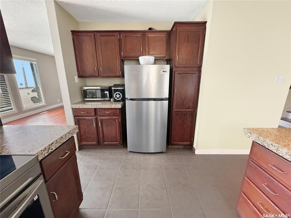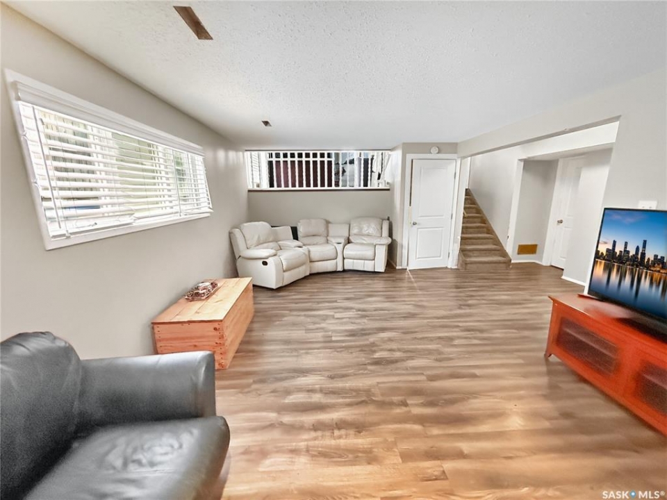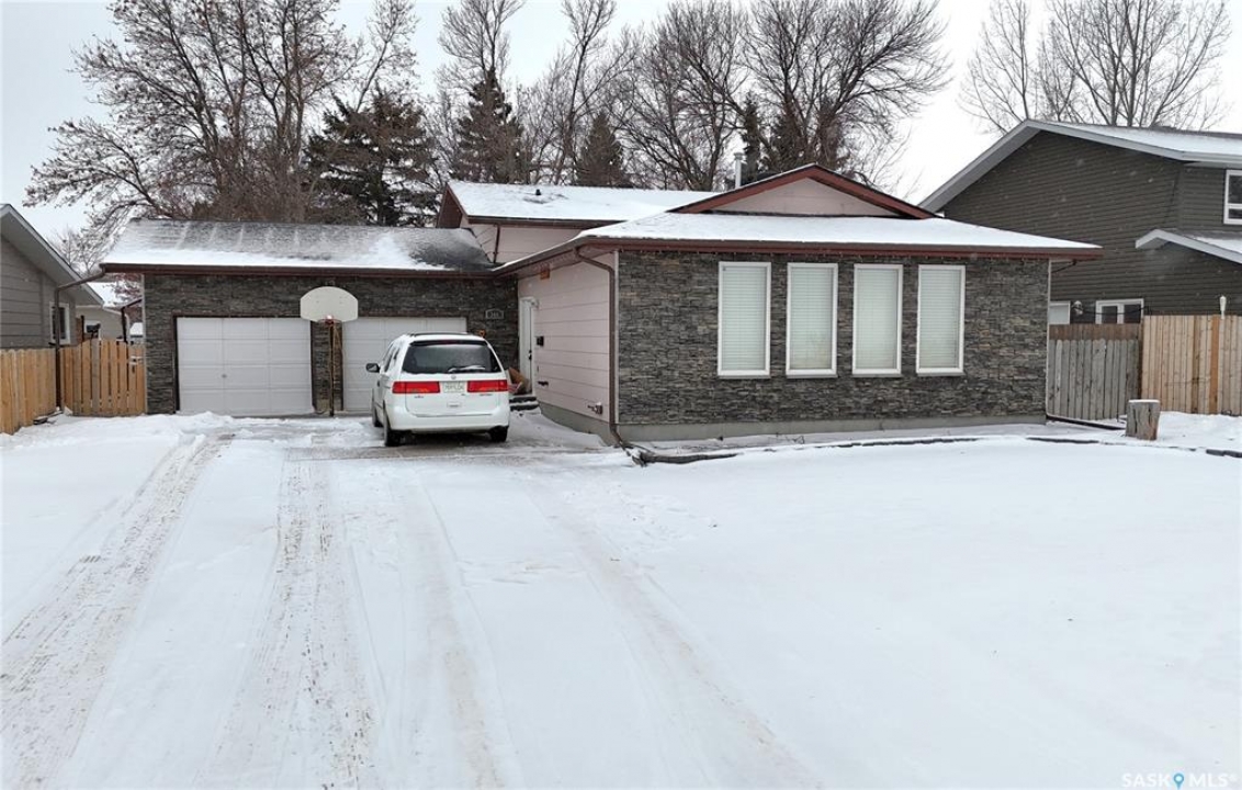 Set on an oversized lot in the Trail subdivision, with sweeping prairie views and those iconic Land of the Living Skies sunsets, this 4-level split offers tremendous potential and generous square footage for a growing family. The main floor features a spacious L-shaped living and dining room with original hardwood floors that add warmth and character. The U-shaped kitchen provides great workspace, stone countertops, and a newer fridge and stove (approx. 2 years old). A bright dining nook with garden doors leads to the backyard and overlooks the large family room on the lower level. Just a few steps down, the family room is anchored by a wood-burning fireplace, and this level also includes a bedroom, a 3-piece bathroom, laundry area, and direct access to the double attached garage—complete with radiant overhead heat. Upstairs, you'll find three bedrooms, including a generous primary suite with a walk-in closet and 2-piece ensuite, along with a 4-piece main bathroom. The basement level offers even more living space with a sizable rec room, a den, and a mechanical room featuring an energy-efficient furnace. Recent practical updates include new shingles in 2024, giving buyers peace of mind for years to come. Outdoors, the oversized backyard includes a storage shed and plenty of room to create your ideal outdoor setup. Parking is abundant, with space for an RV and all the extras. With its spacious layout, incredible lot, and desirable location in the Trail subdivision along Battleford Trail, this home is a wonderful opportunity for someone looking to personalize a space and make it their own.