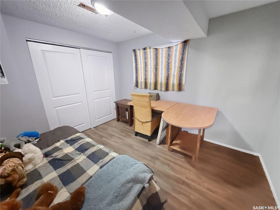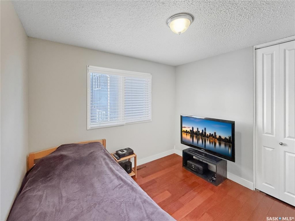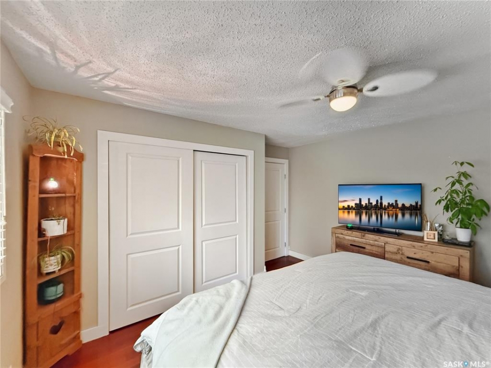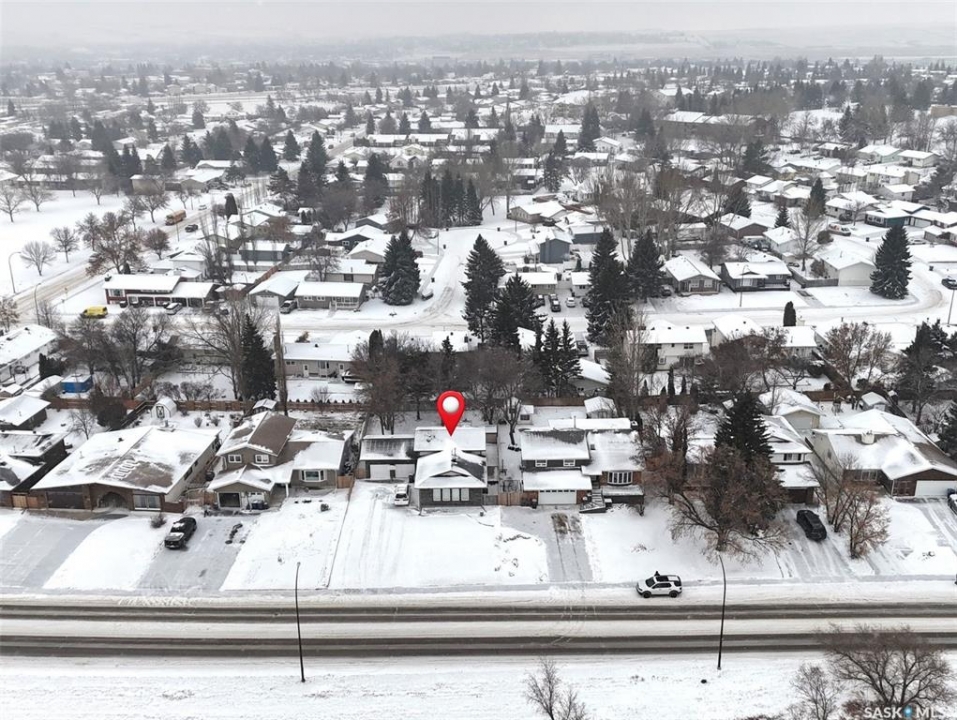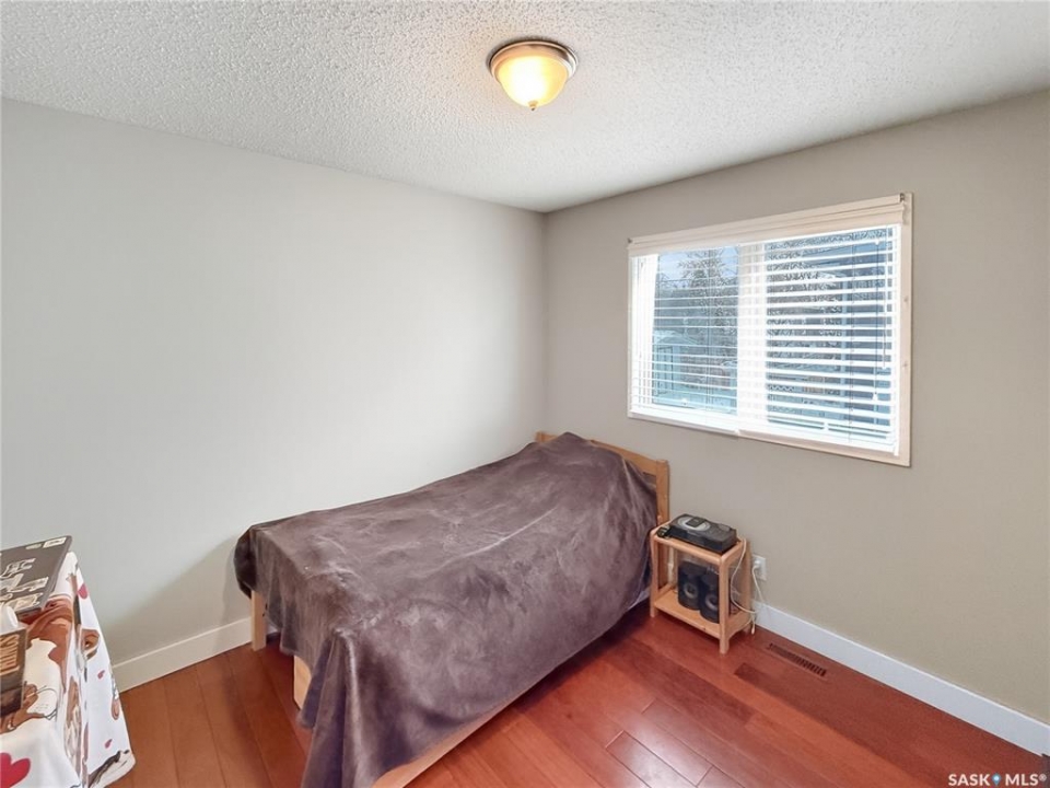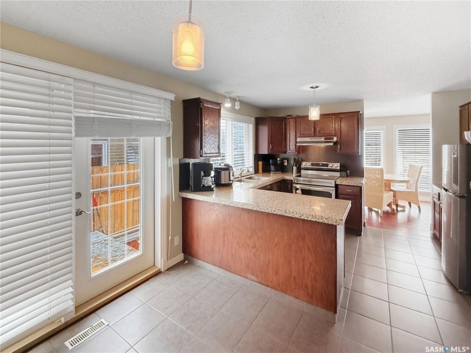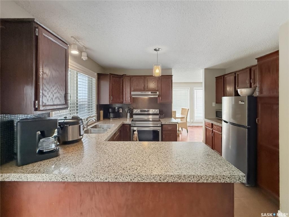 Set on an oversized lot in the Trail subdivision, with sweeping prairie views and those iconic Land of the Living Skies sunsets, this 4-level split offers tremendous potential and generous square footage for a growing family. The main floor features a spacious L-shaped living and dining room with original hardwood floors that add warmth and character. The U-shaped kitchen provides great workspace, stone countertops, and a newer fridge and stove (approx. 2 years old). A bright dining nook with garden doors leads to the backyard and overlooks the large family room on the lower level. Just a few steps down, the family room is anchored by a wood-burning fireplace, and this level also includes a bedroom, a 3-piece bathroom, laundry area, and direct access to the double attached garage—complete with radiant overhead heat. Upstairs, you'll find three bedrooms, including a generous primary suite with a walk-in closet and 2-piece ensuite, along with a 4-piece main bathroom. The basement level offers even more living space with a sizable rec room, a den, and a mechanical room featuring an energy-efficient furnace. Recent practical updates include new shingles in 2024, giving buyers peace of mind for years to come. Outdoors, the oversized backyard includes a storage shed and plenty of room to create your ideal outdoor setup. Parking is abundant, with space for an RV and all the extras. With its spacious layout, incredible lot, and desirable location in the Trail subdivision along Battleford Trail, this home is a wonderful opportunity for someone looking to personalize a space and make it their own.