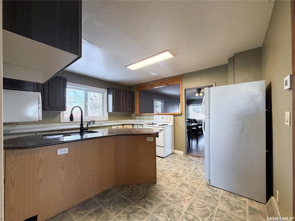 Welcome to 301 Front Street in Eastend — a 1,692 sq. ft. 1 �-storey home full of charm, character, and thoughtful updates. Situated on a 6,000 sq. ft. corner lot with lane access, this property offers a fully fenced backyard, single detached garage, and a peaceful, walkable location near Eastend's quaint town centre. Inside, you're welcomed into a bright living and dining area with large windows that fill the space with natural light. Two main floor bedrooms are tucked just off this main area, each with updated windows (2020) for comfort and efficiency. Continue through to the kitchen — also updated with newer windows in 2020 — where the charm of this home continues to shine. The main floor bathroom is a unique highlight, featuring in-floor heat and a stunning original clawfoot tub. Previously a bedroom, this space was smartly reconfigured for comfort and convenience and includes main floor laundry. A second main floor space — once a bathroom — now serves as a mudroom or den with access to the back Trex deck (approx. 2007) and private yard. Upstairs, you'll find a large open loft — perfect as a third bedroom, home office, or creative retreat. The unfinished basement offers excellent storage space and houses the high-efficiency furnace (2023) and water heater (approx. 2018). This home also includes central air conditioning to keep you cool through the summer. Nestled in the scenic Frenchman River Valley, Eastend is a hidden gem — rich in natural beauty, paleontology, and prairie charm. With access to the famous T.rex Discovery Centre, art galleries, hiking trails, a vibrant local community, and a peaceful small-town atmosphere, Eastend is the perfect place to slow down and enjoy Saskatchewan's southwest beauty. Whether you're looking for a cozy full-time home or a quiet getaway, 301 Front Street is ready to welcome you.