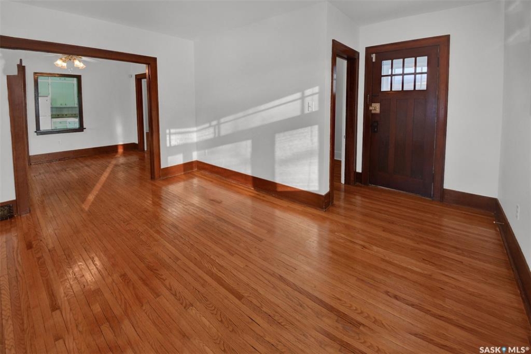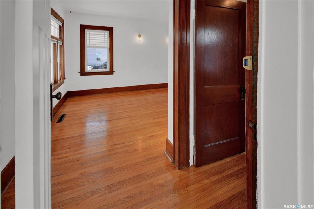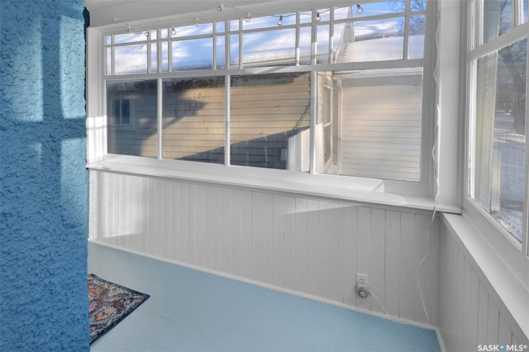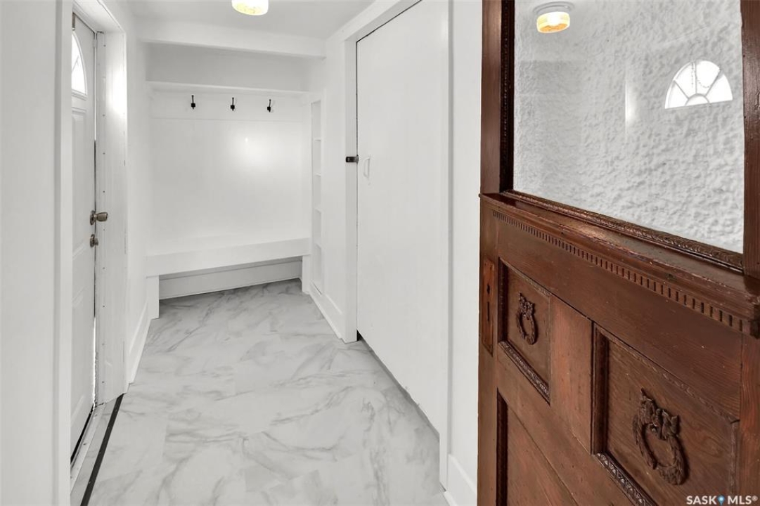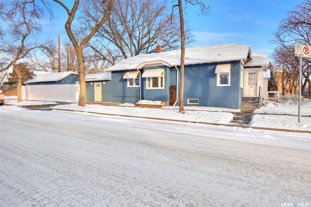 Welcome to this bright and charming character home located in Caswell Hill. This gem is close to two elementary schools, a high school, Sask. Polytechnic and Ashworth Holmes Park with a new playground, paddling pool, and lawn bowling. This home is within walking distance of a grocery store, bakeries, churches, a library, and many shops. The front of the home greets you with a large L-shaped closed-in porch. Inside, you enter on original hardwood floors that flow through the front entry, living room, dining room, hall, and bedrooms. The main floor has original woodwork, some stained and some painted. Many original light fixtures luminate this home, and original doors add to the character of this home. The living room and dining room are flooded with natural light from the large picture windows. The kitchen has freshly painted cabinets, a new quartz countertop with a new sink and faucet. A new refrigerator and vinyl floor add to the updates. The bath has been completely updated from top to bottom. The primary bedroom offers 2 closets, and the 2nd bedroom has a unique pass-through feature that adds to the charm of this home. Enter the side entrance to a mudroom with new vinyl floor and an entrance to a space that can be converted into another living space, office, or bedroom. The basement has been completely renovated with paint, light fixtures, and flooring, and offers a family room, den, bedroom, laundry room with a new washer and dryer, and has many storage closets. This house has been completely painted inside and out, has upgraded shingles, some newer windows, landscaping, a custom brick patio, and a new fence. The large insulated and boarded single garage offers off-street parking, and the corner lot offers additional parking. All the updates have been mindful and done to keep in line with the character of this beautiful home.