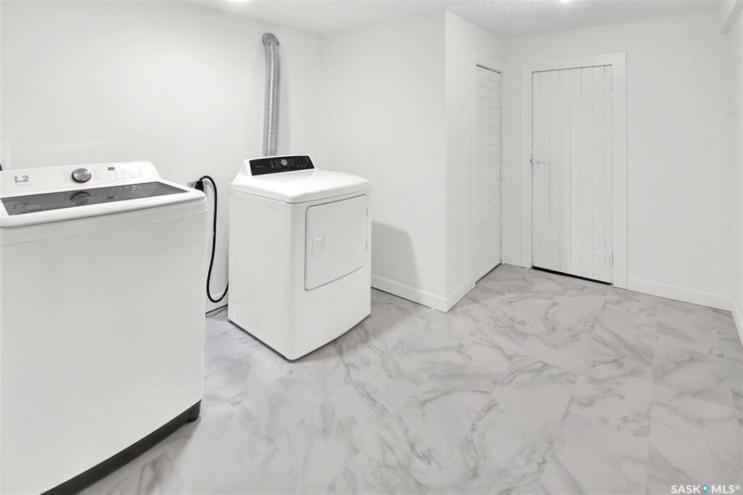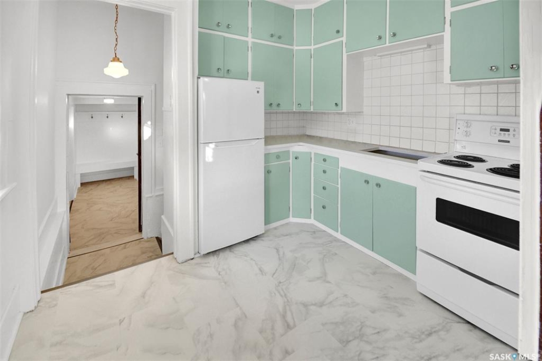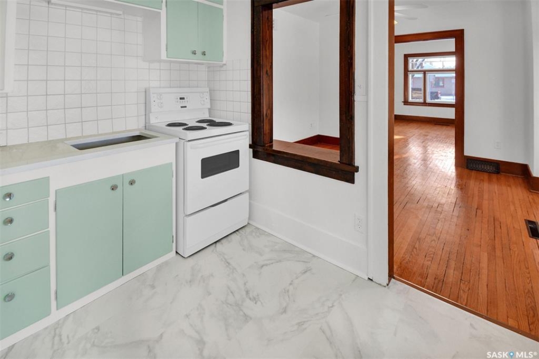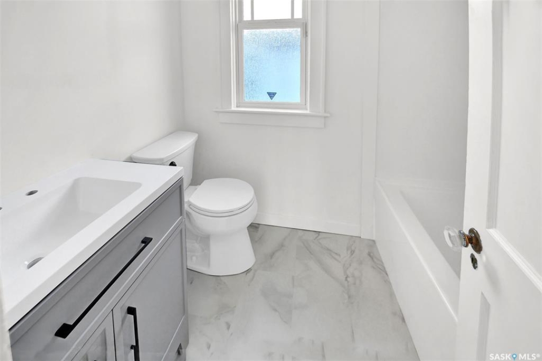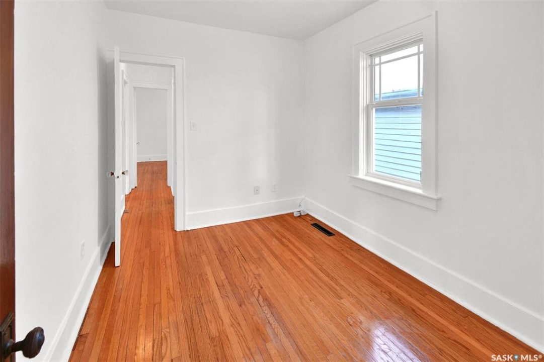Welcome to this bright and charming character home located in Caswell Hill. This gem is close to two elementary schools, a high school, Sask. Polytechnic and Ashworth Holmes Park with a new playground, paddling pool, and lawn bowling. This home is within walking distance of a grocery store, bakeries, churches, a library, and many shops. The front of the home greets you with a large L-shaped closed-in porch. Inside, you enter on original hardwood floors that flow through the front entry, living room, dining room, hall, and bedrooms. The main floor has original woodwork, some stained and some painted. Many original light fixtures luminate this home, and original doors add to the character of this home. The living room and dining room are flooded with natural light from the large picture windows. The kitchen has freshly painted cabinets, a new quartz countertop with a new sink and faucet. A new refrigerator and vinyl floor add to the updates. The bath has been completely updated from top to bottom. The primary bedroom offers 2 closets, and the 2nd bedroom has a unique pass-through feature that adds to the charm of this home. Enter the side entrance to a mudroom with new vinyl floor and an entrance to a space that can be converted into another living space, office, or bedroom. The basement has been completely renovated with paint, light fixtures, and flooring, and offers a family room, den, bedroom, laundry room with a new washer and dryer, and has many storage closets. This house has been completely painted inside and out, has upgraded shingles, some newer windows, landscaping, a custom brick patio, and a new fence. The large insulated and boarded single garage offers off-street parking, and the corner lot offers additional parking. All the updates have been mindful and done to keep in line with the character of this beautiful home.
