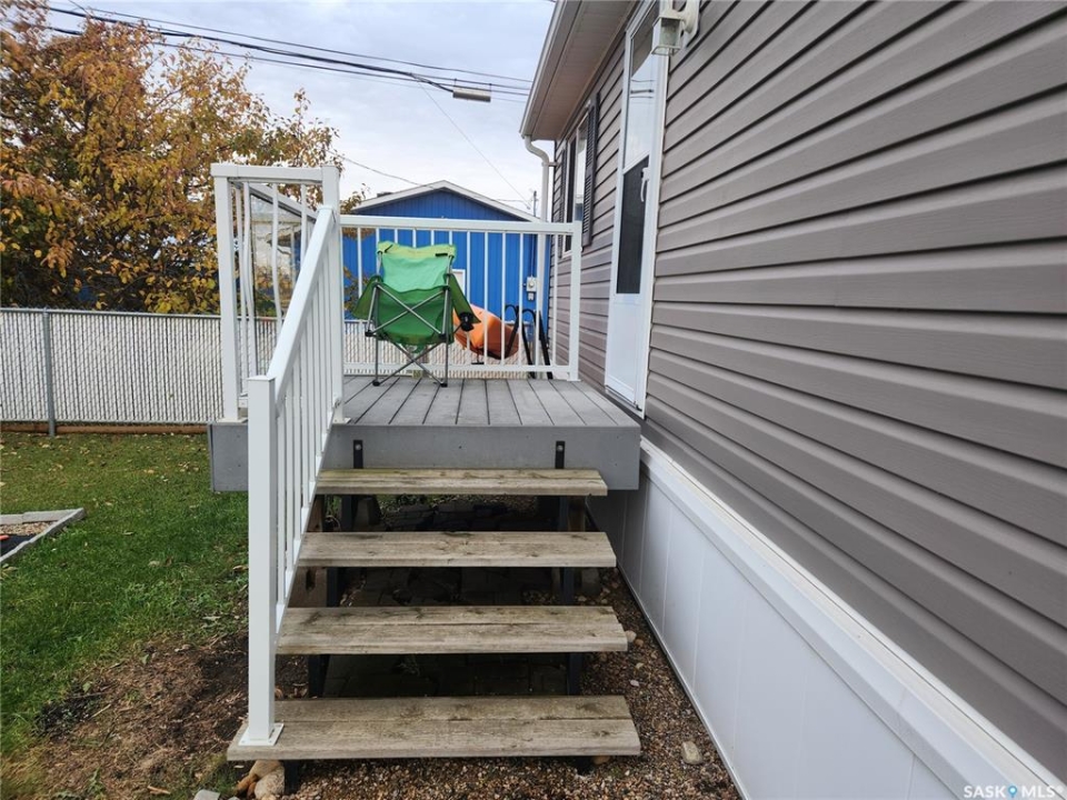 Welcome to this beautifully maintained 2011 residential mobile home situated in the town of Tisdale, SK. Offering a generous 1088 sq ft of living space, this home combines comfort and practicality for modern living. Step inside to discover a spacious primary bedroom complete with a large closet and a full 4 piece ensuite, providing a private retreat for relaxation. Two additional well sized bedrooms and a second bathroom ensure ample space for family or guests. The heart of the home features a modern kitchen equipped with all necessary appliances making meal preparation effortless and enjoyable. The open layout invites plenty of natural light, creating a warm and welcoming atmosphere throughout. Outside you'll find a nicely landscaped fenced yard perfect for outdoor gatherings or simply enjoying some fresh air. The property boasts plenty of parking ensuring convenience for both residents and visitors. Don't miss the chance to make this delightful home your own. It's an ideal choice for those looking for a blend of comfort and functionality on one level in a friendly community. Schedule a viewing today.