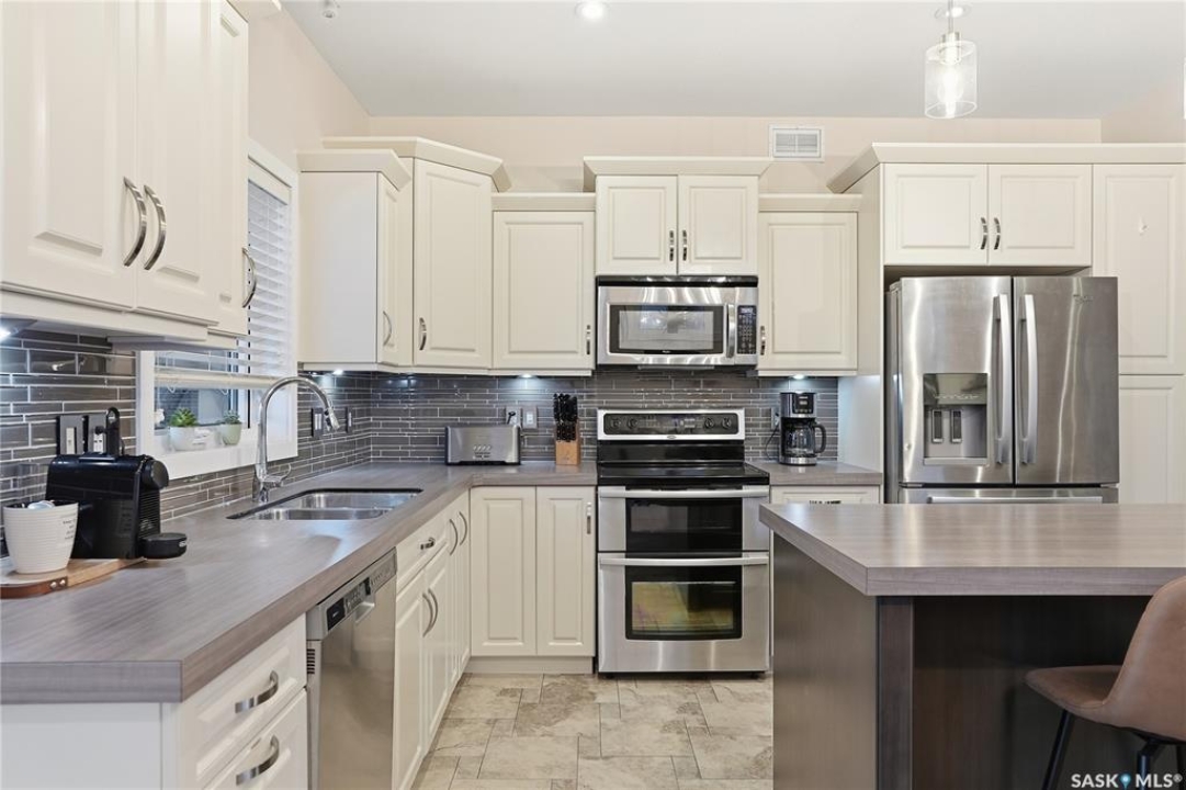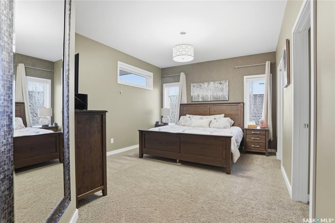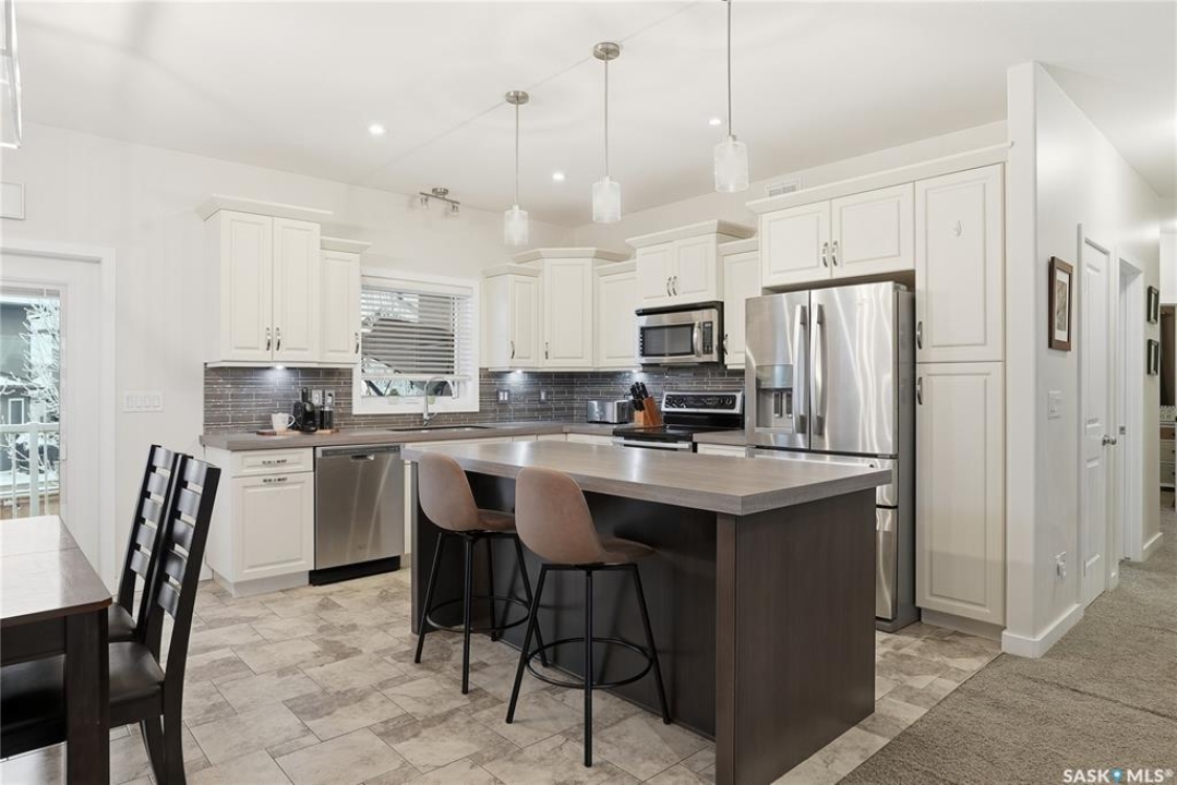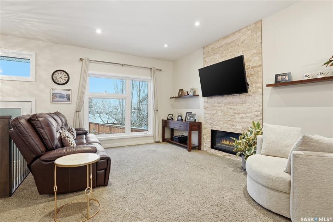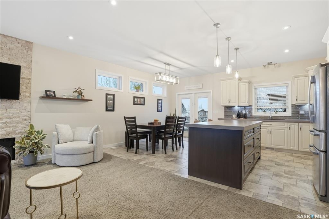 439 Senick Bay offers a rare opportunity to own a spacious raised bungalow in the well-established Stonebridge neighborhood. Situated on a quiet bay, this property combines privacy with proximity to schools, parks, and all the amenities Stonebridge has to offer. Step inside the 1,415 sq. ft. home and you're welcomed by a generous foyer with a walk-in closet. The open-concept main floor features tall ceilings, a bright living room with a cozy fireplace, and a thoughtfully designed kitchen with abundant storage, prep space, and a large island. From the dining area, walk out to the deck overlooking a mature, tree-lined backyard that provides natural privacy. The main floor hosts three bedrooms, including a primary suite with walk-in closet and 3-piece ensuite. A second 3-piece bath and convenient laundry room with ample storage complete the level. Downstairs, oversized windows and tall ceilings make the fully finished basement feel anything but below grade. A spacious family room and play area are complemented by two additional bedrooms, a home office, and a luxurious 4-piece bathroom with walk-in shower and freestanding tub. The utility room adds even more storage options. A heated, fully finished double garage rounds out this impressive property. 439 Senick Bay is a home that blends comfort, functionality, and timeless appeal. Schedule your private showing today.