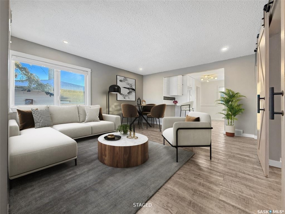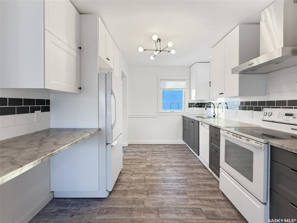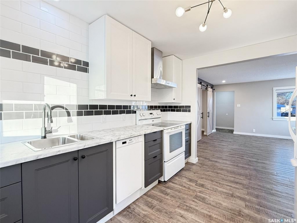 Welcome to 634 5th Ave. NW, a property that combines modern convenience with exceptional curb appeal. The home's exterior features a striking new stucco facade and a spacious 11.7 x 15.7 deck, all set within a fully fenced yard. Both levels boast updated PVC windows, enhancing energy efficiency and style. Upon entering, you're greeted by a spacious front porch leading into an open-concept living and dining area. This space is highlighted by updated vinyl plank flooring and freshly painted walls. The kitchen is a chef's dream, featuring modern cabinetry, a glass tile backsplash extending to the ceiling, a built-in island with seating, and contemporary countertops, all offering a picturesque view of the backyard. The main floor includes three bedrooms, with one offering versatile access through a sliding barn door, ideal for use as a bedroom, formal dining room, office, or library. The fully renovated four-piece bathroom on this level adds convenience, along with a main floor laundry area. The lower level presents a blank canvas for customization, already benefiting from significant upgrades. It features new oversized PVC windows, a new concrete floor, full insulation, and plumbing provisions for a secondary kitchen and a two-piece washroom, ready to be expanded to include a bathtub or shower. This area offers potential for additional bedrooms, a large living space, or any other configuration you envision. The property also includes a spacious storage and laundry area with an energy-efficient furnace, a 100 amp electrical panel, and ample storage space. Outside, enjoy a 20 x 22 double car garage that is both heated and insulated, with additional parking behind the garage. The generous backyard is perfect for outdoor activities. This home is conveniently located close to downtown, within blocks of a school, multiple parks, and offers easy access to the highway, making it an ideal choice for those seeking both comfort and convenience.