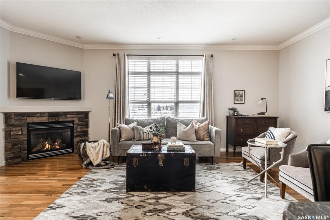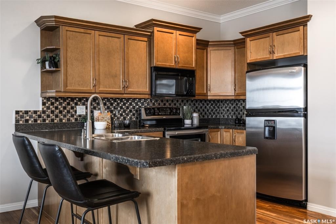 Welcome home to this bright and spacious 2-bedroom, 2-bath condo perfectly situated in highly desirable University Heights. Featuring an updated kitchen with an eat-up peninsula, stainless steel appliances, and tons of cabinetry, this unit delivers both style and function. The open-concept living and dining area is warmed by a gas-burning fireplace and highlighted by large south-facing windows that flood the space with natural light. Step outside to a covered balcony to enjoy the sunshine. Beautiful hardwood floors and freshly panted walls flow throughout the main living areas, adding warmth and continuity. The primary bedroom offers comfort and convenience with a large window, walk-in closet, and a 3-piece ensuite complete with a walk-in shower. The second bedroom is best suited for a twin bed and would make an excellent home office or creative space. Additional perks include in-suite laundry, a generous storage room, and access to an amenities room equipped with a kitchen and fireplace—perfect for hosting gatherings. Leave the car at home and enjoy a less-than-5-minute walk to groceries, restaurants, medical services, and more. Underground parking and visitor parking complete this exceptional package. A fantastic opportunity to own in a prime location with everything right at your doorstep!