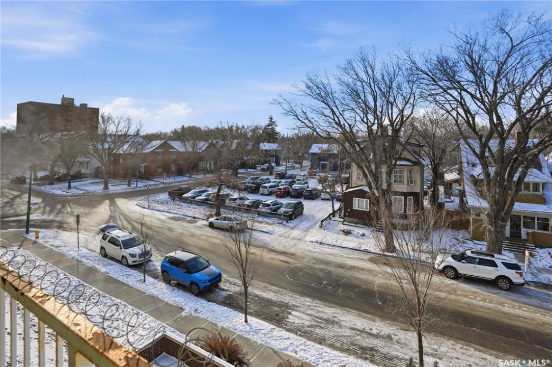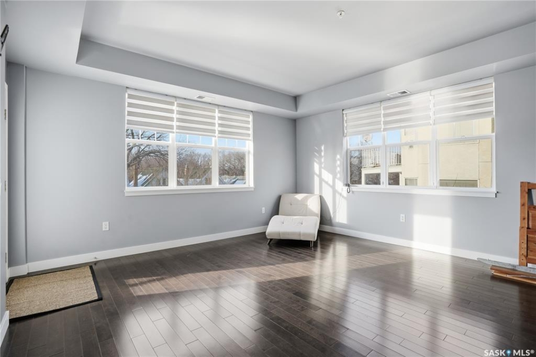 Welcome to 2255 Angus Street #305. Enjoy superb downtown access and condo living lifestyle.The Strathmore provides quiet condo living with secure access and is walking distance to Regina Downtown, Wascana Park, and all the amenities of the Regina Cathedral area. Comes with 2 parking stalls, heated garage parking and one exterior stall. Assigned storage in the parking area. The fabulous corner unit is just over 1100 sq ft and has large windows facing west and north providing tons of natural light. this 2 bedroom 2 bath condo has a large modern kitchen and centre island featuring white quartz countertops and subway tile backsplash, a large open concept with living/dining area two full 4pc bathrooms and 2 large bedrooms. This home has all appliances & window coverings included, tile & hardwood throughout w/ carpet in the bedrooms. The building condo fees include water, (soft water) garbage, sewer, insurance (common), maintenance, snow removal & reserve fund. Recent upgrades include newer paint thru out, professionally cleaned, including dryer vent, furnace/AC ducting in 2024. New toilet installed in main bathroom.