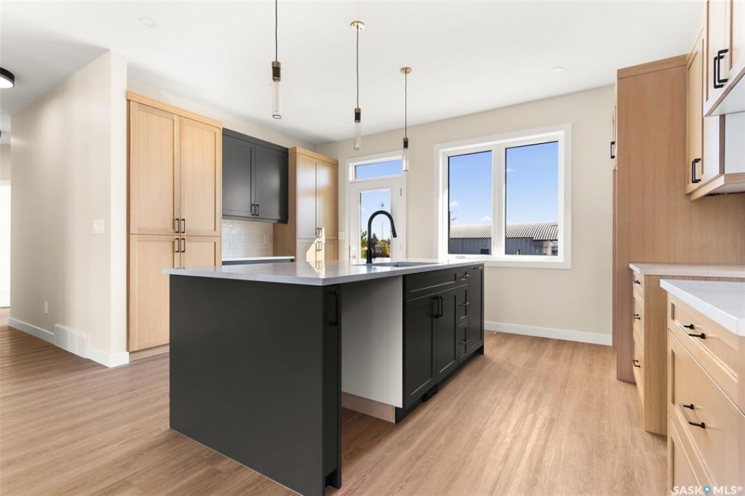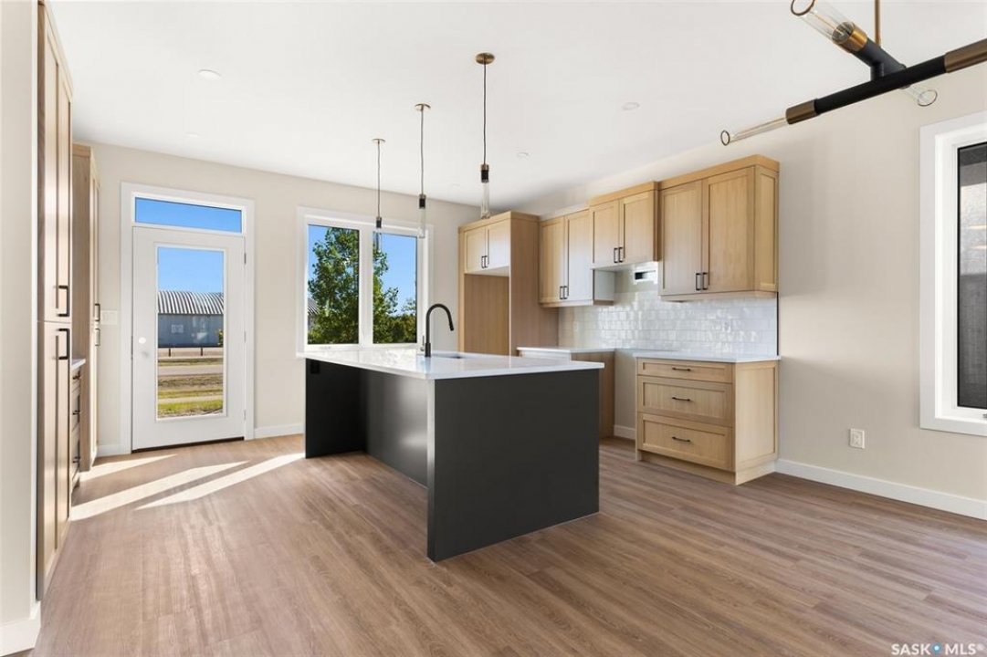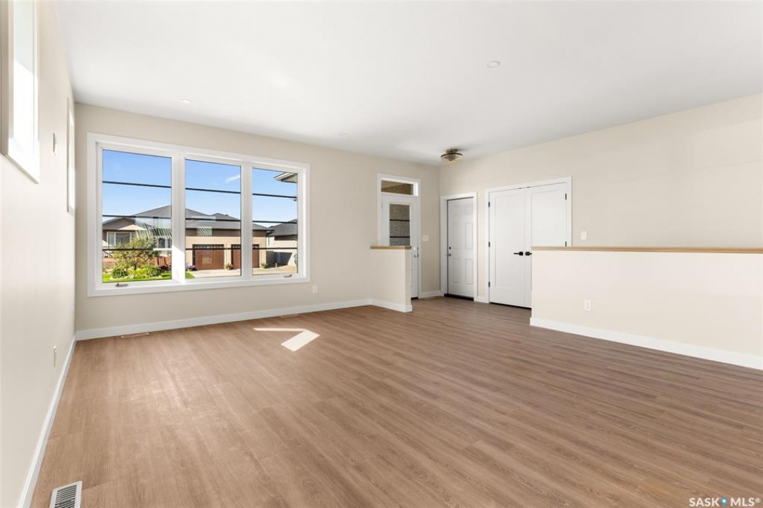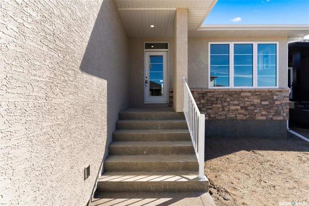 Welcome to 5 Konanz Bay in Balgonie! Just minutes from Regina, this 1,405 sqft bungalow by Outlander Construction is functional and stylish. Showcasing open-concept living at its best, this is the perfect space for entertaining and active family living! The kitchen features loads of trendy shaker-style cabinetry, quartz countertops and an 8' eat-up island. The spacious primary bedroom offers a walk-in closet and 3-piece ensuite. Rounding out the main floor are 2 additional bedrooms, a 4-piece bath and convenient main floor laundry. The basement exterior walls are framed and insulated and plumbing is roughed in for another bathroom. Progressive home warranty is in place. Other features include: over-sized double garage, exposed aggregate driveway and maintenance-free exterior.