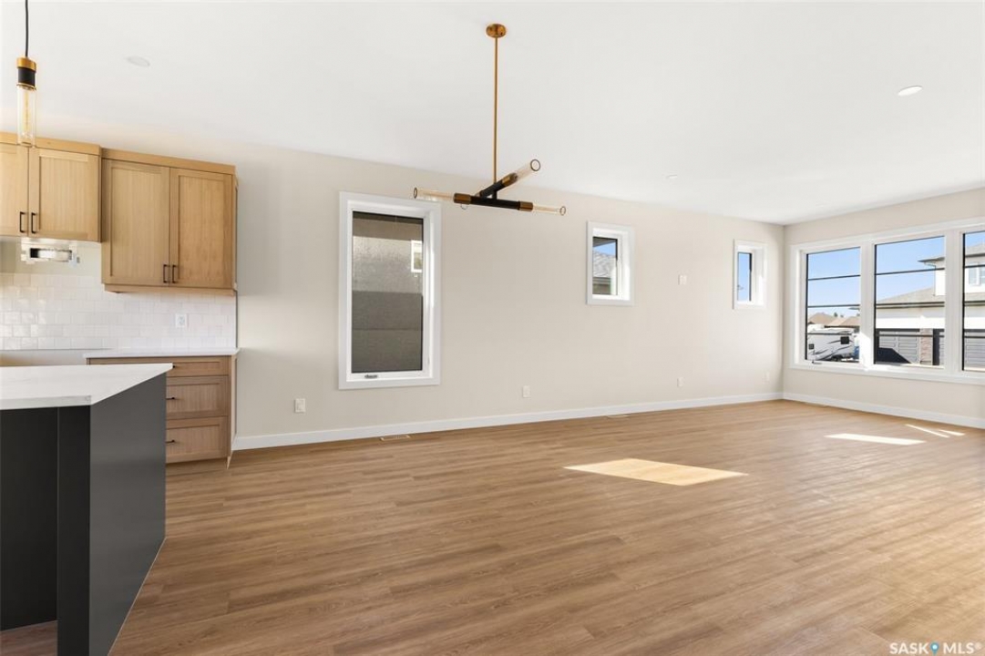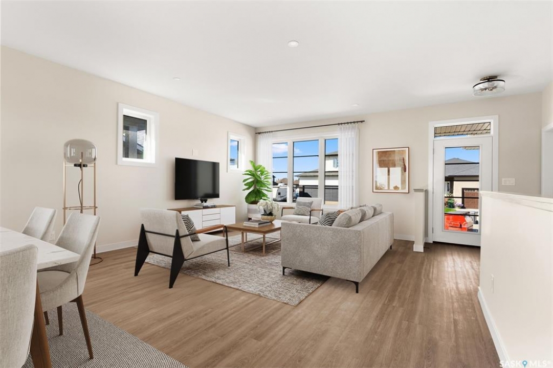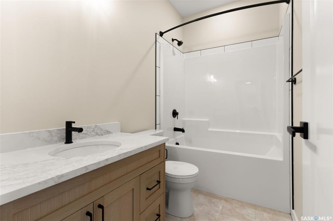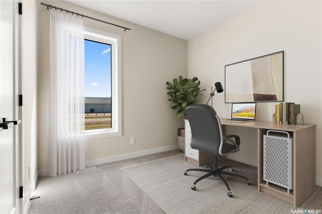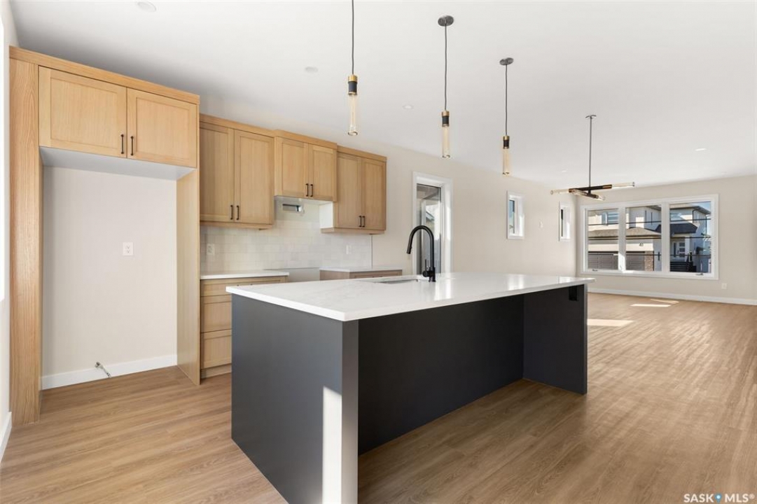 Welcome to 5 Konanz Bay in Balgonie! Just minutes from Regina, this 1,405 sqft bungalow by Outlander Construction is functional and stylish. Showcasing open-concept living at its best, this is the perfect space for entertaining and active family living! The kitchen features loads of trendy shaker-style cabinetry, quartz countertops and an 8' eat-up island. The spacious primary bedroom offers a walk-in closet and 3-piece ensuite. Rounding out the main floor are 2 additional bedrooms, a 4-piece bath and convenient main floor laundry. The basement exterior walls are framed and insulated and plumbing is roughed in for another bathroom. Progressive home warranty is in place. Other features include: over-sized double garage, exposed aggregate driveway and maintenance-free exterior.