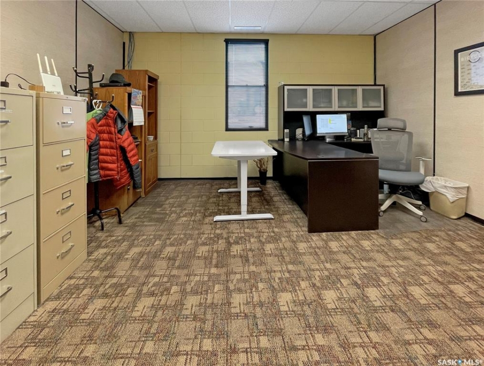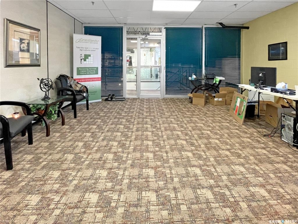 STORE FRONT space is now available in the highly sought after freshly renovated luxury business plaza “The Block” . Affordable monthly rent with all occupancy costs included aside from electricity this 1,000 square feet of open concept (air conditioned) space is MOVE IN READY! Currently the floor plan boats a large front reception, large single office and 2 offices in the back with room to accommodate more or open the space up. Enjoy natural light as this end unit houses windows and an airy professional ora. The building will soon have cameras installed and a fob system implemented for easy access at any hour! Located on the lower level of THE BLOCK, downtown Swift Currents' freshly renovated public mall, offering a brand new modern interior and exterior, ample public parking, great branding and walk-in opportunities with a high traffic mall setting including some large professional anchor businesses offering you the attention your business has been looking for! Set a lasting impression in this impressive space and bring your business to the next level! Call today to view.