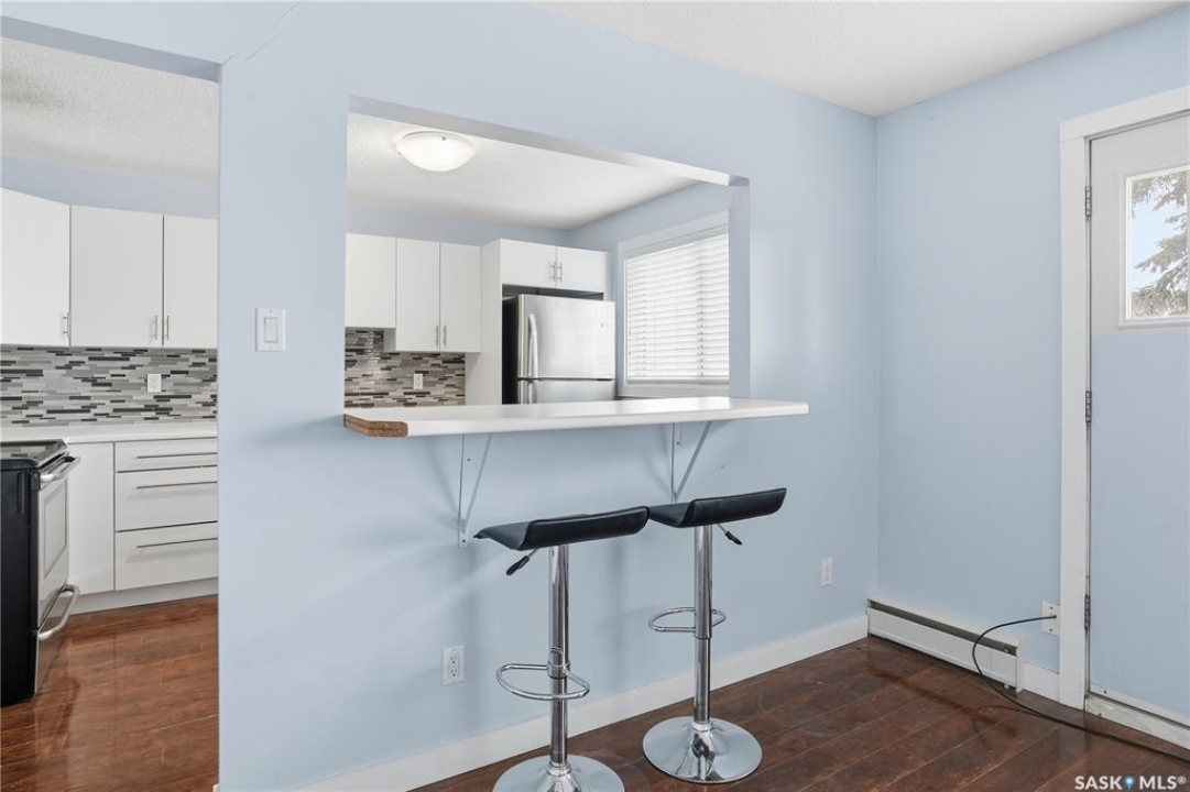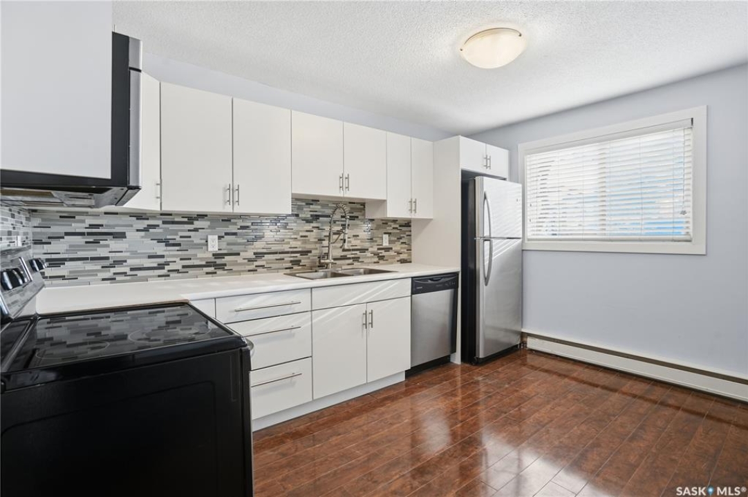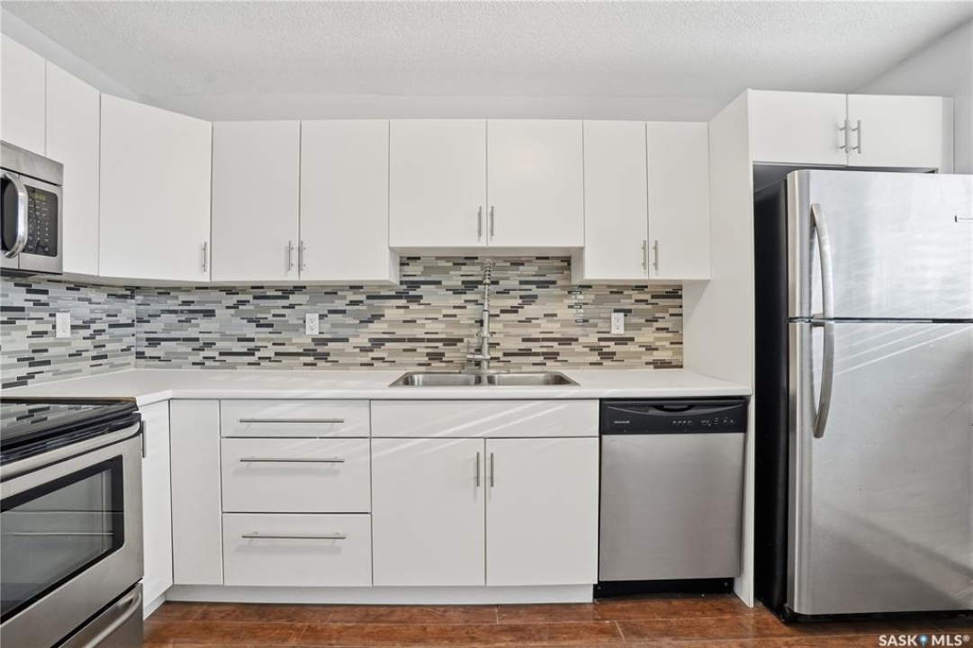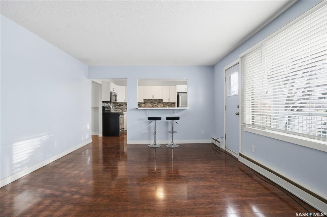 Great location and nice layout. Two good size bedrooms, four piece bathroom with in-suite laundry/storage room. The kitchen has updated white cabinets, eat at island, very functional space with the amount of counter top and location of appliances. Natural light in kitchen and living room. Plus a good size balcony - room for a bbq and bistro set. Laminate flooring throughout, new flooring in bedrooms, ready to move into. The washer/dryer appliances is all in one. In addition there is shared laundry available in the building. An electrified exterior outside parking stall - it's larger as its on the end. Condo fees include water and heat, common area insurance, lawn care, snow removal. Pets area allowed with restrictions. Smaller apartment condo building in a desirable neighbourhood of Arnhem, close to beautiful Wascana Park, walking paths. Easy commute to university and downtown, For more information or a viewing contact your salesperson.