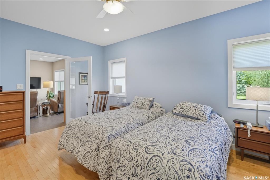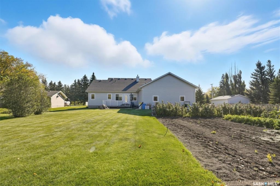Welcome to Waldheim! A welcoming and well-kept community known for its pride of ownership and small-town hospitality. Residents enjoy a K–12 school, community rink, parks,golf course, medical clinic and fibre internet. Just a 30 minute drive North of Saskatoon, Waldheim offers a peaceful lifestyle with an easy commute to city amenities. Discover this spacious custom-built bungalow, perfectly designed for comfort, functionality, and multi-generational living. Situated on an expansive lot with plenty of room for gardening or outdoor enjoyment, this property offers exceptional value and versatility. Step inside to a bright and inviting main floor featuring a large kitchen with custom maple cabinetry, ample counter space, and a cozy breakfast nook. A formal dining room and generous living room provide excellent spaces for gathering and entertaining. Conveniently located on the main level are the laundry room, a well-appointed primary bedroom featuring double walk-in closets and an ensuite, a second bedroom, and a dedicated office—ideal for working from home or hobbies. Off the back of the home, a charming sunroom overlooks the beautiful backyard, offering the perfect place to relax in any season. The lower level is designed with flexibility in mind, featuring a legal 1-bedroom suite complete with a full kitchen, in-floor heat, and its own laundry hook-up—perfect for extended family or rental income. The basement also includes two additional bedrooms and a large storage room, providing abundant space for everyone. Outside, enjoy both front and back decks, ideal for morning coffee, evening sunsets, or summertime entertaining. The triple attached garage adds convenience, storage, a workspace with a 220V outlet and room for all your vehicles and toys. This exceptional bungalow blends expansive living space, thoughtful design, and income potential—truly a rare find on such a generous lot!