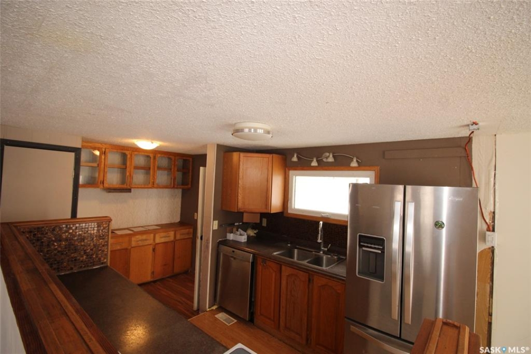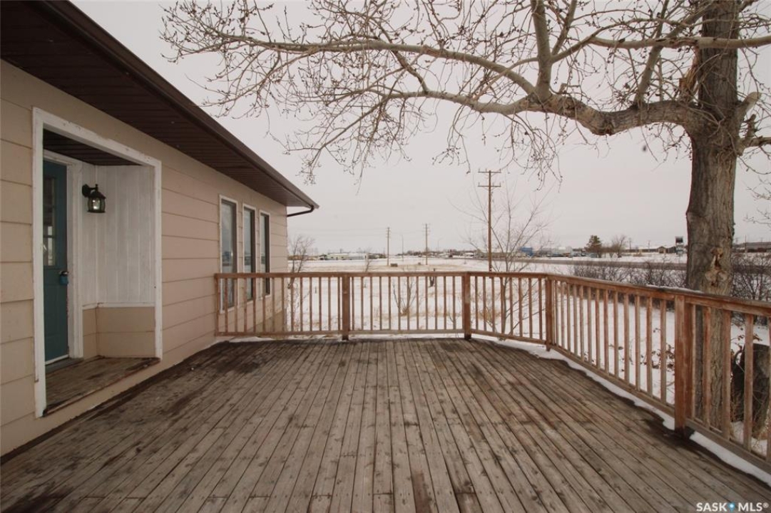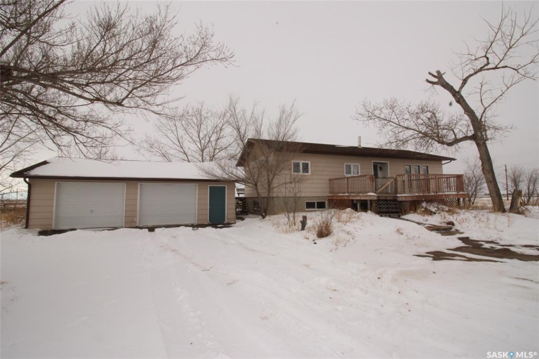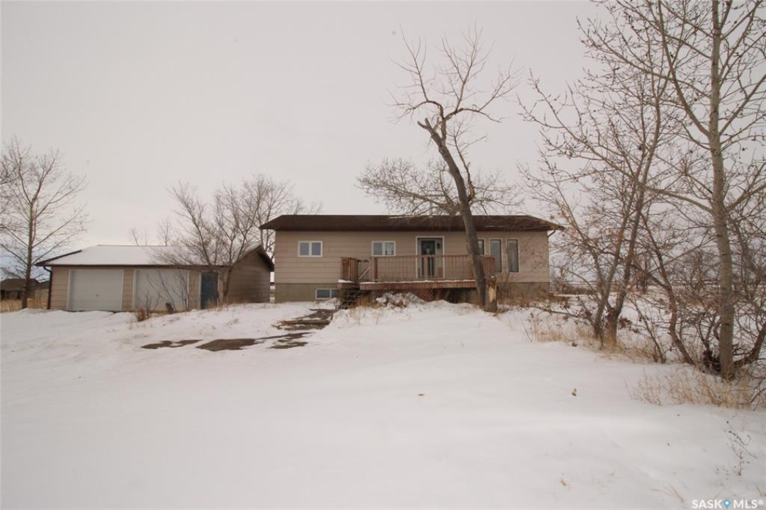 Located on the corner of highway 37 & 13 this acreage is gives you lots of space with all town amenities in walking distance. The home is a fixer upper but has a good basement and lots of potential. The main floor hosts two bedrooms up with two bathrooms. The kitchen, dining and living room are all open so you can entertain and keep conversation alive. The basement has had some rooms being framed, but not complete. There is another 4 pc bath downstairs as well as dedicated laundry space. The back deck looks out to the West to catch the best Sunsets. There is some other outbuildings and room to grow and create a little homestead!