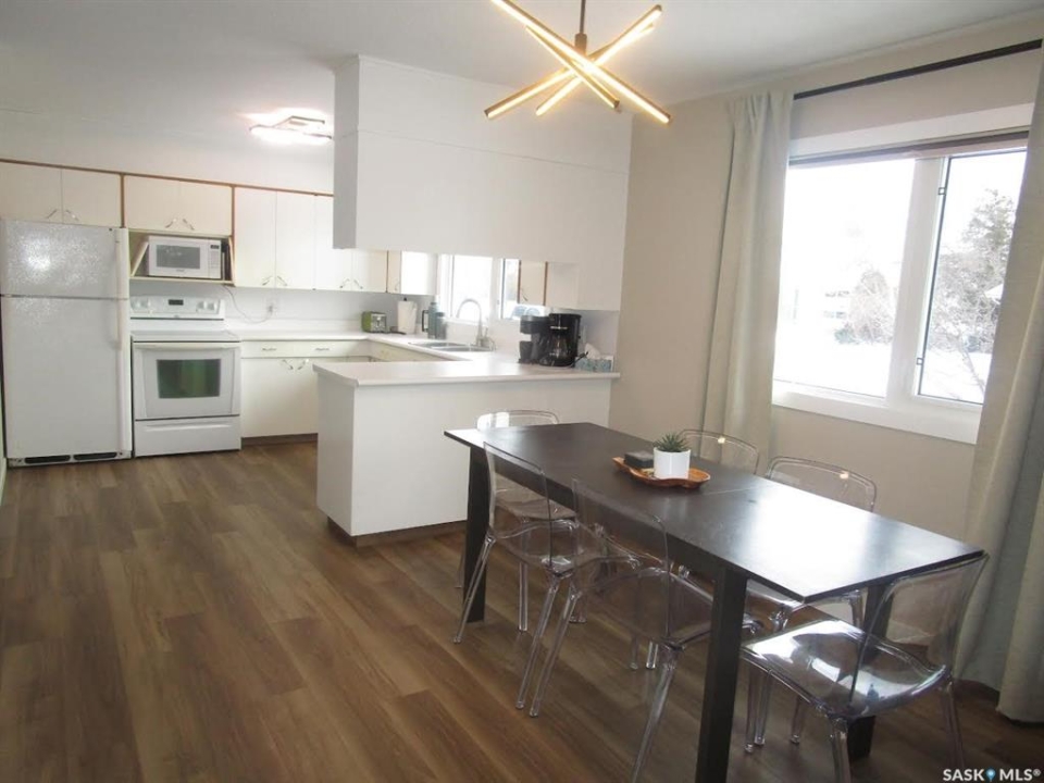 Welcome to 249 6th Ave East in Gravelbourg, Saskatchewan. Great curb appeal as you admire the New Shingles, Siding, Windows and down to the details of an attractive wood beam across the top of the deck. Even the chimney has been finished to match the siding. The unique breeze way leads you to the garage, your Home or the backyard. Entering you will find a very roomy entry for all your coats, shoes and boots. This room also has main floor laundry for you convenience. The kitchen and dining room are open and feature many cabinets with lots of counters that create a u shaped kitchen. The large dining area will feature your big dining table for family and friends. 3 bedrooms on the main floor. The basement will give your family lots of room to spread out and enjoy. Room for a pool table, shuffle board, big screened TV, and over sized furniture. Also a 3 piece bathroom for your convenience. Great storage room with lots of shelves and the 100 Amp Breaker Box. The front of this home has all updated windows, front door, and siding. This home has been freshly painted including the ceilings and the walls. Updated baseboards and light fixtures make the rooms sparkle. The luxury vinyl plank thru out is truly the finishing touch. The front yard is xeriscape. The backyard is completely fenced and has a concrete pad for your RV or your firepit area. There is a good sized shed in this 75 ft wide yard. The new air conditioner is covered and waiting for summer. This is a home that has it all, and a place to make memories in for years to come. Gravelbourg is a lovely Historic town and is about 15 minutes to Thomson Lake. A great hospital, a new Red Apple Store, Co-op Grocery, unique shopping at Styles. Wonderful food at the restaurants and so much more.