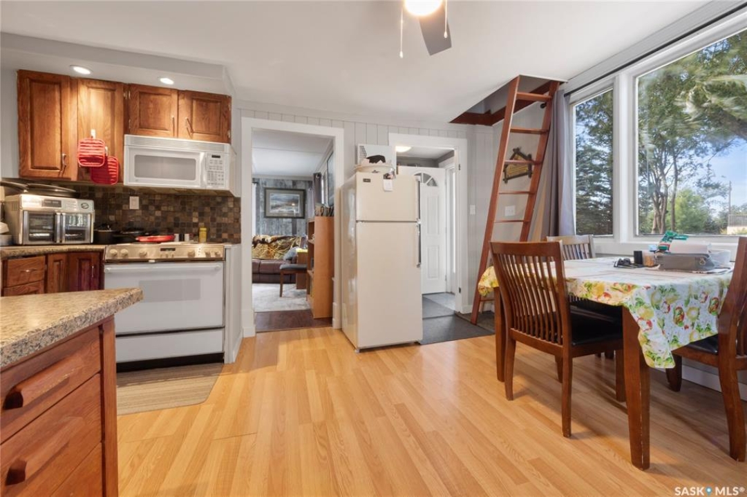 85 Procter Drive – Blackstrap Shields Welcome to this charming 4-season cabin at Blackstrap Shields, offering the perfect mix of comfort, character, and convenience. Whether you're looking for a year-round home or a cozy cabin getaway, this property checks all the boxes. With fantastic curb appeal, plenty of deck space, and a large yard, it's an excellent starter cabin or full-time residence. Step inside to find an inviting open kitchen and dining area anchored by a wood-burning fireplace, perfect for those cooler evenings. The main floor also features a renovated 3-piece bath, one bedroom, and a bright living room with large windows that flows into a covered and screened-in sunroom (measuring 11'01" x 11'02" and not included in the square footage). With a little work to insulate, this space could easily be converted into additional living area—instantly boosting your usable square footage. Upstairs, the loft is currently set up as a second bedroom, but it also works perfectly as a flexible bonus space—whether you need an art studio, office, or a fun kids' retreat. Outdoors, you'll enjoy front and back decks so you can chase the sun (or shade) all day long. The south-facing backyard is perfect for gardeners and sun-lovers alike, featuring sheds for storage, flower beds, a garden space, and a firepit area for summer nights under the stars. Just steps away, you'll find the lake, a park and playground, and the community's incredible 9-hole golf course—one of the best perks of life at Shields. This property is a true 4-season gem—perfect as a starter cabin, weekend retreat, or full-time home. Call your Realtor � today to book a private showing at 85 Procter Drive!