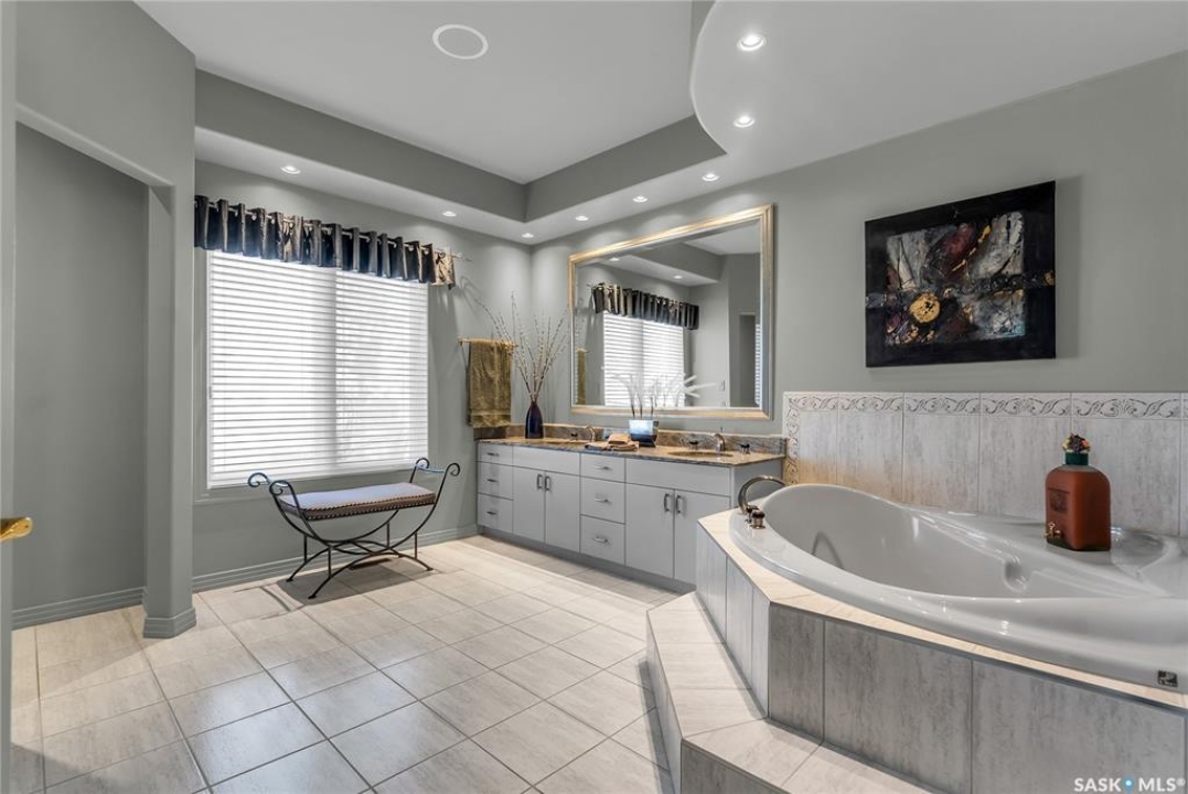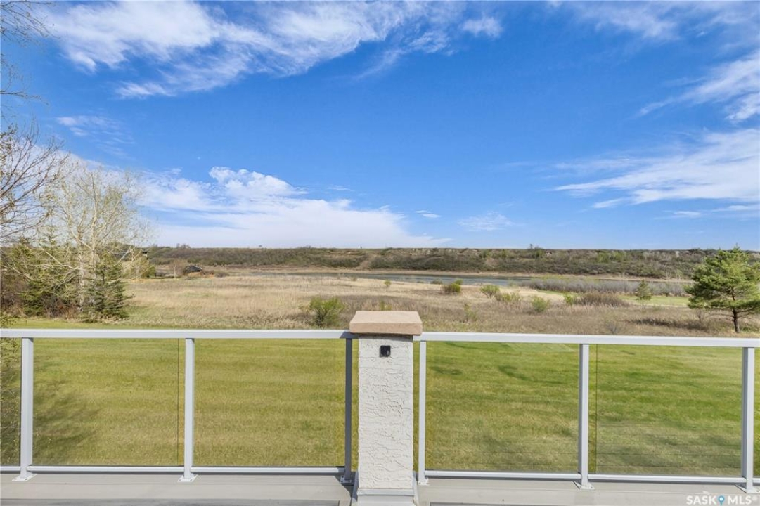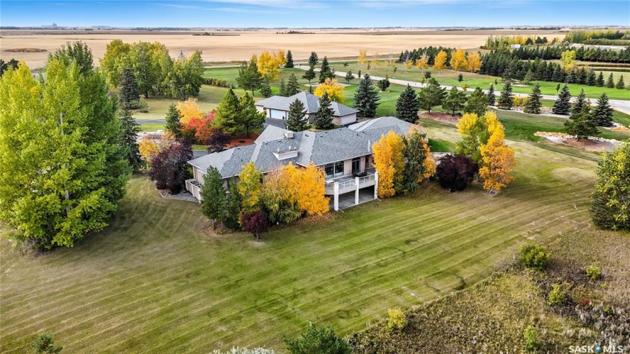 This 3640 sq ft Walkout Bungalow is situated on a 8.8 acre parcel with views of the South Saskatchewan River. With a wonderful location in an active community with rink & play center. Walking into this home, you are welcomed with double-door entry with phantom screens and a spacious foyer leading to an open floor plan with 10 ft ceilings. Great Room features a gas fireplace and custom Redl built-ins, large windows with scenic views. Custom Redl Kitchen is a perfect space with an abundance of cabinets, oversized island with seating, storage, gas cooktop, sink with garburator, granite countertops, baking counter with appliance storage, wall pantry with roll outs, Sub Zero Fridge, built in dishwasher, brand new trash compactor, built-in oven & microwave, coffee bar, dining nook with garden door to composite deck. Formal dining room with a buffet niche. Primary Bedroom is a full retreat with views of the river and access to the deck, gas fireplace with built-ins, dual walk-in closets(1 with stackable washer & dryer), a 4 piece en-suite with in-floor heat, air jet soaker tub, separate shower, dual vanity with granite top & linen closet, sitting area with direct access to basement gym and 3 piece bathroom. Den with a tray ceiling and bayed window.2-piece bathroom with custom stone countertop, laundry room with cabinets, sink, & craft/sewing desk complete the main. Walkout basement features in-floor heat, large family room with 3-way gas fireplace, garden door to covered, partially enclosed patio,games area with wet bar feature seating, fridge,dishwasher & sink. 2 large bedrooms with jack&jill 4- piece bathroom, den/craft room with closet, large mechanical/storage room with wine room. Home is wired for sound system,LED lighting up the driveway, new carpet(2023), new boiler(2023), central vac,4 furnaces & central air, window treatments, & generator for backup power. Attached 8-car heated garage, detached 12-car heated garage/workshop with hoist &cabinets &2-piece bathroom.