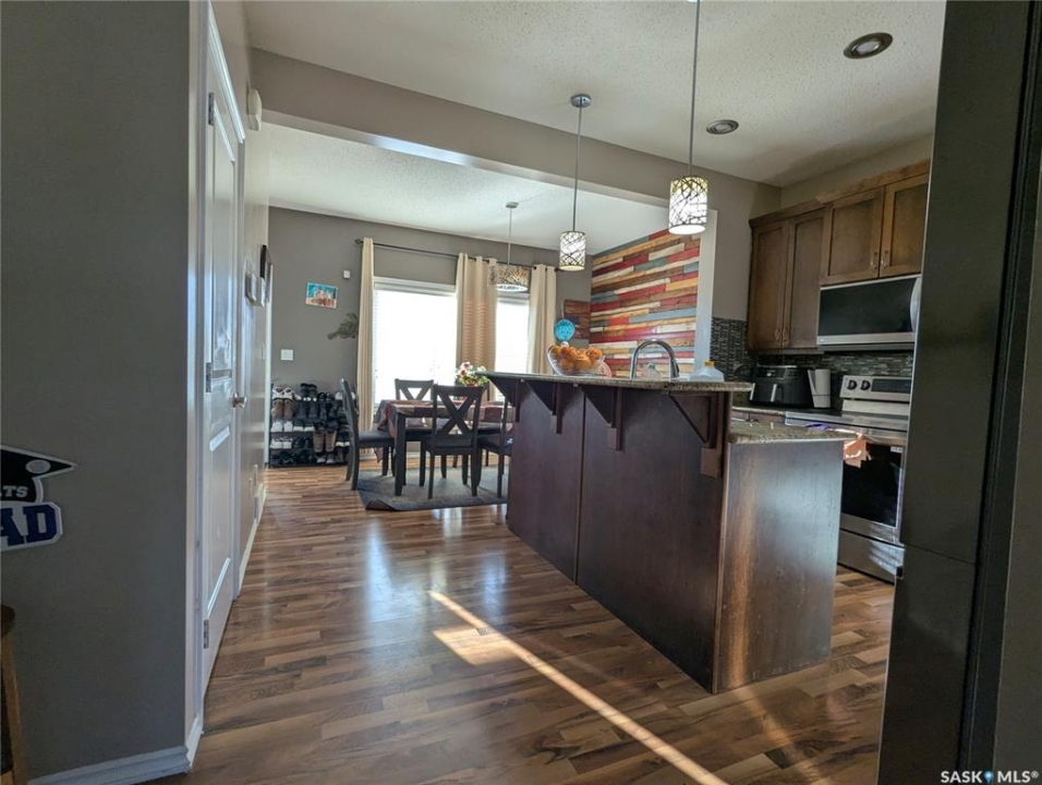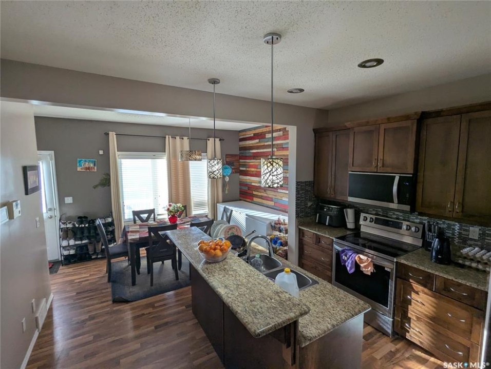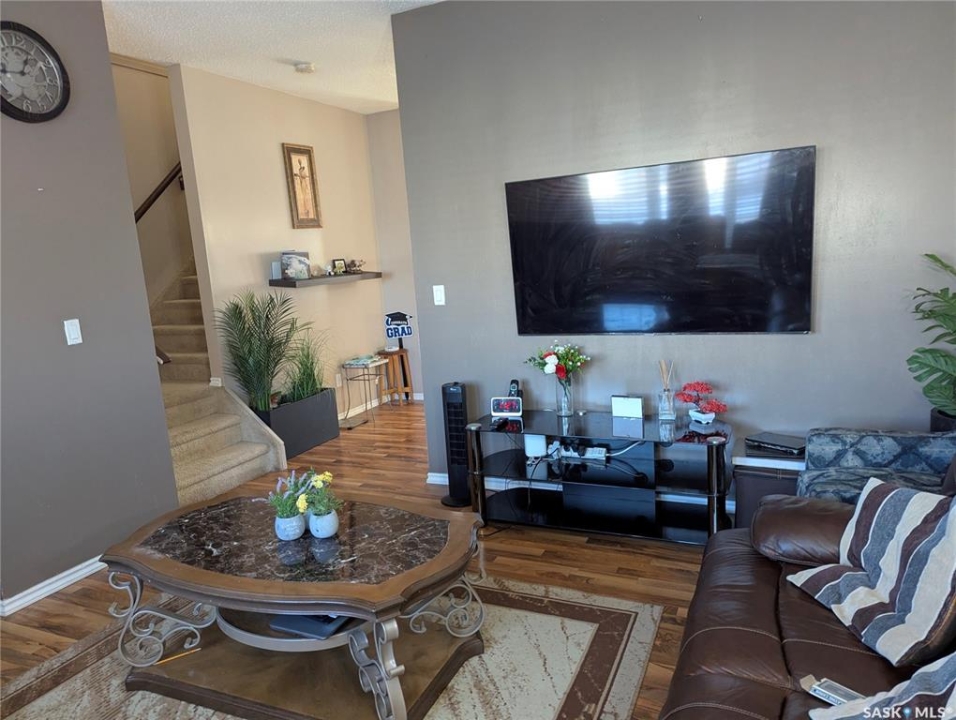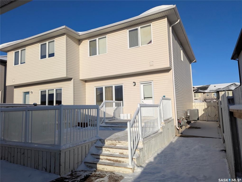 Welcome to 1,456 sq. ft. of Modern Living in Stonebridge This impeccably maintained semi-detached duplex offers the perfect blend of style, space, and convenience. Situated close to all amenities, this two-level home is move-in ready with thoughtful upgrades throughout. Main Floor Highlights: The open-concept floor plan showcases upscale laminate flooring and floods the space with natural light. The stunning kitchen is a chef's dream, featuring maple cabinets, granite countertops, an elevated eating bar with sink, corner pantry, and sleek black appliances. The sunny dining area, enhanced by abundant windows, flows seamlessly to a multi-level deck with southern exposure—ideal for entertaining or relaxing outdoors. Upper Level: Three spacious bedrooms include a master suite with a walk-in closet. Two full 4-piece bathrooms provide ample convenience for the whole family. Additional Features: Central A/C for year-round comfort Washer and dryer included Complete blind package throughout Main floor 2-piece bathroom Double detached garage with privacy fence Unfinished basement ready for your vision—or enjoy the existing 1-bedroom nanny suite/rec room with wet bar New furnace (2021) This pride-of-ownership home is waiting for you to make it yours!