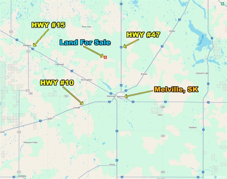 Quality Farmland Near Melville, SK! An exceptional opportunity to acquire one quarter-section (NW 36-23-7 W2) of productive farmland in the black soil zone located northwest of Melville, Saskatchewan, in the RM of Stanley #215. This offering consists of 160.51 titled acres, with 150 cultivated acres as per SAMA Field Sheets, and a soil final rating weighted average of 61.36. Saskatchewan Crop Insurance rating is “G” soil. Location & Access: The land is located 2.5 miles west of Highway 47 with a seasonal road on the north side of the land. Lease: The land is rented out for two more years, expiring at the end of 2027. Property outlines are an approximation.