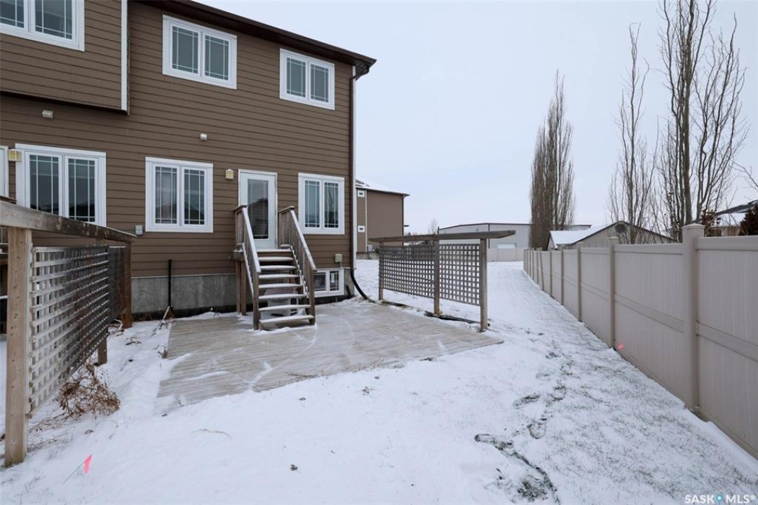 Welcome to 12 McKenzie Lane! This next to new end unit 3 bedroom 3 bathroom townhome was completed in 2018 and offers a great location in the high demand White City area with K-8 school, extensive parks, recreation and retail amenities and is less than 10 minutes to the East Regina Retail Corridor! The open plan living area on the main level is ideal for families or entertaining with the end unit have an extra window on both floors to allow extra light into the home. There is garden door from the living area to a generous ground level deck overlooking green space behind and to the side of the home. There is also a convenient 2 piece bath on the main floor and direct entry to the attached garage that is insulated and finished for those cold winter days. Step up to the second level and you will find 3 good sized bedrooms with the Primary bedroom including it's own en-suite bathroom and walk-in closet. The main 4 piece bathroom completes this level. The lower level has laundry area and an open space just waiting for your ideas. Townhomes do not come to the market often in White City. Do not wait to schedule a personal viewing of this ready to move into home.