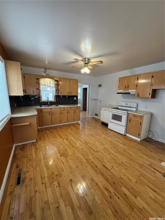 Welcome to Blaine Lake! Considered the "Gateway to the Northern Lakes" due to its proximity to fishing, hunting and camping sites, as well as its convenient location at the junction of two highways. This charming town has all essential amenities and is close to saskatoon, Warman, Martensville and other small towns for all your other needs! This home is perfect for a first time home buyer or a small family. Located on a large lot with a view of a historic grain elevator and featuring a oversized 2 car garage perfect for storing your toys, workshop, or just keeping your vehicles warm during the winter months. The home has a large deck around the house that would be perfect for enjoying the summer with your friends and family. The main floor has hardwood flooring through out with a huge bedroom and living room that can accommodate all your needs. there is a unfinished room upstairs where you can create another bedroom or additional living space. The front of the house has a sunroom with plenty of windows for you to enjoy. Basement is partially finished with plenty of potential for the new owners to create something special. if your interested in viewng book a showing with your realtor today!