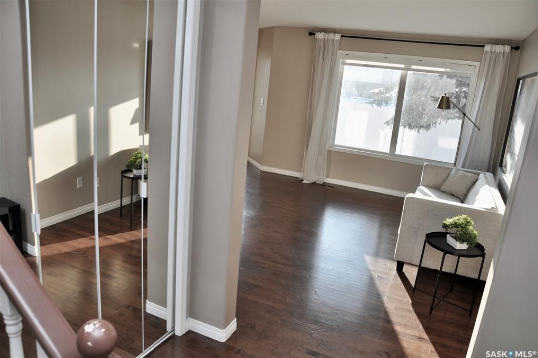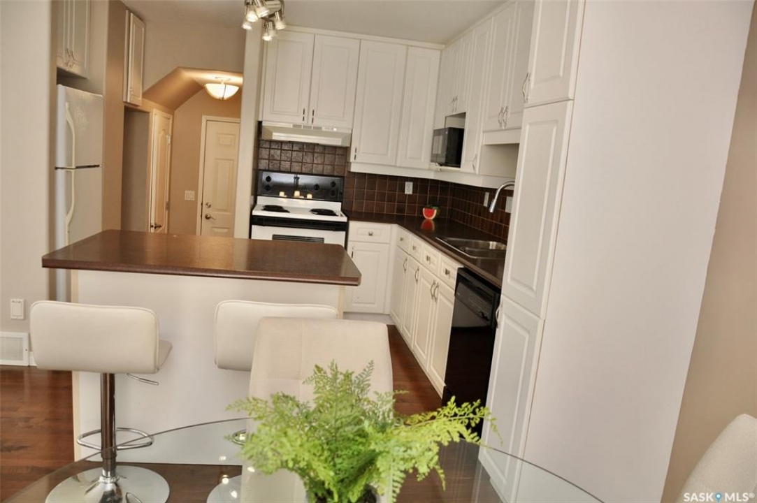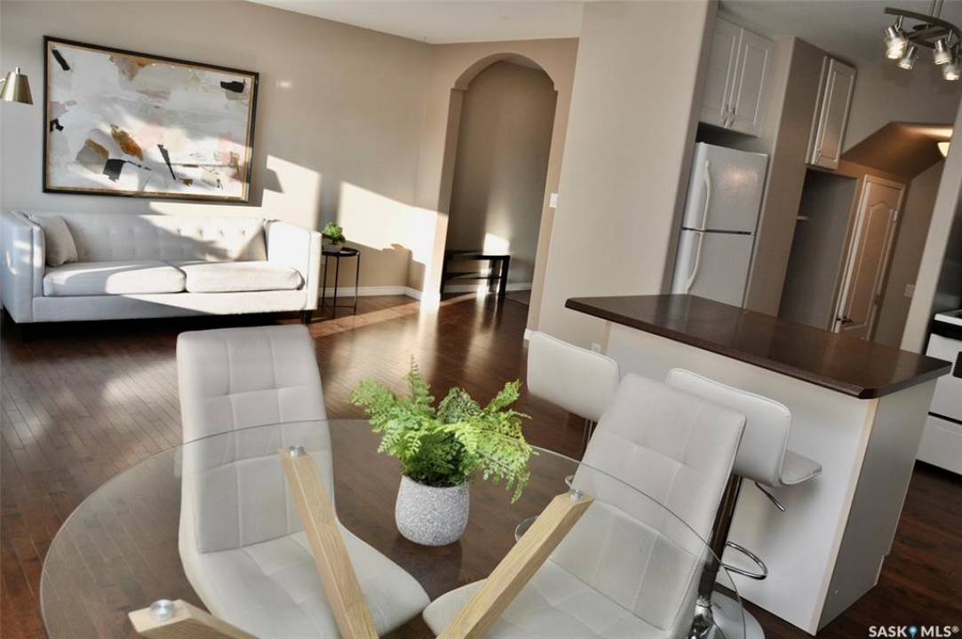 Great location in Silverspring for this 1345 sq two story townhouse with double attached garage plus bonus room. This "Crystal Springs" town home is conveniently located close to shopping and Big Box area, schools, U of S campus and close to the river valley and trails. This bright unit backs south and features hardwood flooring on the main floor, ample kitchen cabinets with Island and pantry. The upper level has three bedrooms and bonus room plus developed lower level with large open family room with wet bar and laundry storage room newer washer and dryer.. Also includes central air-conditioning and more........call you Realtor today!
