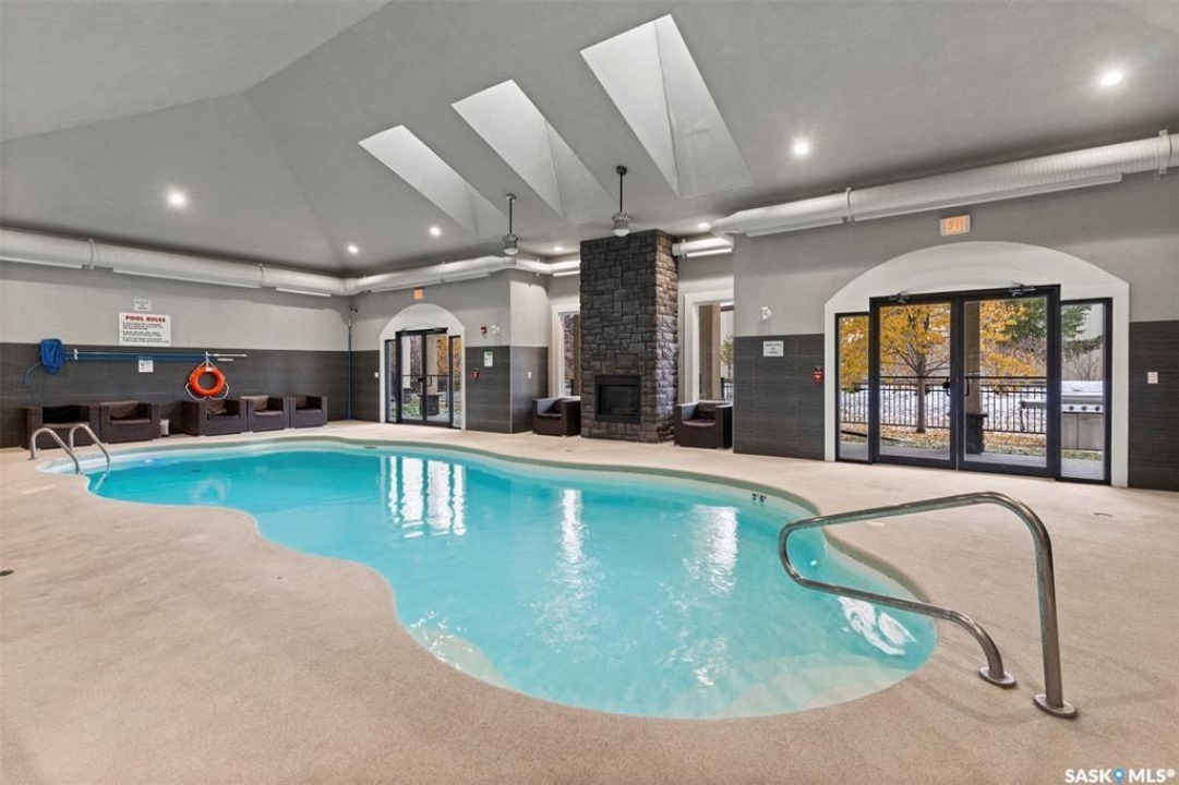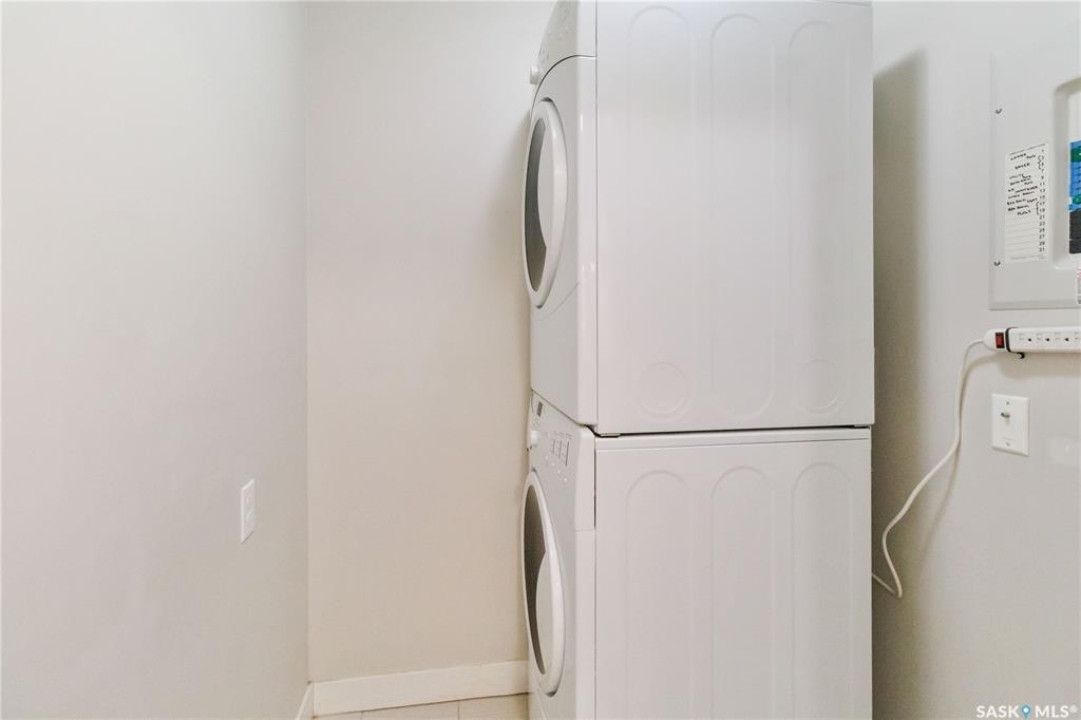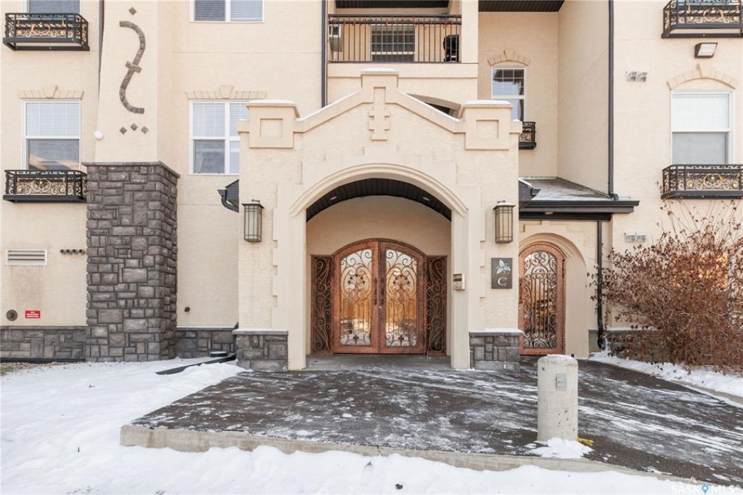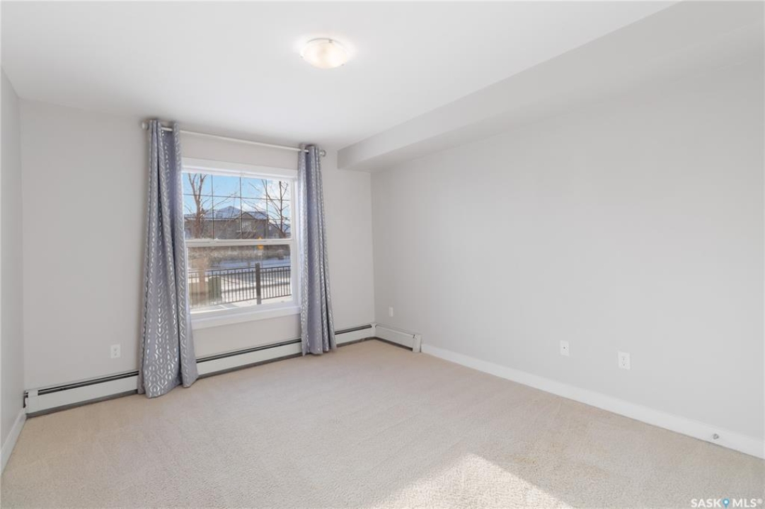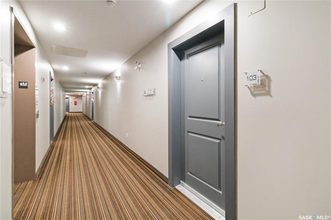 Welcome to 103C-415 Hunter Road in Stonebridge! This main floor, south facing two bed, one bath condo has everything one could need. Freshly repainted and ready for immediate possession. The condo boasts a smart layout with two bedrooms on opposite ends, a four-piece bath with a quartz countertop, and a kitchen with ample cabinet space and a functional island. The in-suite laundry room is convenient and the bedrooms features large closets. 2 parking stalls are included close to the entry. The complex is among the best in town, featuring an indoor pool and gym. It's within walking distance to many amenities and offers quick, easy access out of Stonebridge to Circle Drive. Owners are allowed to have 2 animals with board approval - smaller dogs allowed under 35 lbs allowed or two cats. Condo fees include water, insurance, heat, reserve fund, lawn care and snow removal.