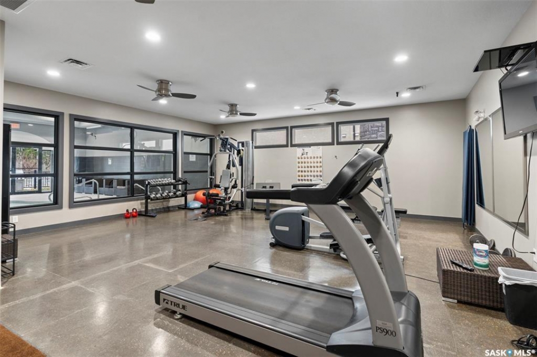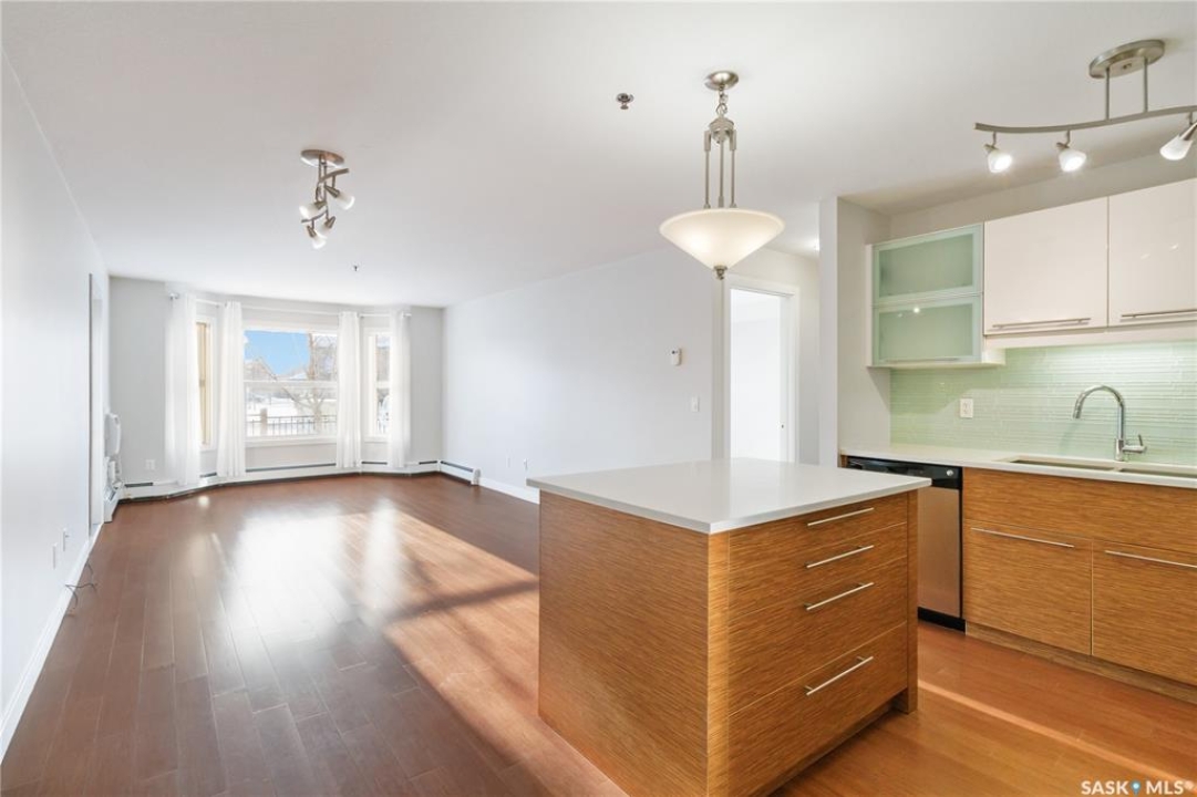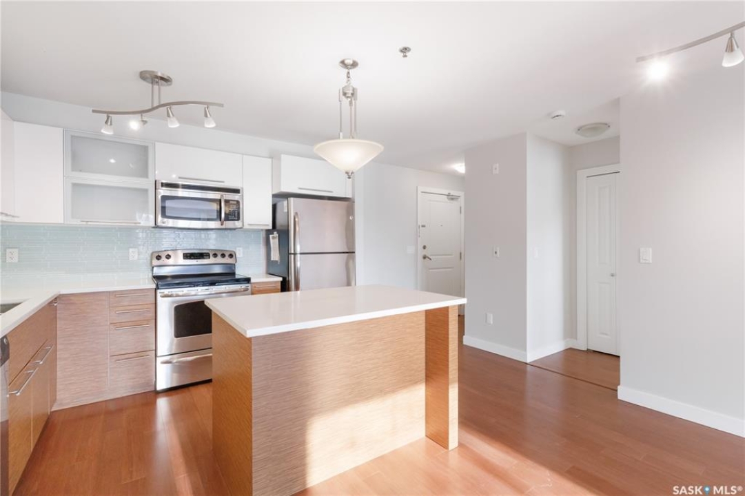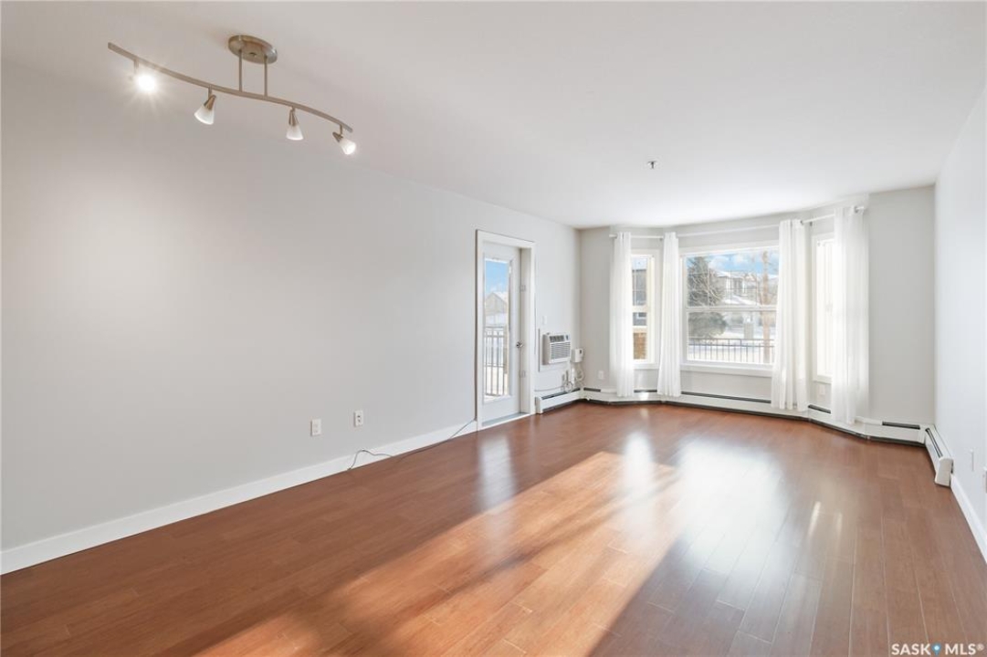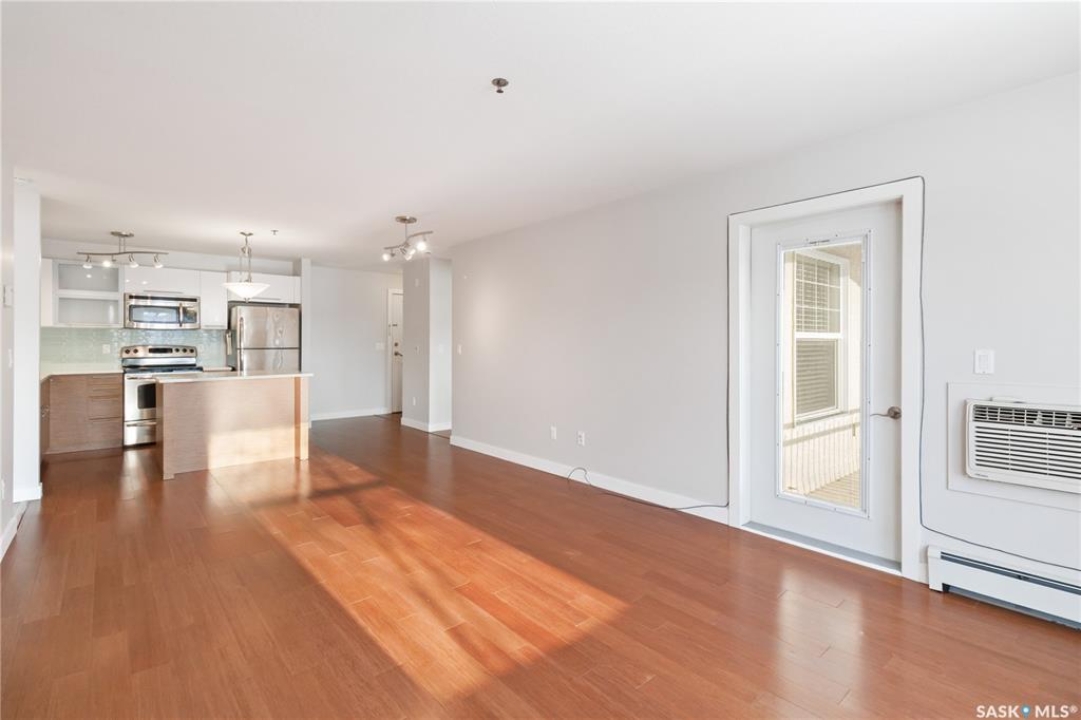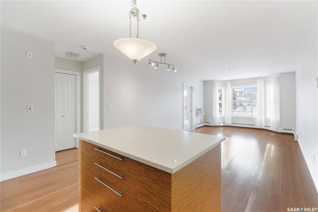 Welcome to 103C-415 Hunter Road in Stonebridge! This main floor, south facing two bed, one bath condo has everything one could need. Freshly repainted and ready for immediate possession. The condo boasts a smart layout with two bedrooms on opposite ends, a four-piece bath with a quartz countertop, and a kitchen with ample cabinet space and a functional island. The in-suite laundry room is convenient and the bedrooms features large closets. 2 parking stalls are included close to the entry. The complex is among the best in town, featuring an indoor pool and gym. It's within walking distance to many amenities and offers quick, easy access out of Stonebridge to Circle Drive. Owners are allowed to have 2 animals with board approval - smaller dogs allowed under 35 lbs allowed or two cats. Condo fees include water, insurance, heat, reserve fund, lawn care and snow removal.