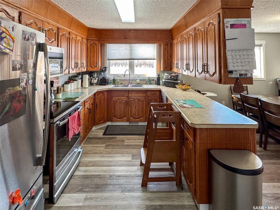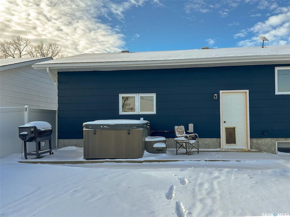 Incredible Value in Lafleche! This 1,256 sq ft bungalow offers everything you need and more for an unbeatable price. Featuring 4 bedrooms, 2 bathrooms, a spacious kitchen, main floor laundry, and a huge rec room in the fully finished basement, this home is perfect for families, retirees, or anyone seeking space and comfort. Enjoy extras like a sauna, home gym (equipment not included), and a hot tub on the patio — all with no neighbors behind you and a private backyard. The attached 2-car garage adds convenience, and appliances are included. Solidly built and well-maintained, this home is ready for its next owner. Don't miss out on this rare find in Lafleche — value like this is hard to beat!