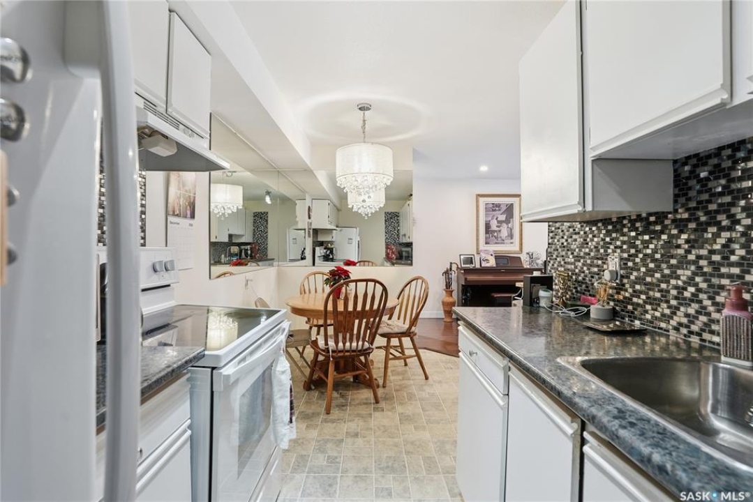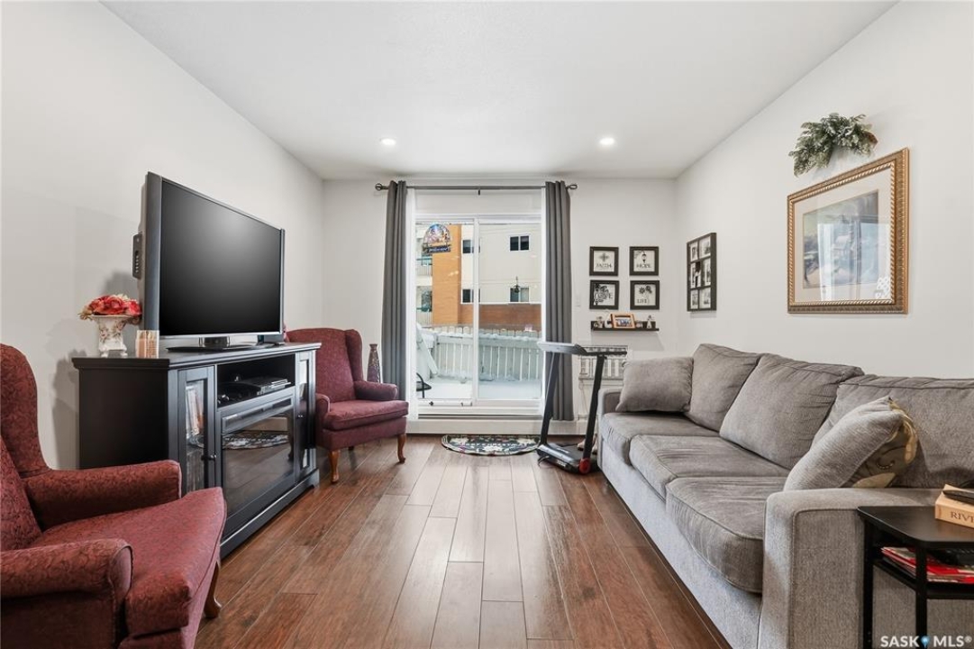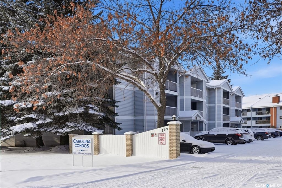 Check out this bright and affordable SOUTH-FACING 2-bedroom condo in The Carolinas—just minutes from downtown Saskatoon in desirable Lawson Heights! This upgraded, and beautifully maintained main-floor unit offers exceptional value with in-suite laundry, an exclusive electrified parking stall located right outside your private patio, and convenient enclosed deck storage. Inside, you'll love the open and functional layout, with the living room flowing seamlessly into the kitchen and dining area. The primary bedroom features a large walk-in closet, and the entire home is exceptionally well cared for. This second-owner unit is move-in ready! The location is unbeatable: steps from parks, bus routes, and every amenity you could need, including groceries, shopping, medical services, banks, schools, and more. With ample on-site guest parking—and easy street parking as well—this home is perfect whether you're starting or downsizing. The Carolinas is a well-managed and well-maintained complex with a healthy reserve fund, giving peace of mind to future owners. Come see what this wonderful unit has to offer!