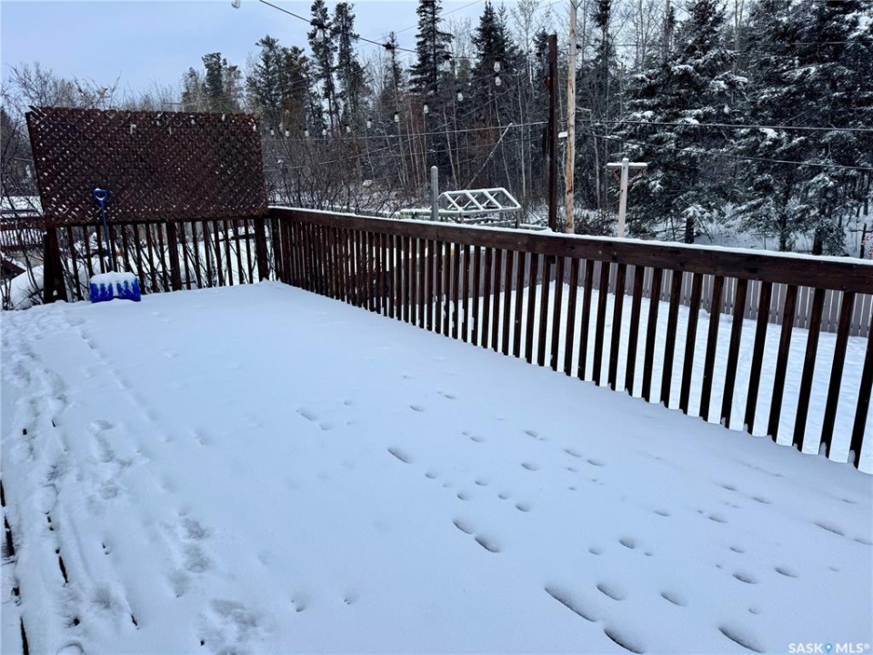 Check out this unique 2 storey home on a lovely quiet street in La Ronge! Backing onto a green space of trees, this large home is thoughtfully designed to enjoy as one family or multiple generations living together under one roof. Upstairs you find a beautiful modern eat-in kitchen with white cabinets, butcher block counters, a built in wall oven, cooktop, a large pantry, and a window to the huge living room. There are 4 bedrooms upstairs - the large master features a view of the backyard, his and hers closets, and a jack-and-jill ensuite shared with another bedroom (what a perfect set up for a nursery!). On the other side of the house, there are 2 more bedrooms and a full bathroom with a tub & shower. On the main level, there is a full laundry room and main entrance to the house with access to the oversized single car garage, and then as a huge bonus, you find a non-conforming mother-in-law suite with a kitchenette, bathroom with a shower, a large bedroom, a separate entrance, and laundry located in the garage. The house is heated with a newer natural gas furnace and you can have endless showers and baths with the natural gas on demand water heater! Outside, the fenced backyard is nicely landscaped, has a large raised back deck off the dining room, garden beds, a lovely fire pit area, and a storage shed. There is tones of value in this lovely home - don't miss out!