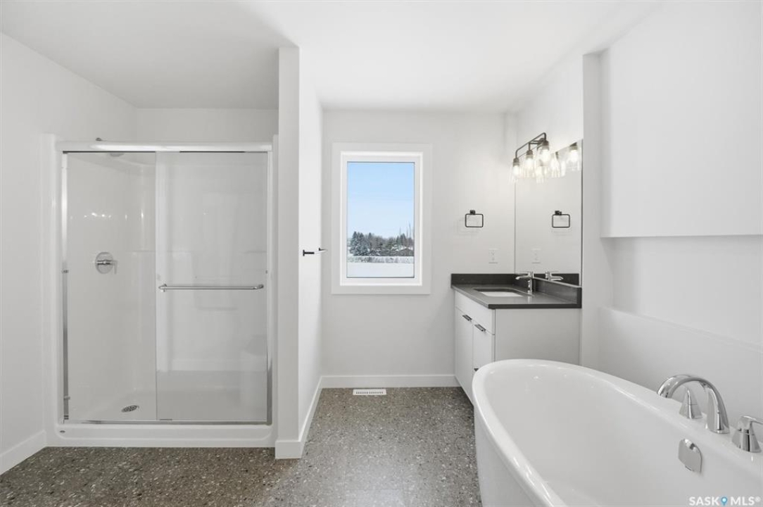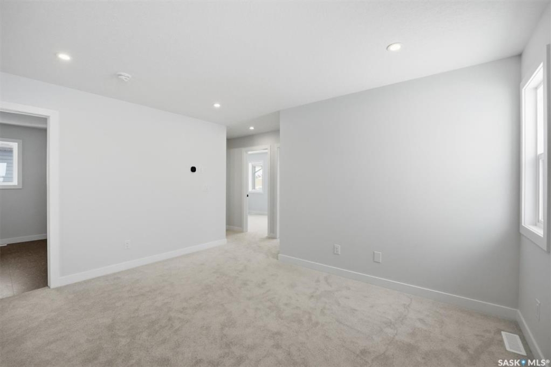 Welcome to the "Elias" model by North Ridge Development Corporation backing green space in Saskatoon's growing community of Brighton. The craftsmanship is truly evident in this well built 2237 square foot 2-Storey home that includes a side entry for future basement suite along with a unique feature, a 4th bedroom and 3-pce bath located on the main floor! The main level also includes a large kitchen with walk in pantry and island, and a good sized dining and living area. The second level has 3 bedrooms, a bonus room, a 4-piece main bathroom, 5-piece ensuite with tub and shower, and a convenient full size laundry room. This spacious floorplan is ideal for a growing family and provides the opportunity for a well designed 2-bedroom basement suite. Includes front driveway and front landscaping. Saskatchewan Home Warranty Premium Coverage Plan. GST/PST included in purchase price with any rebates to builder. *Home is now complete and ready for possession* Call to View!