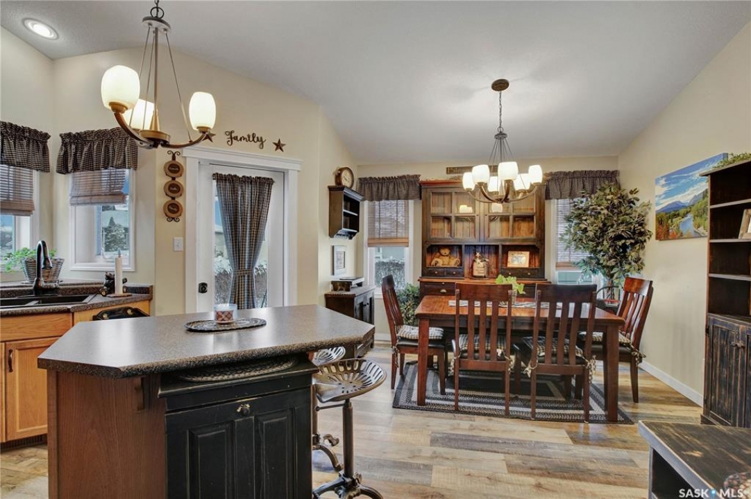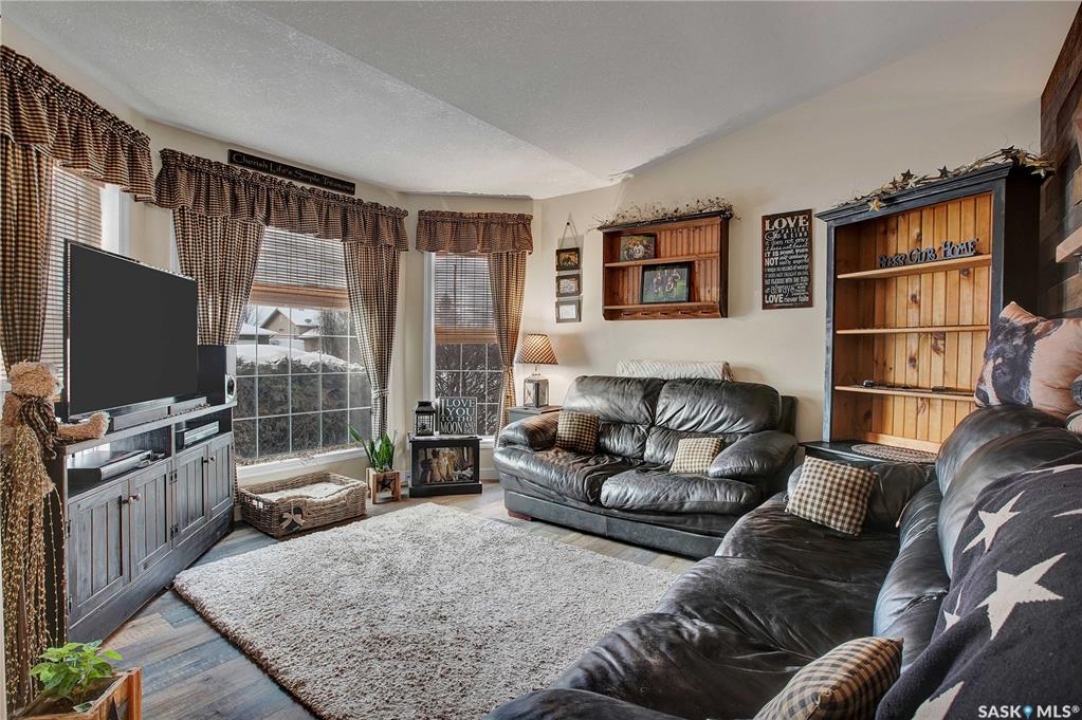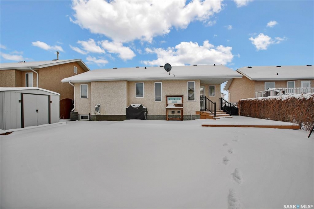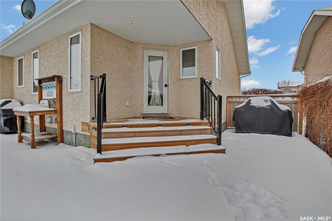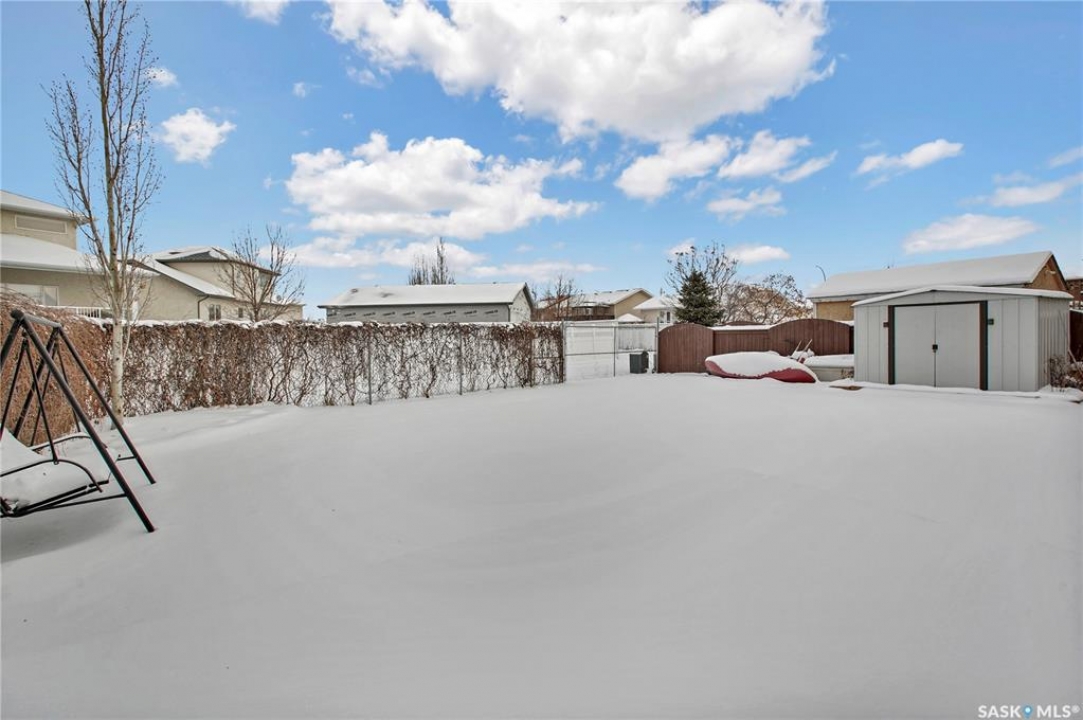 A wonderful blend of maturity, comfort, and modern updates are found in this beautifully maintained family bungalow, ideally situated in the middle of Warman. Nestled between the community's elementary and middle schools and just steps from the lakes and walking paths of Crystal Springs, this home offers exceptional convenience in a highly desired location. Inside, the south-facing living room is filled with natural light throughout the day, creating a warm and welcoming atmosphere. The kitchen and dining area overlook the expansive backyard, featuring abundant windows, alley access, and a brand-new deck—an ideal space for entertaining or relaxing outdoors. With three bedrooms and two bathrooms, the home has been thoughtfully updated throughout. The fully developed basement adds even more living space, highlighted by a stylish family room complete with custom cabinetry and a built-in natural gas fireplace. The basement can be completed with additional bedrooms and has rough-ins for a future bathroom. This is a home where pride of ownership is evident at every turn. Call your Realtor today to experience this beautiful property in person.