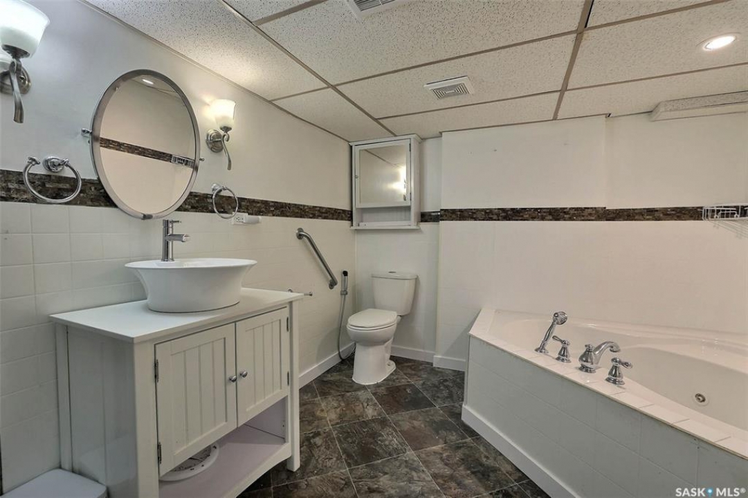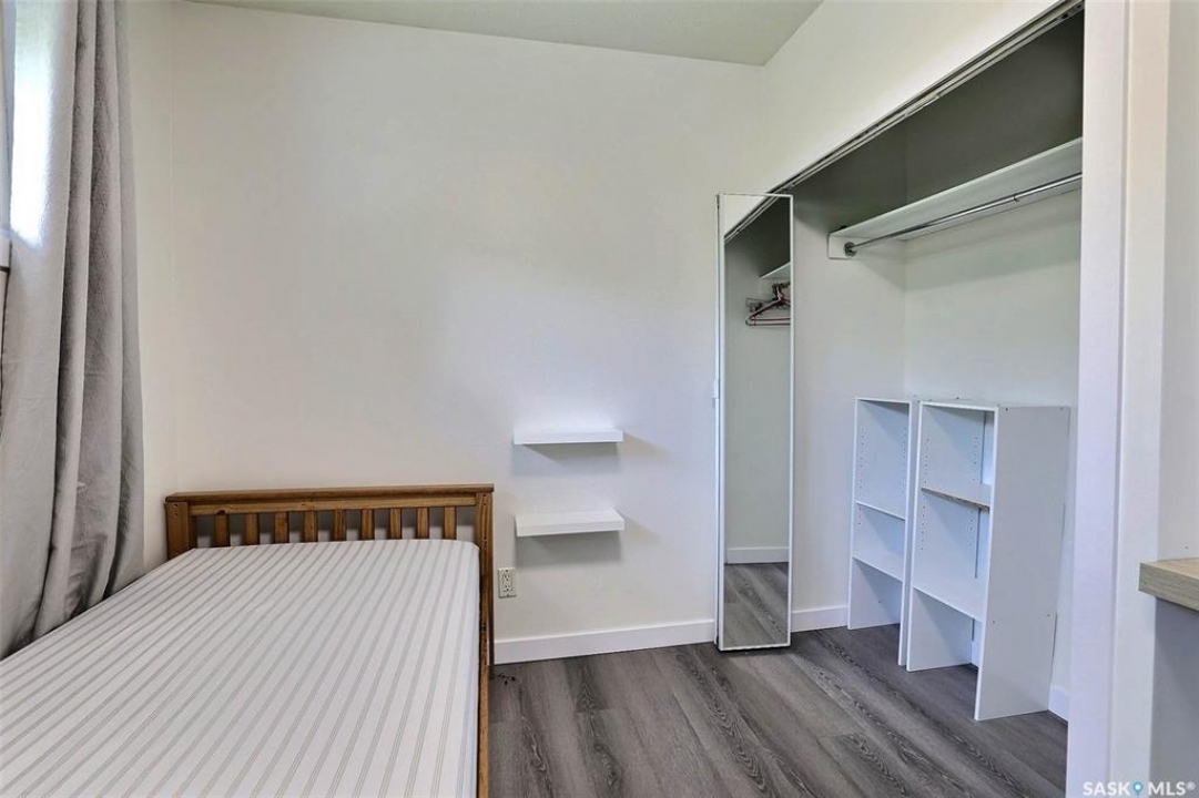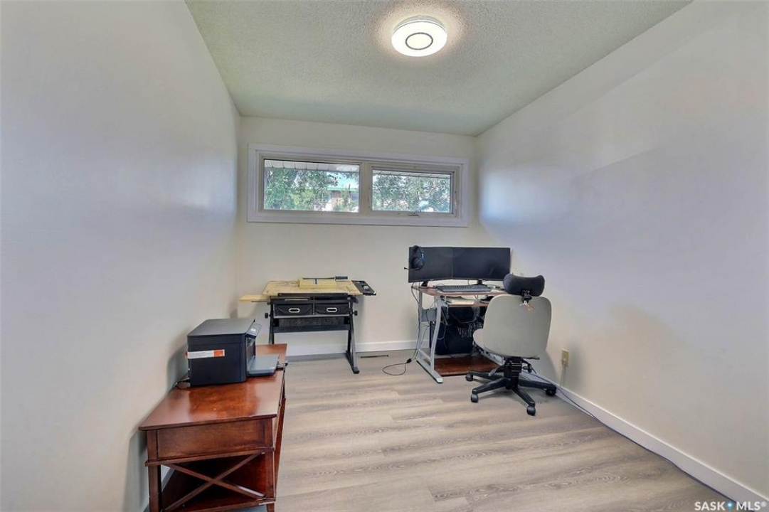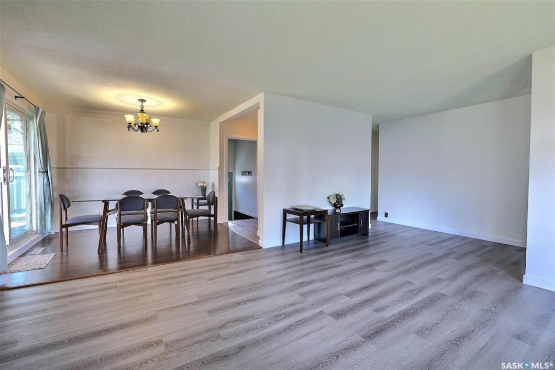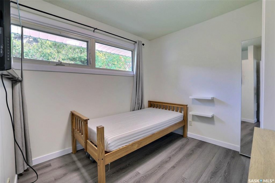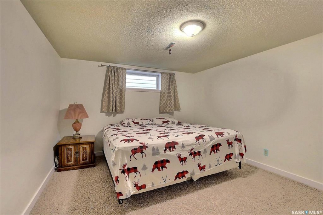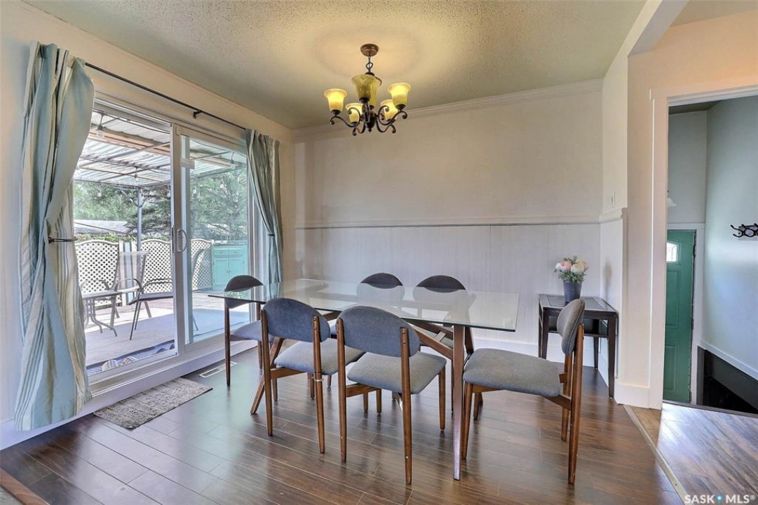 This home is located in Regina's quiet East End neighborhood of Dominion Heights — a well-established area with nearby parks, schools, amenities, and quick access to the ring road. The main floor offers a bright L-shaped living and dining room with sliding doors to the deck, plus a functional kitchen with ample storage and all appliances included. Three good-sized bedrooms (primary with windows on two sides) and a 4-piece bath complete the upstairs. The fully finished basement includes a spacious rec room with electric fireplace (projector and screen negotiable), a large 4th bedroom, den, and a 4-piece bath with corner jacuzzi tub. A separate storage room and laundry/utility room (upright freezer included) add convenience. Outside features a large fully fenced corner lot with numerous fruit trees, large garden area, two sheds, RV parking, and a 24x24 insulated and heated garage. Additional features: Radon mitigation system - a proactive upgrade for health and safety! High-efficiency furnace, central air, owned water heater (new October 2025) & water softener, central vacuum. NOTE: Living room TV and TV unit included and will stay in the home unless buyer requests it to be moved.