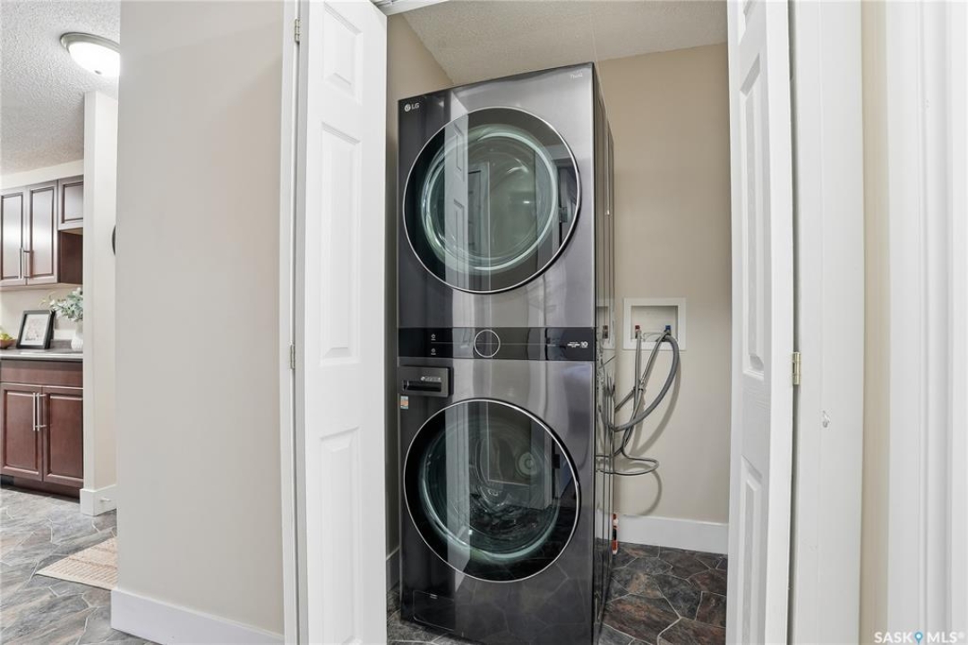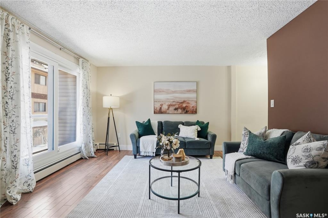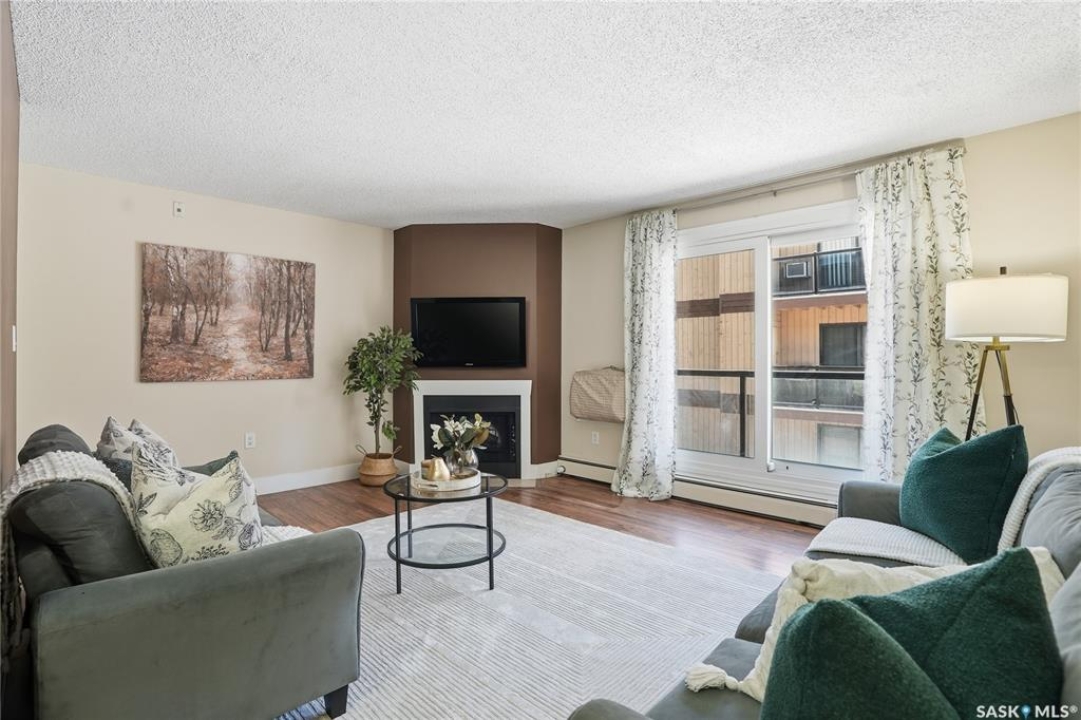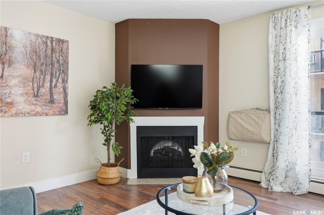 Welcome to #15-274 Pinehouse Drive in Lawson Heights, Saskatoon. This charming and beautifully updated 1-bedroom condo in Lawson Heights, perfectly positioned just steps from the river and the Meewasin trails has it all. Whether you're a first-time buyer, downsizing, or looking for a lifestyle upgrade, this bright and inviting home checks all the boxes. Inside, you'll find a spacious living room featuring a cozy electric fireplace—the perfect spot to unwind after a walk along the river. A new bedroom window and sliding patio door fill the space with natural light. The patio doors lead out to an East-facing covered balcony, ideal for morning coffee or quiet evenings outdoors. The sleek galley kitchen offers extended cabinetry, ample counter space, a brand new fridge and stove, and a handy hood fan. The home continues to provide with an updated four-piece bathroom, a new washer and dryer, and a linen closet for extra storage. Stay comfortable year-round with a newer wall air conditioning unit. This pet-friendly building (with restrictions) includes one electrified parking stall, and you'll love being close to grocery stores, shops, and everyday amenities. If you've been waiting for the perfect blend of comfort, convenience, and location—this is it.