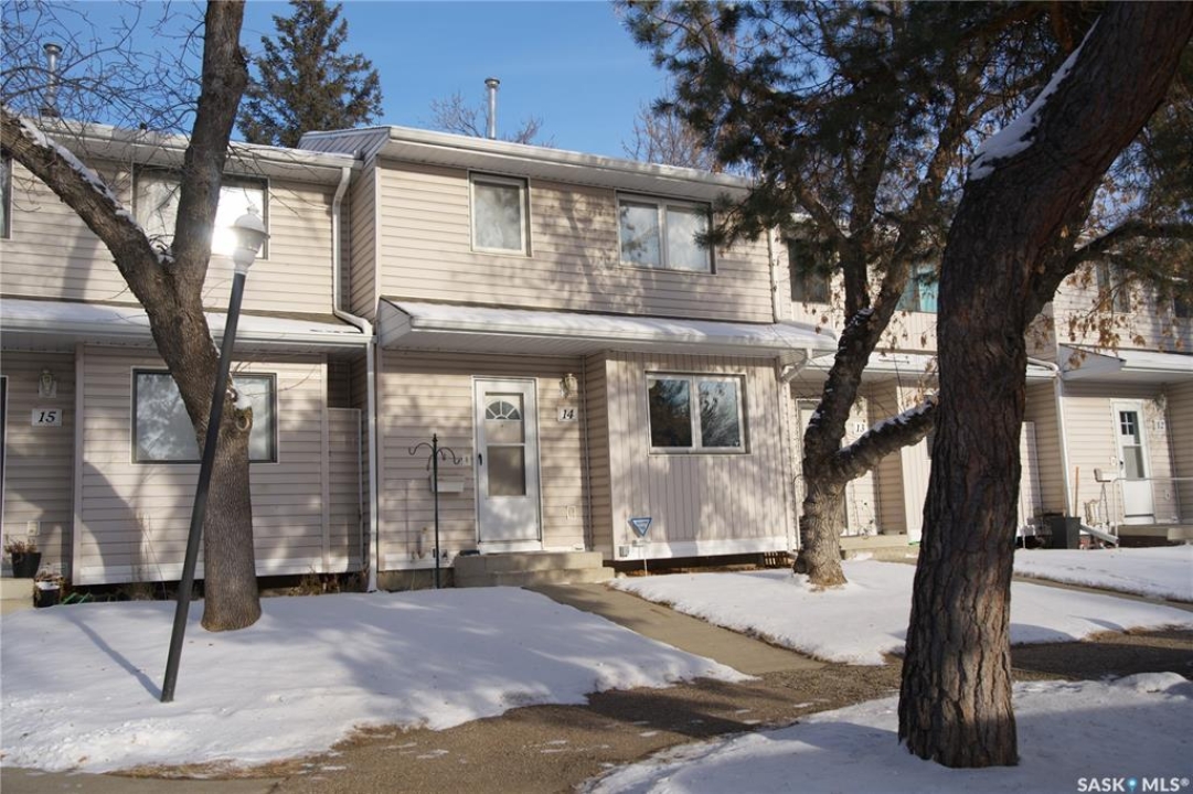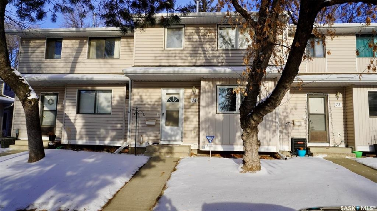 Welcome to #14 – 330 Haight Crescent in Wildwood, a 3-bedroom, 2-bath townhouse offering exceptional value in one of Saskatoon's most convenient and family-friendly neighbourhoods. This home features 1,017 sq. ft. of living space plus a fully developed basement, providing comfort, functionality, and room to grow. The main floor includes a fully functional kitchen, a bright dining area, a large living room with French doors leading to the private yard. There is also an 2-piece bath on the main. Upstairs, you'll find three generous bedrooms with carpet and a full bathroom. The basement offers a cozy family room with an extra area that can be used as a games room, as well as a laundry/utility room with ample storage. Outside, enjoy your private deck and green space, along with an electrified parking stall for added convenience. Situated in a quiet, well-managed complex on a peaceful crescent, this townhouse provides low-maintenance living close to parks, schools, shopping, and all amenities. Whether you're a first-time buyer, downsizing, or looking for an excellent investment, this home truly has it all. Don't miss your chance—book your private viewing today or contact your REALTOR � for more details.