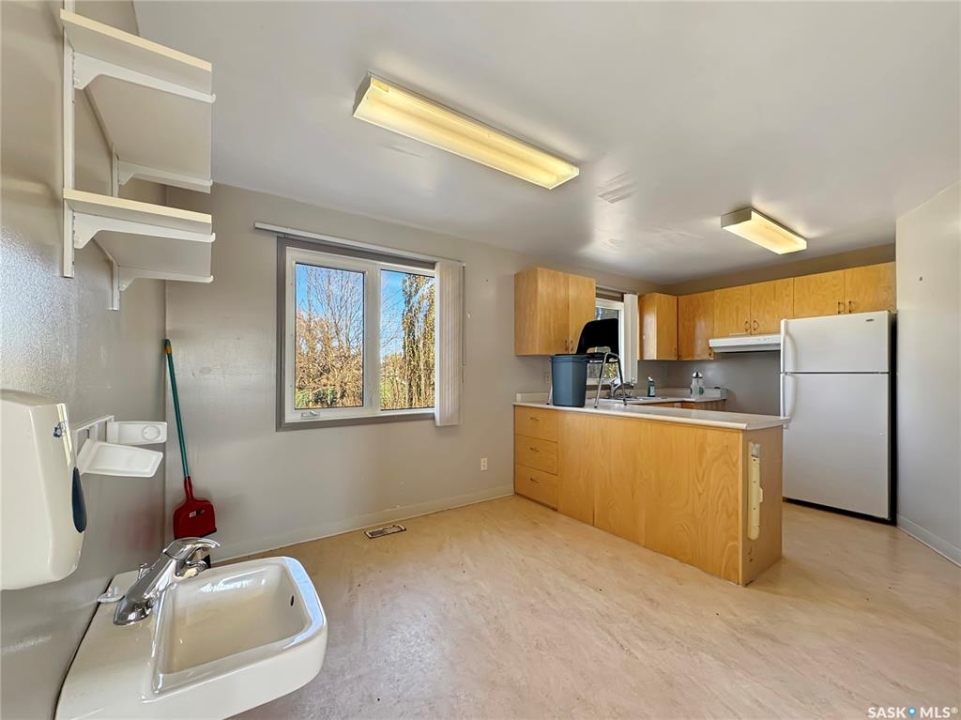 Located on the quiet outskirts of Cando, just 35 minutes from North Battleford, this versatile bungalow offers a rare opportunity to own a property with both residential and business appeal. Previously converted and operated as a daycare, the home is fully equipped to continue as a business or be easily transformed back into a private residence. Set on a fully fenced, mature lot with tasteful landscaping and established trees, the property enjoys exceptional privacy with no neighboring homes and open field views on one side. Conveniently situated kitty-corner to the local school, the location is ideal for families or childcare operations. The main floor features PVC windows throughout, a double driveway, one bedroom, and two spacious living rooms—one of which could be converted back into additional bedrooms. A fire suppression system is already in place, meeting daycare operational requirements. The partially developed basement provides ample storage space and added flexibility. Whether you're looking for a turn-key opportunity or a home with room to customize, this property offers outstanding potential in a peaceful small-town setting. Call today to schedule your private tour.