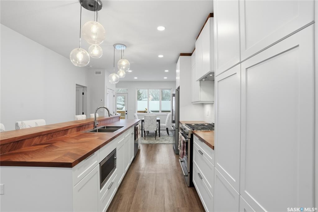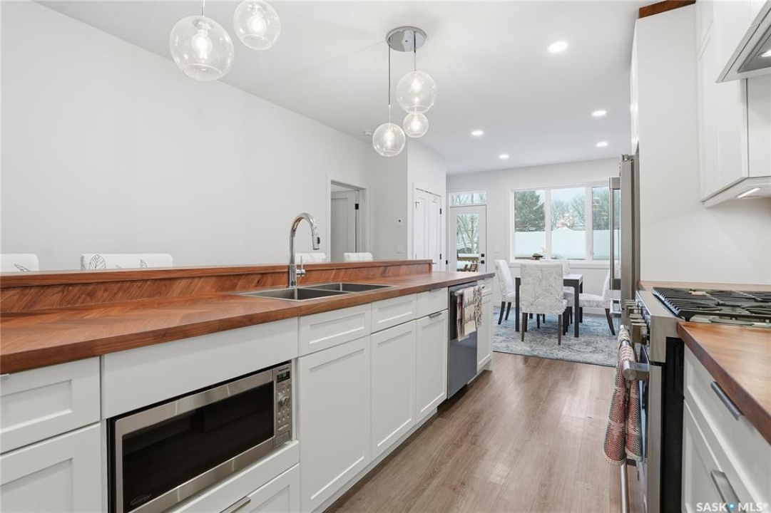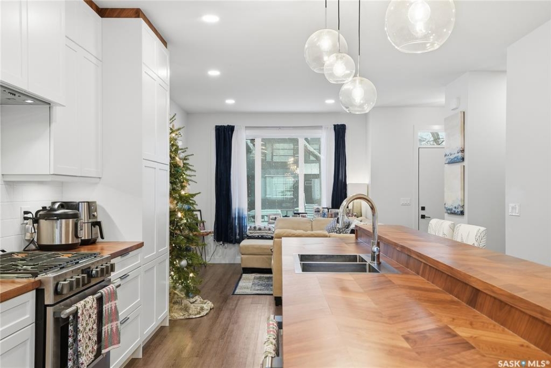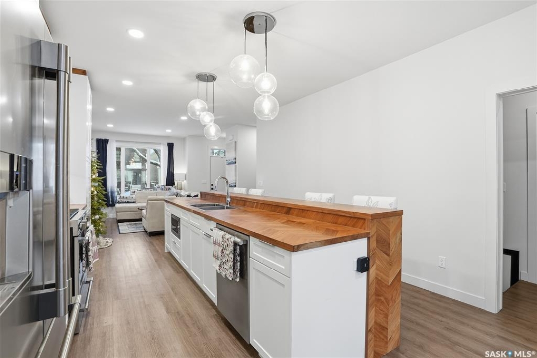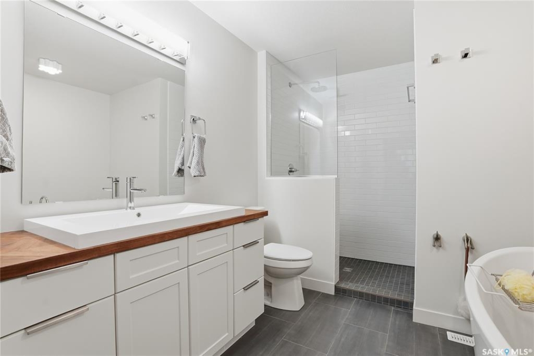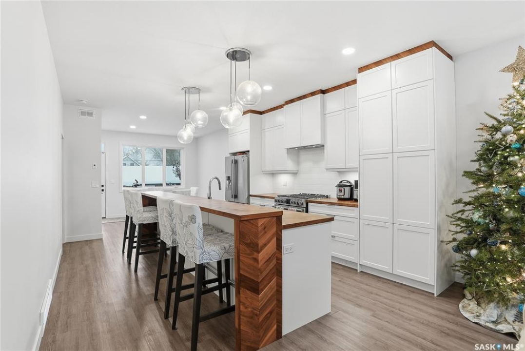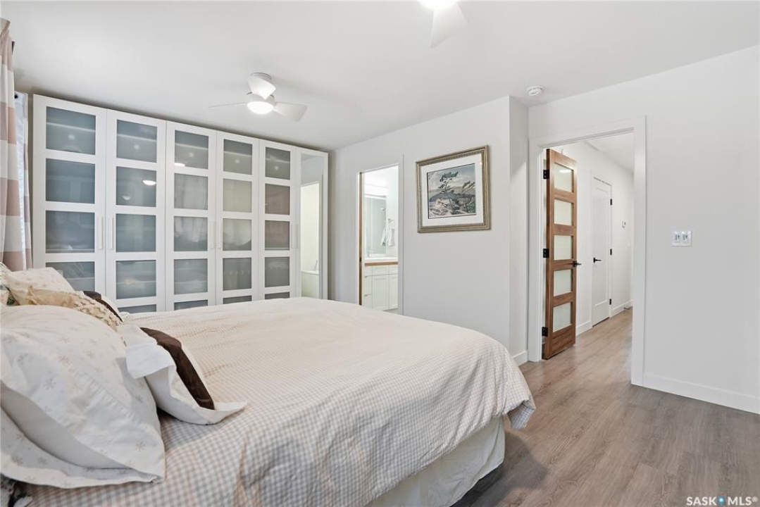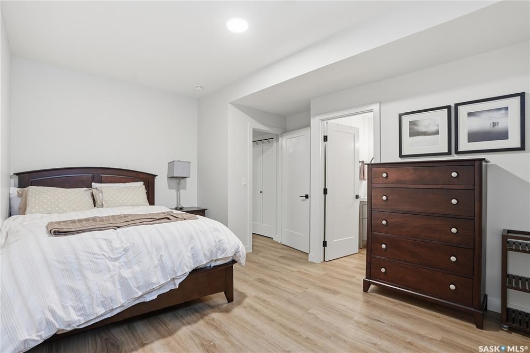 Welcome to this beautifully crafted infill in the heart of Haultain—offering a rare layout with two primary bedrooms, each featuring its own private ensuite and oversized walk-in closet. Thoughtfully designed for modern living, this home blends luxury, functionality, and flexibility in one of Saskatoon's most desired central neighbourhoods. The main floor showcases a chef-inspired kitchen with high-end finishes, sleek cabinetry, a large island, and premium appliances—perfect for cooking, hosting, and everyday convenience. The open living and dining areas are bright and inviting, creating an ideal space for relaxing or entertaining. Downstairs, the fully finished basement provides even more versatility with a spacious family room and an additional bedroom complete with its own ensuite. The lower level is also roughed in for a legal suite, offering excellent potential for rental income, multi-generational living, or future investment opportunities. Located in Haultain, you'll enjoy easy access to Broadway, 8th Street amenities, schools, parks, and transit—while still being tucked into a quiet, mature community. This exceptional property combines style, comfort, and long-term flexibility. A perfect fit for those seeking something truly unique.