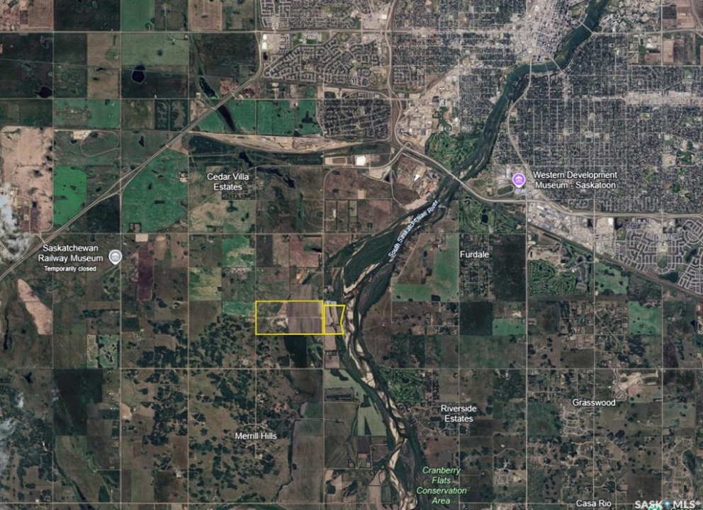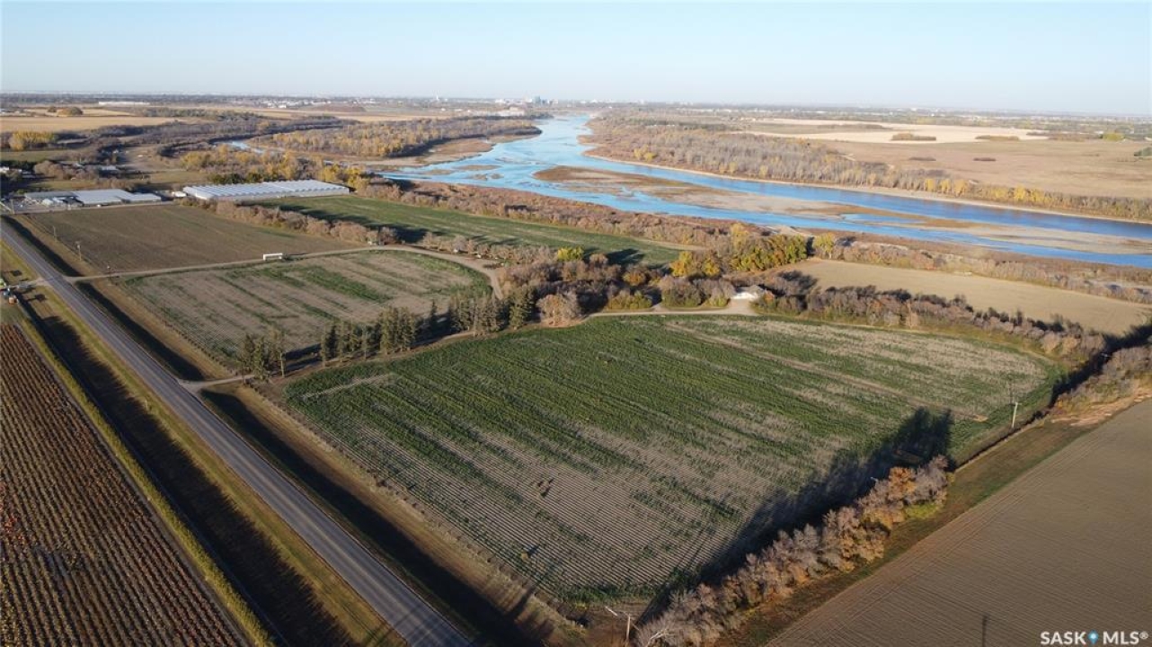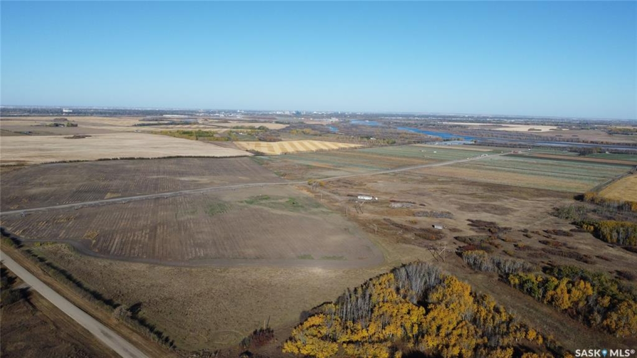 A rare paved-frontage development canvas just 2 miles south of Saskatoon in the RM of Corman Park. Five contiguous parcels totaling 395.07 titled acres on Valley Road pavement with commanding downtown skyline, 2,300 Feet of river frontage, river-valley views and a quick drive to Saskatoon International Airport. Access: Direct paved Valley Road frontage All season great access, premium buyer appeal, 4,900 Feet of pavement frontage. Location: 2,300 Feet of river frontage. Views: Elevated benches deliver city skyline + river-valley sightlines Zoning: AR1 Agricultural Residential 5 parcels / 395 acres Irrigation: 286 irrigated acres 1 pivot, 2 Linear and some underground irrigation. Utilities: Large powerline corridor on site Airport Proximity: Short, efficient drive to YXE Legals: Nw & Ne 2-36-6 w3, Nw 1-36-6 w3 Mineral rights included with Nw 1-36-6 w3 (except coal)