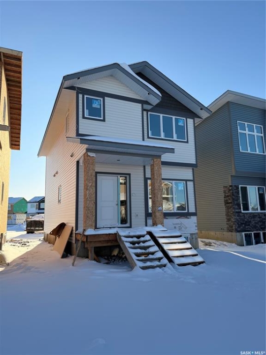 Brand New Two-Storey in Lake Vista, Martensville! Welcome to modern living in Lake Vista—Martensville's newest and most sought-after community! This brand new 1,451 sq. ft. two-storey home blends fresh, airy design with smart functionality, all just steps from scenic ponds, parks, and schools. Enjoy peace of mind with a New Home Warranty and move-in readiness in just 8-9 weeks! Features You'll Love: Bright, open-concept main floor with modern finishes Large kitchen with quartz countertops, tiled backsplash, stainless steel appliance package, oversized island & walk-in pantry 3 bedrooms upstairs, including a spacious primary suite with 3-piece ensuite and walk-in closet Convenient 2nd-floor laundry (washer & dryer included!) Stylish tile flooring in all bathrooms 3 bathrooms total throughout the home Exterior & Lot Perks: Striking curb appeal with upgraded siding, trim, and stonework Double concrete parking pad at the back with paved alley access Mudroom entry from the backyard, prepped for a future double detached garage Corner lot for extra space and light This home offers unmatched value in a prime location—perfect for families or first-time buyers looking for quality, convenience, and style. Don't miss your chance to own in Lake Vista—contact your REALTOR � today to book a private tour!