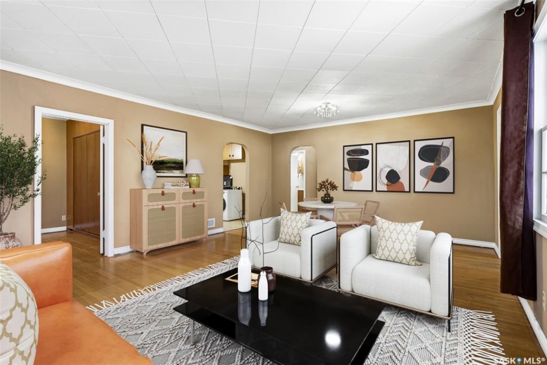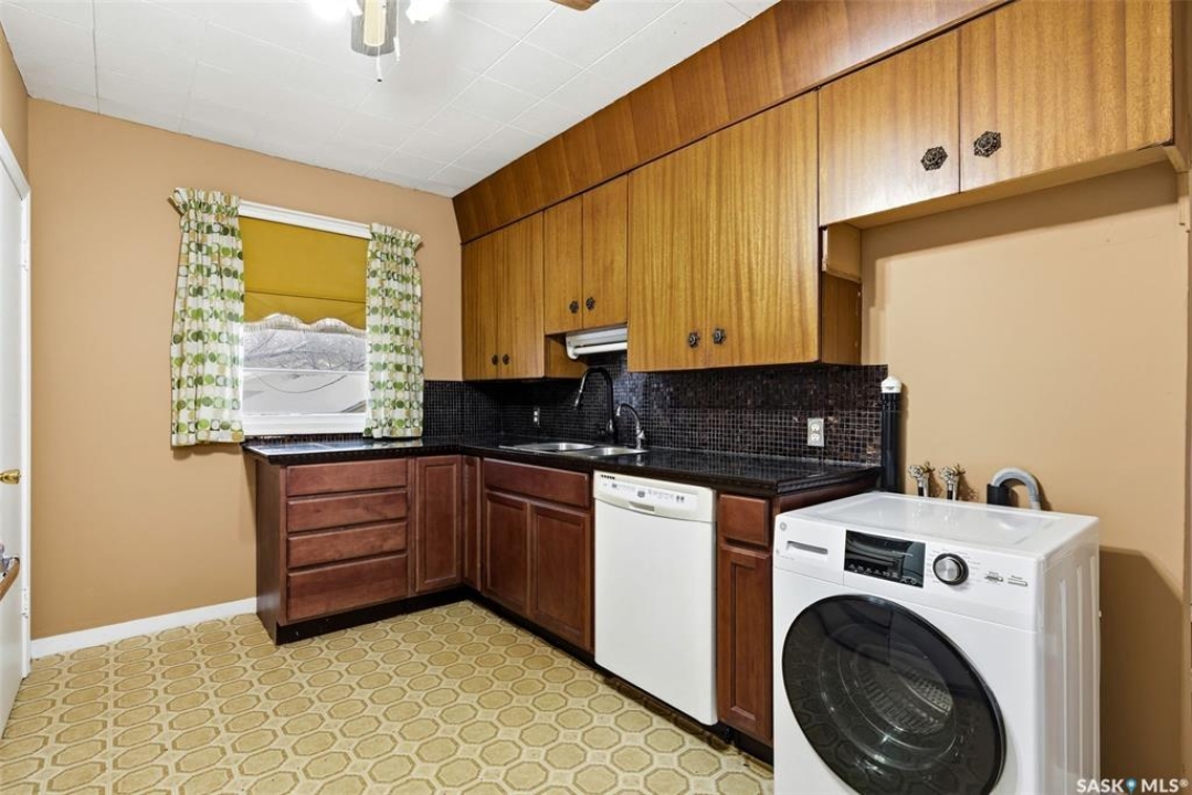 Welcome home to 940 Elphinstone Street, centrally located for added convenience to zip to any quadrant of Regina SK! This location is walkable, driveable - yes, this is a snow route so you will benefit from the City of Regina performing snow maintenance on this street plus there is public transit nearby if you want someone else to drive! This fully developed 3 bedroom & 2 bathroom bungalow feels super spacious from the moment you walk through the front door! With a main floor footprint of over 1000SQFT the roomy living room can accommodate a multitude of design layouts including shared space with a dining room, as desired. Steps into a kitchen with ample cabinetry space, room to accommodate a wash/dryer combo unit & views of the backyard, plus the rear access providing a direct entry to the basement area. There are three good sized bedrooms & a full bathroom that work well to complete the main floor. Downstairs offers a vintage vibe with a wet bar area w/built in stove top & island sitting area hugging the rec room. Used as a bedroom (window may not meet current egress standards) the room is an amazing size with a huge dual wide closet. The 3PCE bathroom features a walk-in tiled shower, and the laundry room (washer/dryer included) is a great plus giving the basement extra storage space + second laundry as desired. This home is sitting on a 4997SQFT lot size that accommodates a single detached garage (used for storage at the moment). If you are a savvy homebuyer, investor or someone who is looking for that special home to bring their creative dreams to life, this is the home!