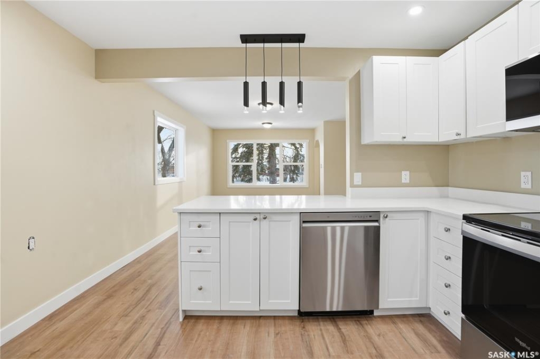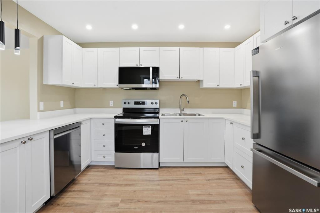 Welcome to this professionally remodeled 3-bedroom plus den, 2-bathroom home, completed with city permits—truly move-in ready with nothing left to do but unpack. Ideally located on Dewdney Avenue, directly across from Luther College and within close proximity to parks, schools, and amenities, this home offers outstanding convenience and lifestyle appeal. The open-concept main floor showcases neutral, modern paint tones and durable vinyl plank flooring throughout. The bright kitchen features ample cabinetry, an eat-up island, and a brand-new stainless steel appliance package, making it perfect for both everyday living and entertaining. The main floor also offers spacious bedrooms and a fully renovated 4-piece bathroom, professionally redone right back to the studs. The fully developed basement is bright and inviting, featuring a large family room, 3-piece bathroom with a glass shower, a good-sized bedroom, and a den ideal for a home office or additional bedroom. A large utility room provides laundry facilities and plenty of storage space. Major upgrades and improvements include: New tiple pane PVC windows, exterior doors, and siding with added insulation, front steps with railing. Sewer line replaced with backflow valve, Egress-sized basement bedroom windows. New high-efficiency furnace, washer & dryer. Complete main-floor renovation including doors, trim, lighting, Decora switches, flooring, paint, appliances, and fixtures. Situated on a large lot with alley access, the property offers ample space for a future garage. The fully fenced yard is perfect for children and pets. Centrally located with easy access to downtown, this home is an excellent opportunity for buyers seeking a turnkey property in a desirable area. Don't miss out on this one, contact your agent today to book a showing!