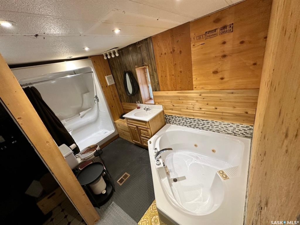 Welcome to the Salmond acreage. Located south of the town of Hudson Bay, Sk the property is just over 22 acres in size. On the outside you have a super sized heated shop, large enough for a big rig, or a few vehicles. Shop is heated with propane overhead heater. Off the shop are two large unheated but wired storage/barn additions. Also in the yard is a building previously used as a barn. Several other buildings for storage. Yard is large enough to turn a logging trailer/truck around in. Screen deck helps keep the bugs at bay while still allowing you to enjoy the outdoors anytime. Upon entering the home you find yourself in a good sized mudroom with plenty of room for boots, coats, book bags etc. In total there are 5 bedrooms and 2 full bathrooms. One bathroom features a claw foot tub, the other a corner jet tub and both have separate showers. 2 of the bedrooms feature vaulted ceilings. There is both a living room and family room. Home is heated using propane and has wood heat as a second source. Outside there is a newer 250 foot deep well and a second water source (dugout) Yard has invisa fencing for the pets. 2 water bowls, corrals, rock garden (4 ponds and a waterfall), space for garden, grain bin, security system.... all this with a long driveway up to the main highway that offers great year round access. Call or text to setup a showing!!