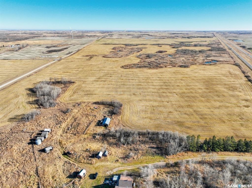 Easily accessible yard site and crop land for sale along the north and south side of HWY #1 in the Rm of Martin.397 acres soil class G & F- approximately 230-250 cultivated acres, yard site with well lagoon, 80x23 barn with loft, 40x27 shed with concrete floor and 40x18 shed with 4 garage bayable doors. 1915 1.5 story home with approximately 1216 sq ft 3 beds and 1 bath and veranda. Not to mention oodles of single garage style sheds along a healthy shelter belt boasting cherry and apple trees. 30 ft dugout on south side access road! Steal away this deal today and contact your agent today!
