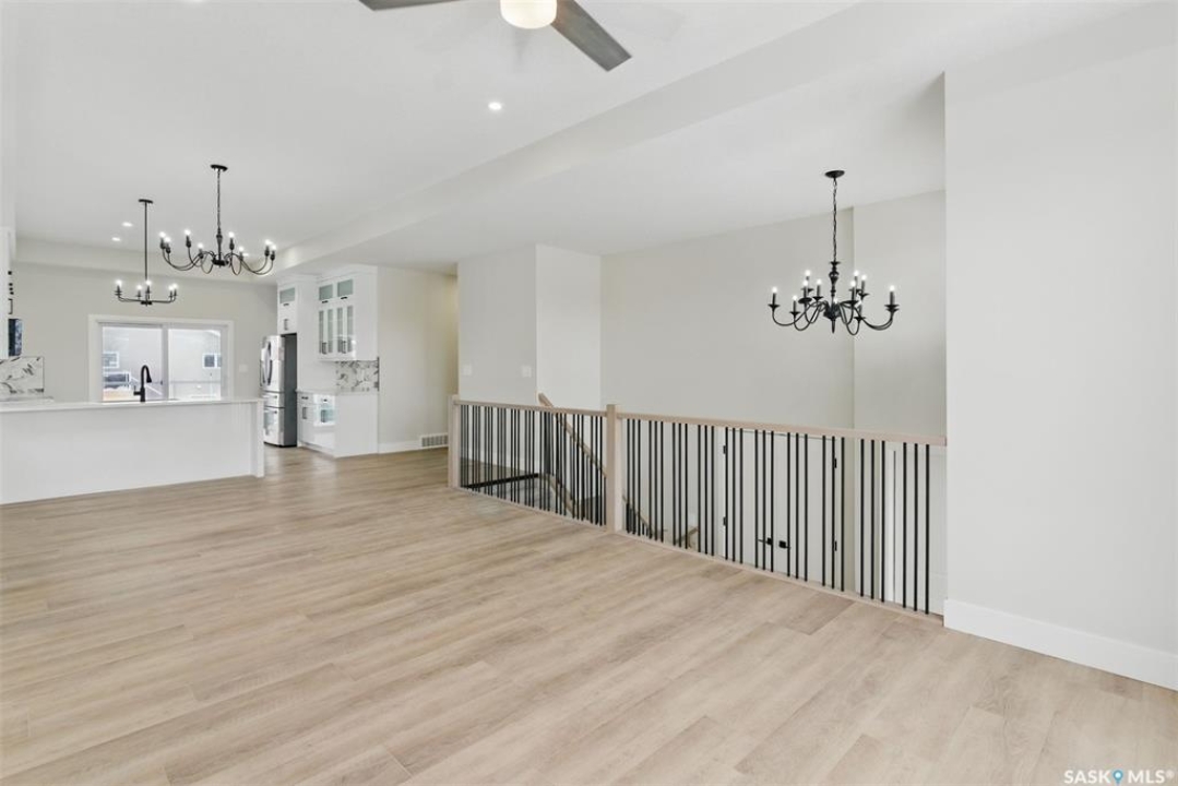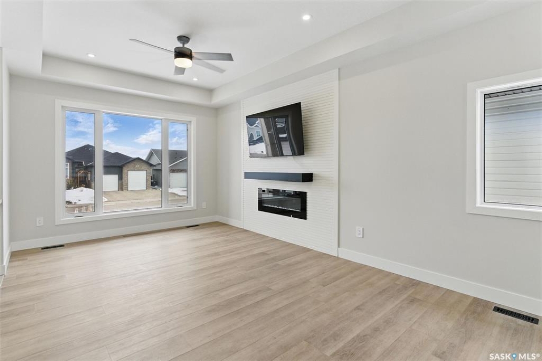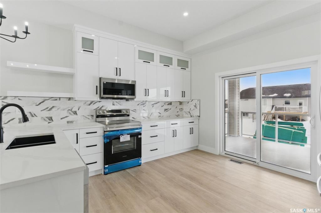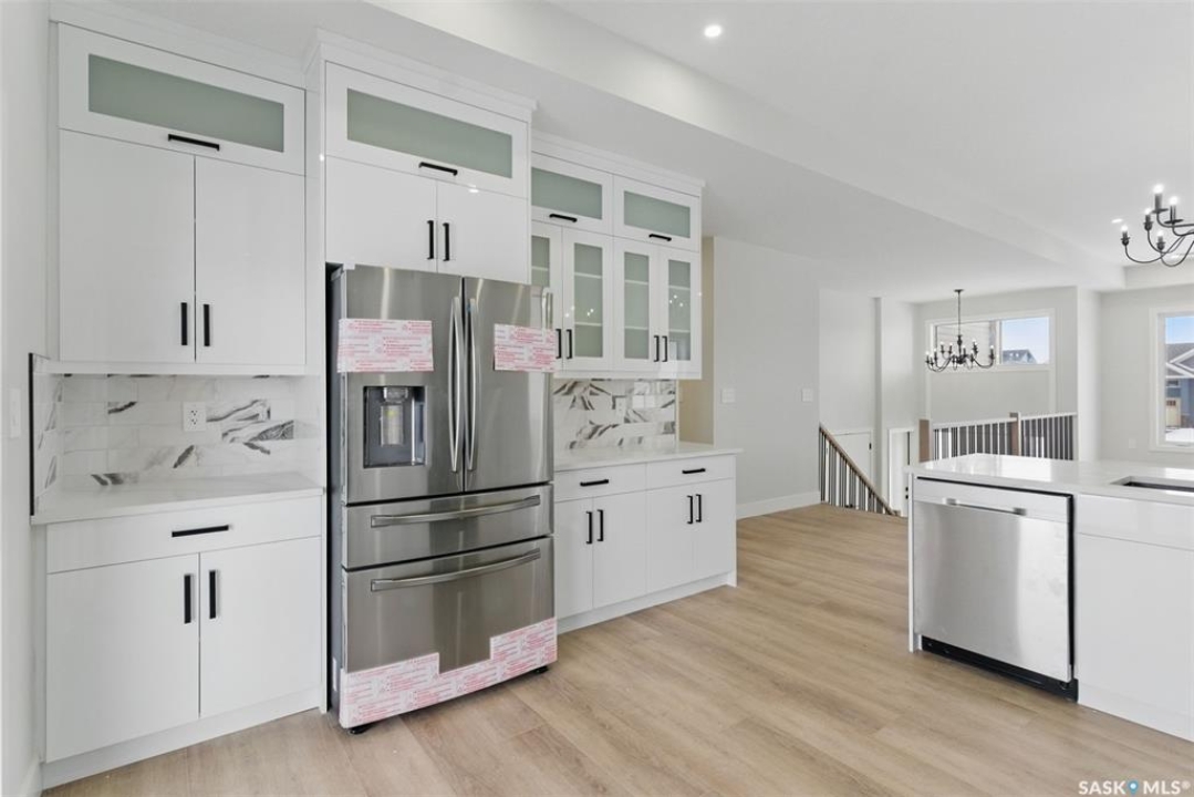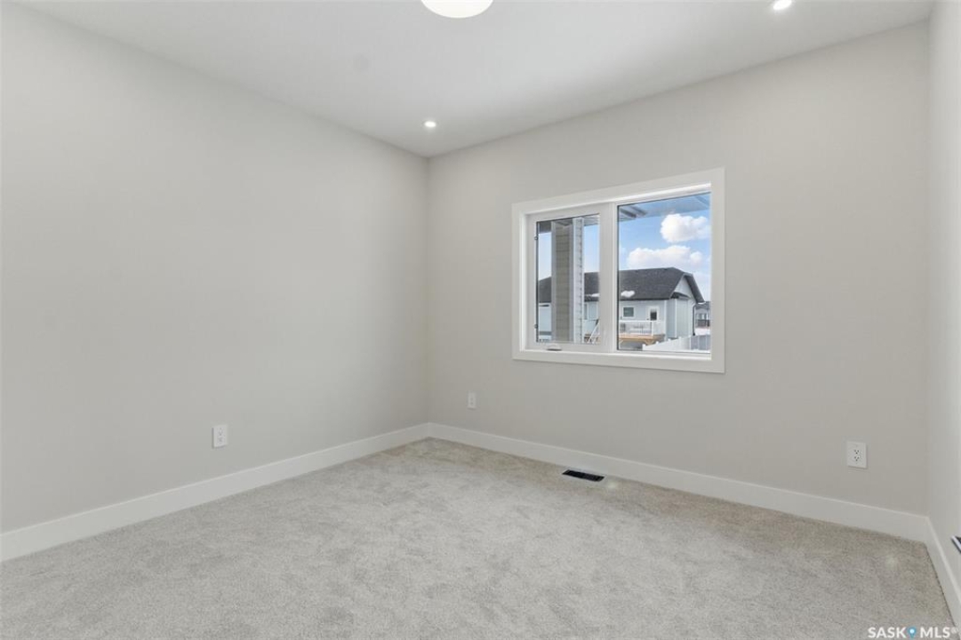 Great opportunity to live in a brand new home in Warman close to the Legends Golf Course, Sports Centre, grocery stores and all other amenities. 1,530 sqft bi-level. Spacious/open concept with extra high 9' ceilings up and 9' down giving it a light/bright/ modern feel. Main level is perfect for entertaining guests. Kitchen has pantry, tile backsplash, quartz countertops and ample cupboard storage. You'll love the luxurious en-suite bathroom off the primary bedroom with double sink, soaker tub & beautiful custom tile shower. Lots of high-end finishings throughout with upgraded vinyl flooring, unique fixtures, and tile work. Other notable features include a gorgeous electric fireplace in the living room & a covered deck (vinyl deck/ no stairs). Also has an insulated triple attached garage and a triple concrete driveway. South facing front with lovely street appeal. Established local builder, Blanket New Home Warranty, call today!