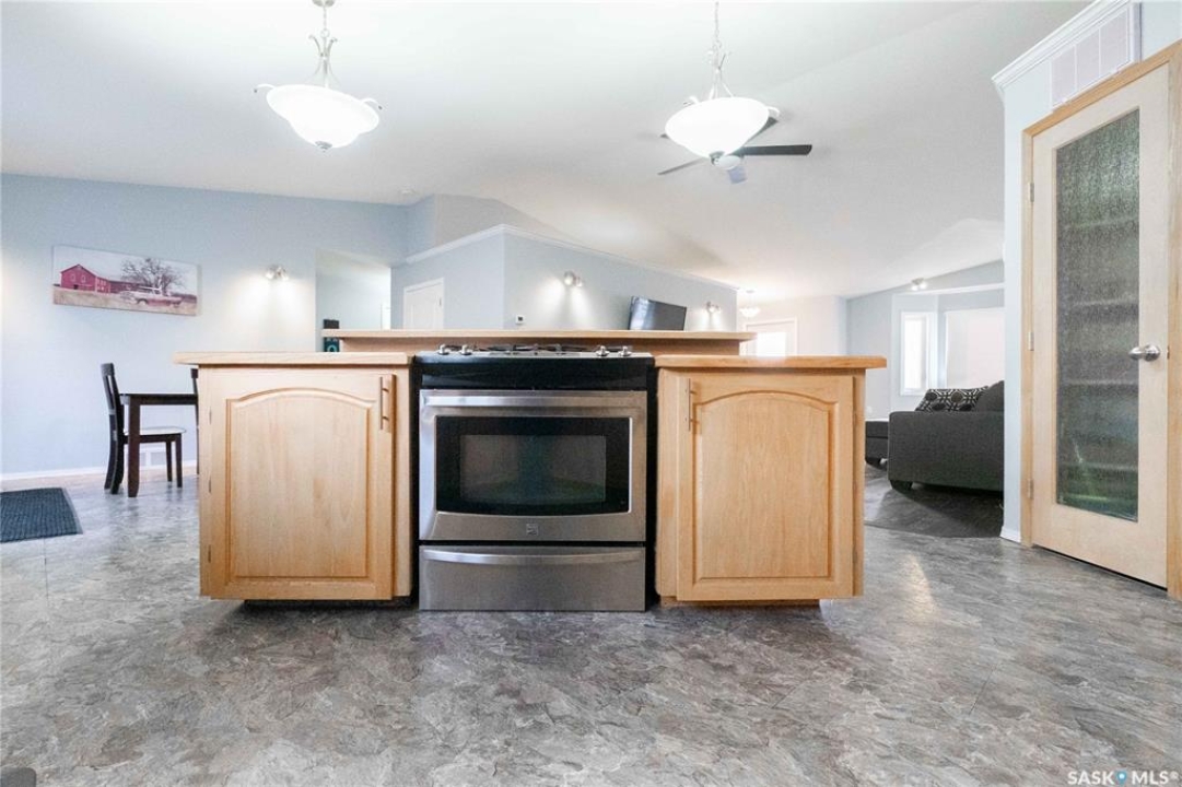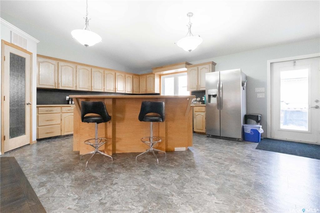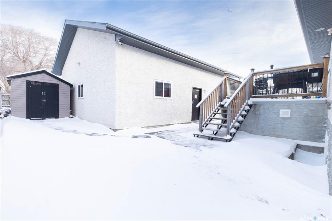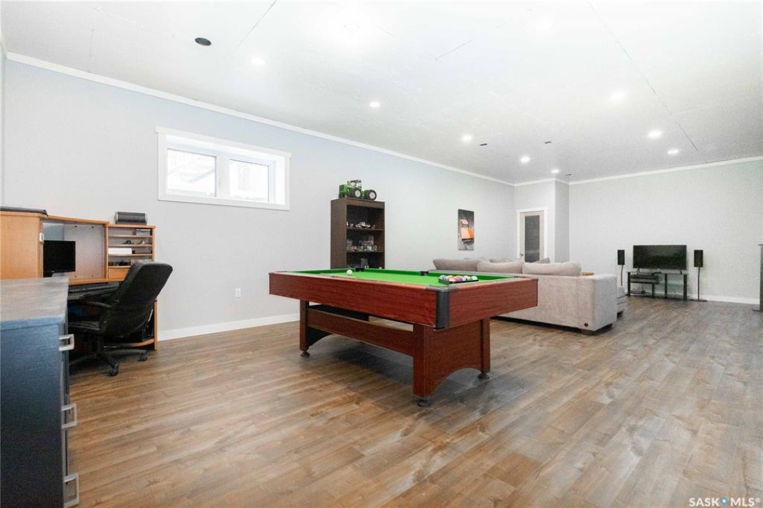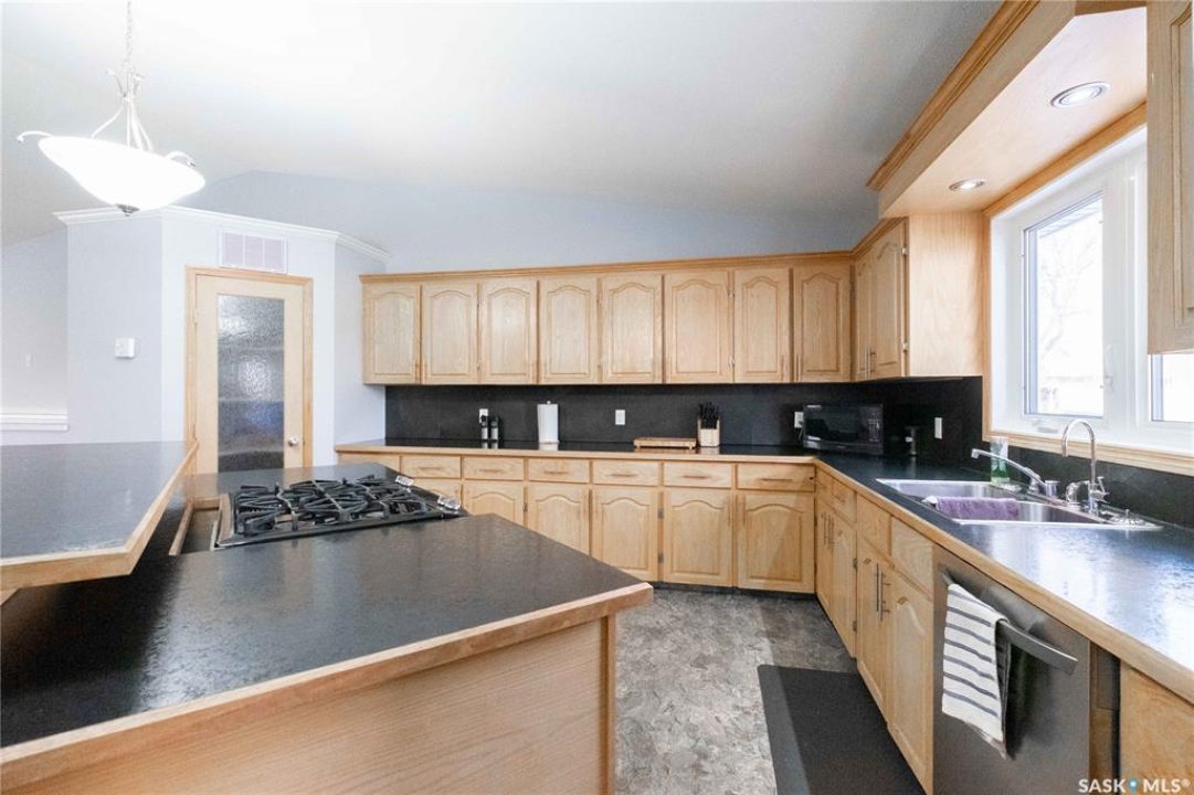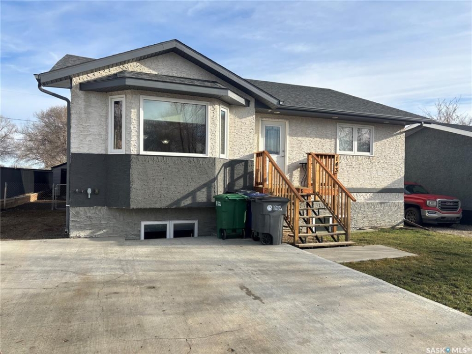 Are you looking for a spacious home with extra flex space and plenty of storage. Located in the family friendly community of Pilot Butte, just a block from elementary school and short commute to Regina. This 1378 sq ft bungalow offers an open floor plan, with vaulted ceilings, Spacious kitchen area with island and patio doors to the deck. Hardwood floors in living room, main floor laundry, jucuzzi tub main bath. Finished basement features 10' ceilings, Huge living room space, 2nd kitchen area, bedroom, 4 piece bath and there is a ceiling projector plug. Heated 30' x 32' garage is a mechanics dream with 15 foot ceilings at its peak, ethernet cable to garage, HOMI camera cable. Home has triple glazed windows, high efficient furnace, HRV air exchanger and central air conditioning, 8' x 12' insulated storage shed, Appliances included. Basement bar fridge and garage cupboards not included. 50' x 120' lot, PCDS and copy of surveyors certificate are available.