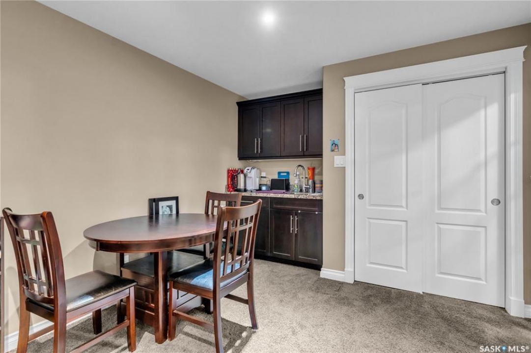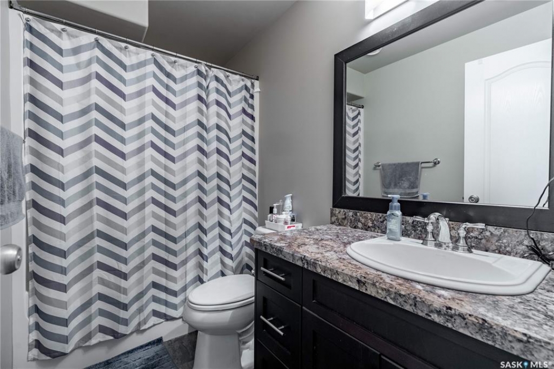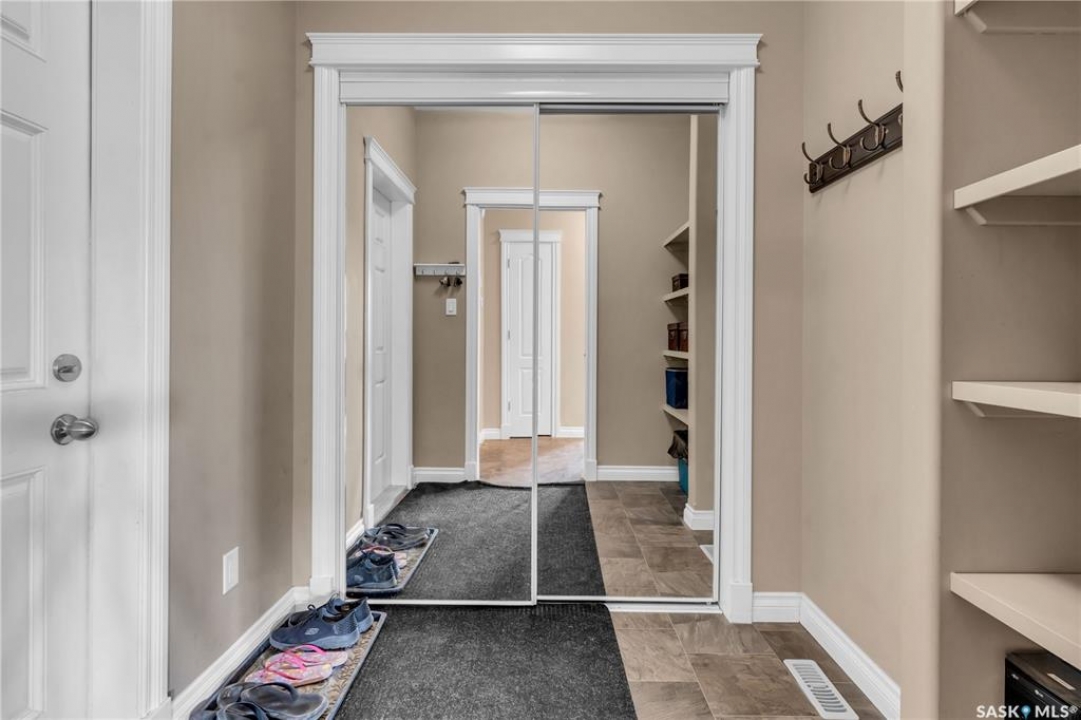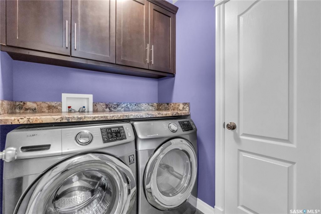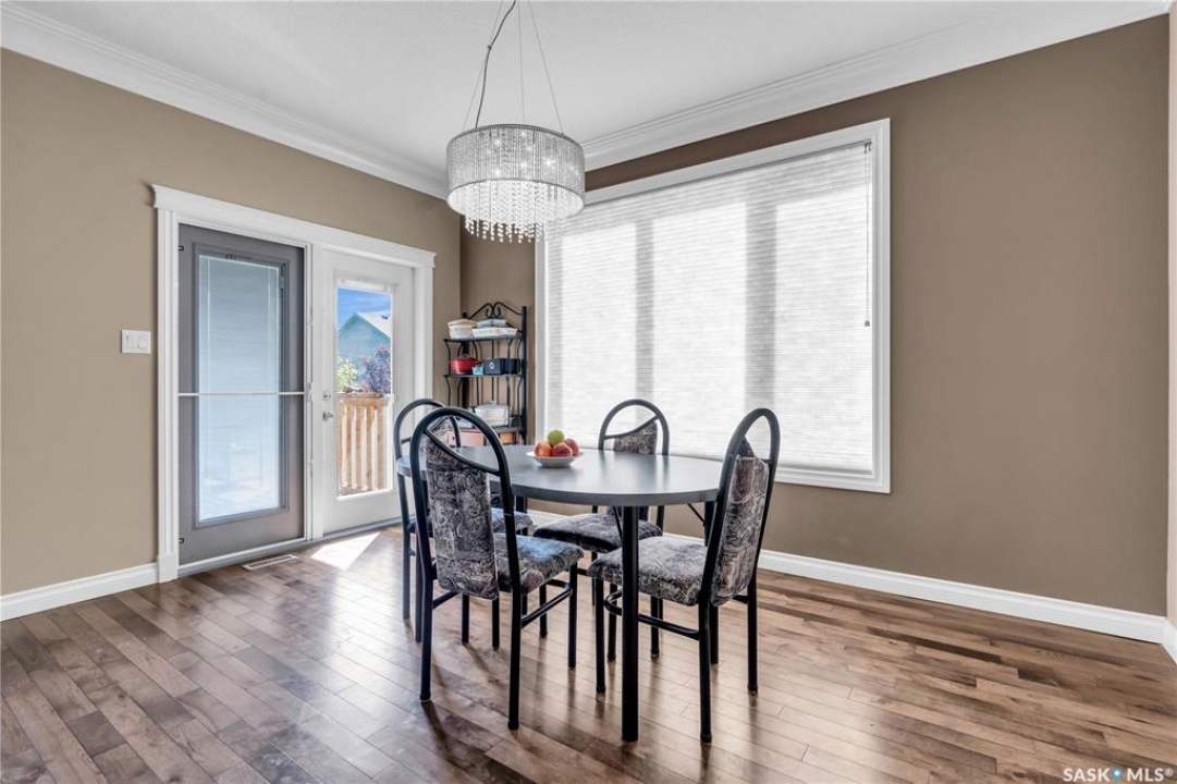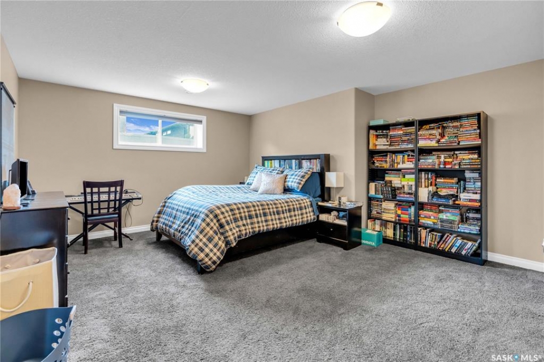 This beautiful, well cared for home is in The Creeks, a neighbourhood that has it all with great access to schools, recreation, and all that Regina's east end has to offer. This home was designed with quality and comfort in mind, with modern conveniences throughout. Soaring ceilings in the entryway lead to an office, a 2-piece bath, and a spacious mudroom with a convenient pocket door. The living room features a built-in home entertainment center with a gas fireplace, with an arched pass-through to the entryway. You'll love the modern eat-in kitchen that boasts hardwood flooring, warm wood cabinets and soft close drawers, granite countertops, stainless steel appliances, a large center sit-up island with undermount sink and dishwasher, a gas range, built-in oven, and a walk-in pantry. French doors in the dining area open to a covered deck with lots of space to enjoy your downtime in the summer. Upstairs, an open staircase overlooks the front entrance and leads to a bonus room with a built-in bookshelves and gas fireplace, a perfect place to escape with your book. The spacious primary bedroom offers a walk-in closet, and a 4-piece ensuite that features a tiled soaker tub, walk-in/sit-down shower, and double sinks. Two more good sized bedrooms, a 4-piece bath and laundry nook with storage complete the upper level. You'll enjoy the cozy recreation room downstairs with carpeted flooring and a walk-up wet bar. Two big bedrooms, a 4-piece bathroom, storage room, and a large utility room complete the lower level. This home has gorgeous curb appeal with stucco and stone, a double attached, heated and insulated garage, and exterior undermount lighting. Value added features of this home include all appliances, window coverings, central vac with attachments, central A/C, hi-eff furnace, sump pump, and an underground sprinkler system. This home is beautiful, in a fantastic location and just waiting for you to call it home, call your agent to schedule a showing today.