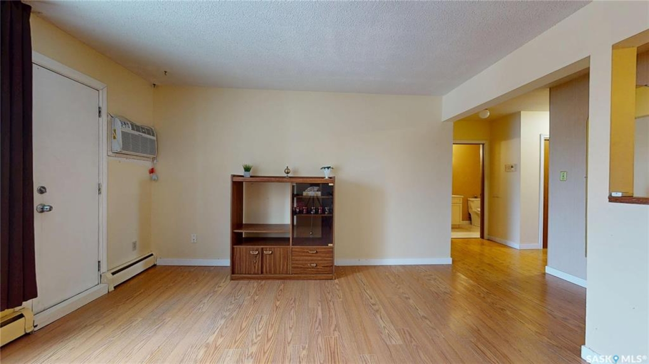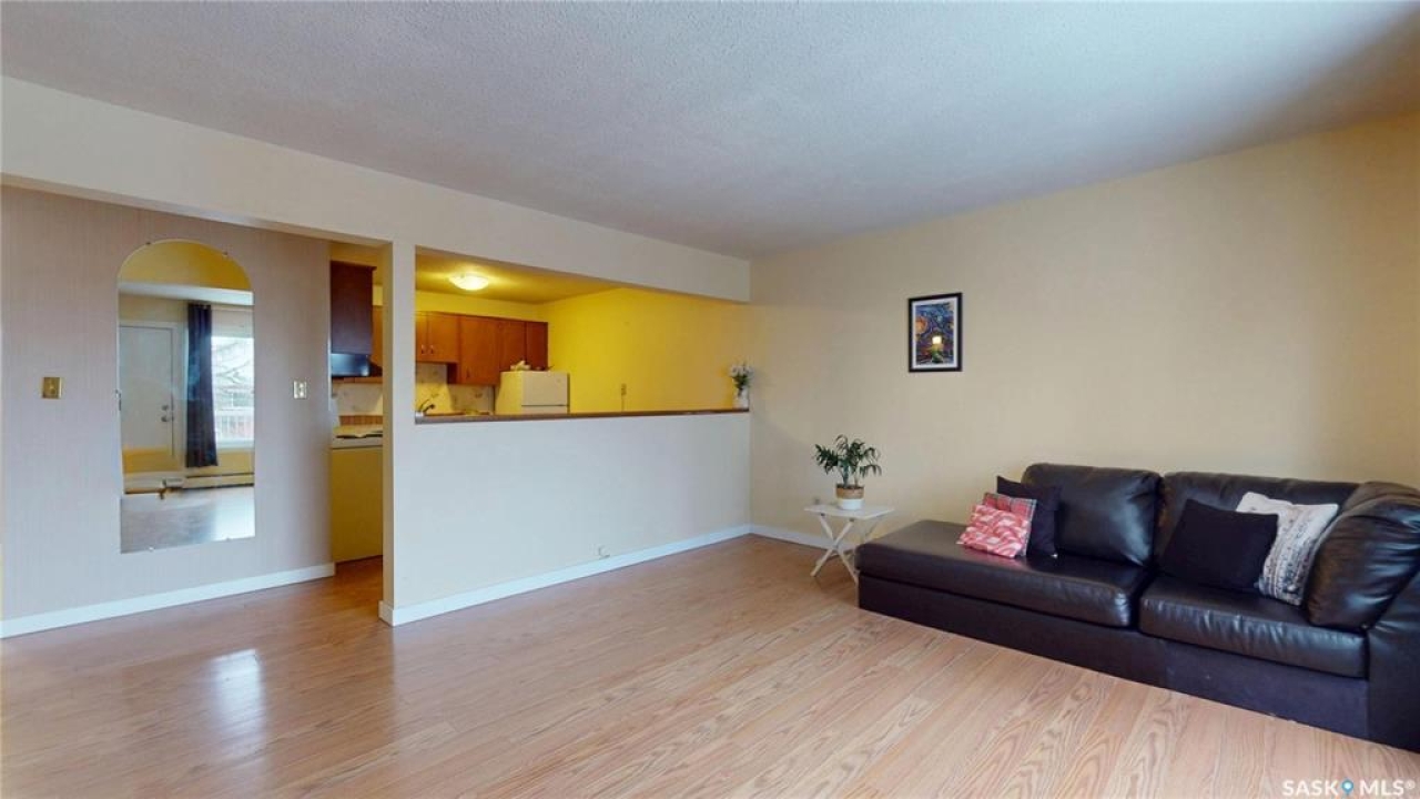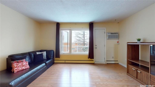 Welcome to this wonderful affordable condo in Regina's sought-after south end! Located in the quiet, well-maintained Albert Park complex, this top-floor unit offers a spacious 1-bedroom, 1-bathroom layout with its own private balcony. It includes an electrified parking stall as well. The roomy living room opens into the kitchen, making it ideal for entertaining or relaxing evenings at home. The kitchen has an eat in dining space and plenty of counter space for all your cooking needs. The oversized bedroom offers incredible flexibility – easily accommodating a home office, reading nook, or even an extra bed. The updated bathroom includes excellent built-in storage, and there's an additional in-suite storage room to keep everything neatly tucked away. This complex has been very well maintained, easily noticeable as you walk into the building. Other highlights include: newer windows, in building shared laundry, walking distance to the Southland Mall, groceries, and amenities as well as a bus stop directly in front of the building. Whether you're downsizing, purchasing your first home, or seeking a solid rental investment, this condo checks all the boxes. Pop in and take a look at this sweet gem of home - it is a wonderful find.
