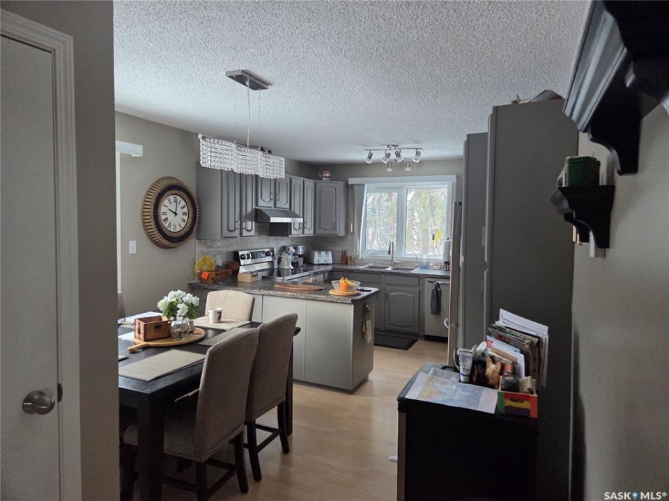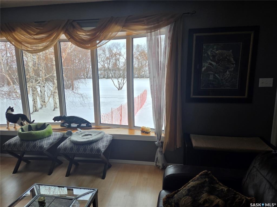 Welcome to the perfect acreage to fit anyone's needs. 5 bedrooms, 2 bathrooms, 3 living areas and plenty of storage on this 4 level split just a short 8kms from the heart of Tisdale. 3.72 acres enclosed with in a complete shelterbelt with a large storage shed, 20x30x12 tarp shed, garden area and tree house for the little ones. Large deck with covered gazebo off the back entrance, year round fish pond with fish along the patio entrance to garage, enclosed CATIO for the cats with separate house entrance and a 2 car 30x24 attached garage with built in cabinets and electric plug in heater. All appliance except bar fridge and basement freezer included (stove and hood fan new) as will the couches and electric fireplace in the basement, bed in first upper bedroom, lawn sweep and garden tiller. Sewer is by septic tank with pump out to south east, water is rural pipeline, 200 amp panel box. Sump pump pumps out far behind garage. Many many upgrades in the past years make this home ready to move in and live the life.