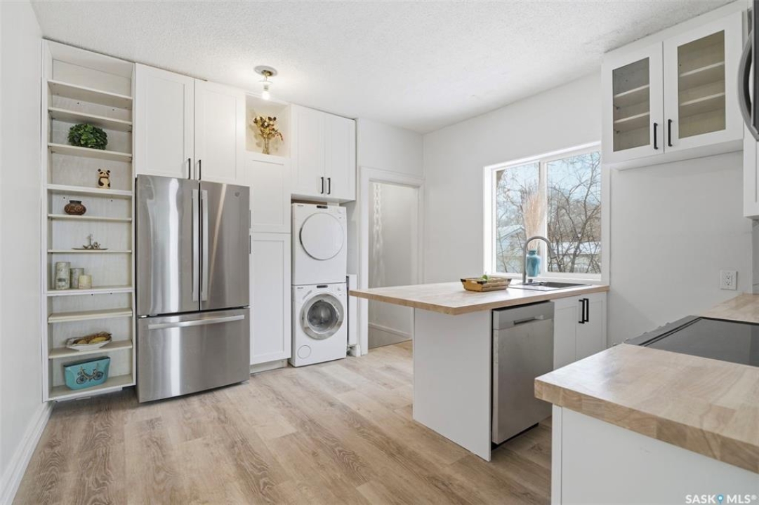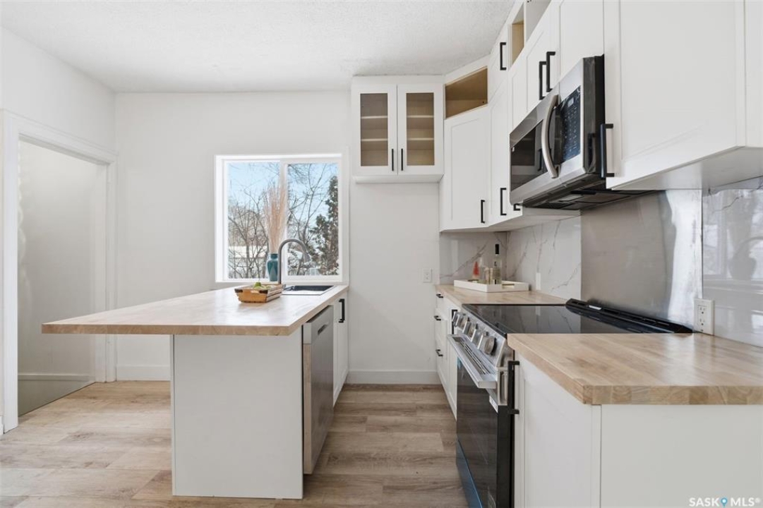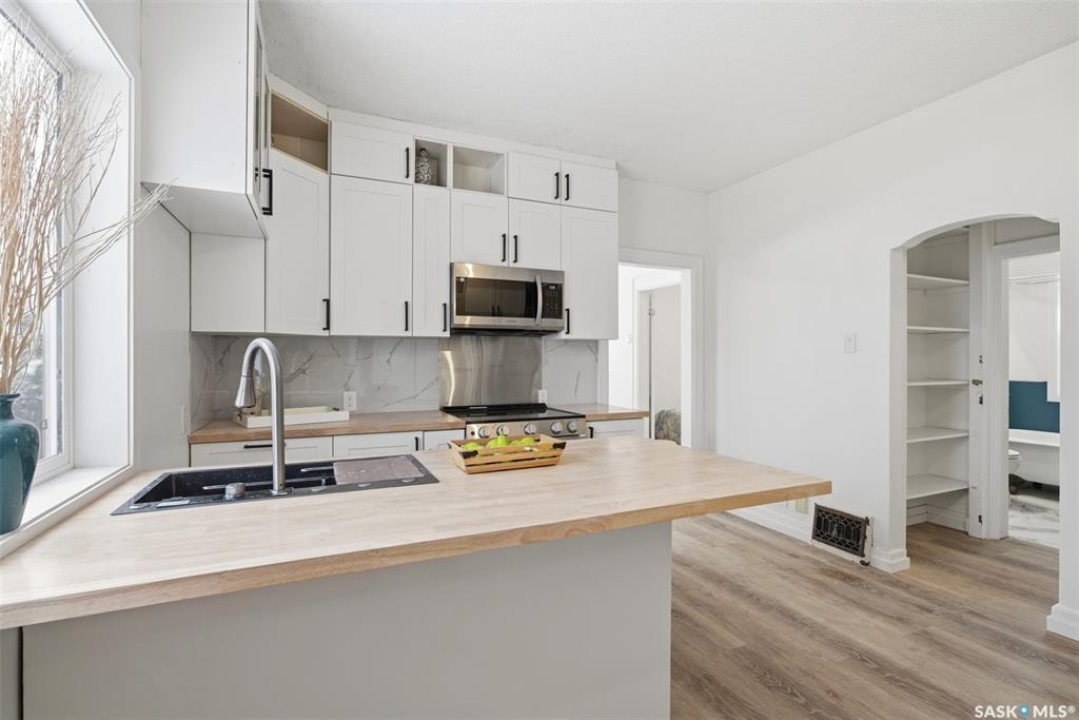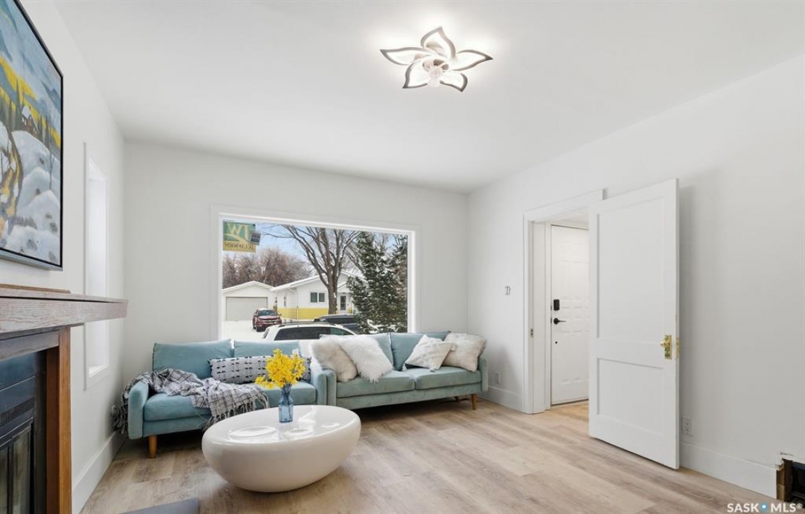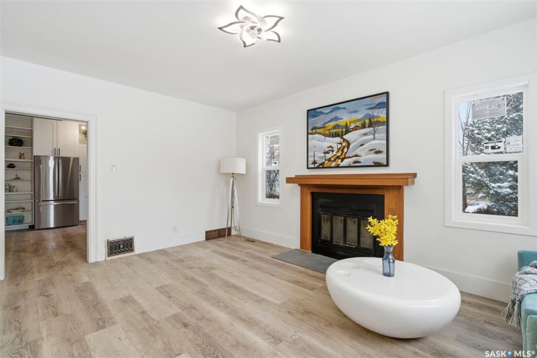 Fully renovated bungalow with a large 1-bedroom self-contained basement suite in the heart of Mayfair, ideally situated close to schools, parks, and amenities. This charming home features 3 bedrooms, 2 bathrooms, and a double-car garage, with beautiful curb appeal and spacious main floor boasting high ceilings, half open-concept layout, bright living room with wood-burning fireplace and large windows, and modern kitchen and dining area with brand-new cabinets, island, countertops, tile backsplash, sink, and stainless steel appliances. New vinyl plank flooring runs throughout the main level, which includes two generously sized bedrooms and a brand-new 4-piece bathroom. The fully developed basement has a separate entrance and offers spacious living area, kitchen and dining space with new cabinets, countertops, and tile backsplash, one spacious bedroom with double closets, a 3-piece bathroom, and a utility room with a second set of laundry. The backyard is generous and landscaped with brick patio, firepit, and mature trees. Extensive upgrades throughout the property include new PVC windows, shingles, furnace and water heater, insulation, flooring, ceiling, paint, cupboards, cabinets, light fixtures, both kitchens and bathrooms, appliances, and upgraded electrical. Additional features include an oversized two-car garage with extra parking and back-alley access on a large 50-foot-wide R2 double lot. This unique turnkey property is ideal for first-time homebuyers or investors, with potential rental income of approximately $1,400–$1,600/month for the main floor and $800–$1000/month for the basement suite, and it truly shows like new.