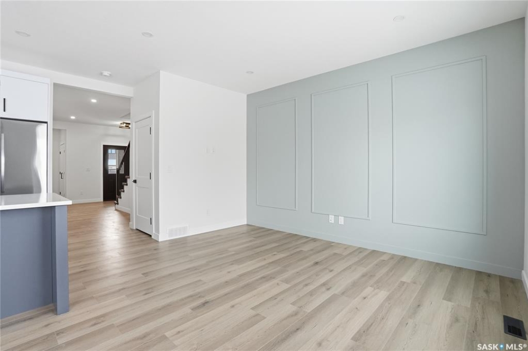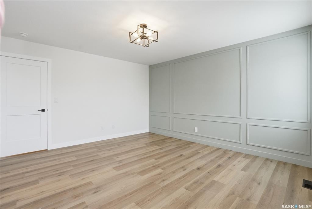 Modern 1,966 sq. ft. two-storey home featuring a rare main-floor bedroom and 3-piece bathroom, ideal for guests or multi-generational living. This 4-bedroom design offers 9' ceilings on the main level, laminate flooring throughout the main and second floors, and ceramic tile in bathrooms with tiled shower surrounds. The kitchen showcases a large quartz island, subway tile backsplash, soft-close cabinetry, walk-in pantry, and exterior-vented range hood. Upstairs includes additional bedrooms and a well-appointed ensuite with double sinks, soaker tub, and custom tiled shower with glass enclosure. Additional highlights include pot lighting inside and out, upgraded black fixtures, comfort-height toilets, on-demand hot water, HRV, and high-efficiency furnace. The oversized insulated garage is fully boarded and features an insulated 16x8 door and man door. Exterior is complete with triple-pane windows, covered front entry, concrete driveway, front landscaping, and a rear deck with aluminum railing.